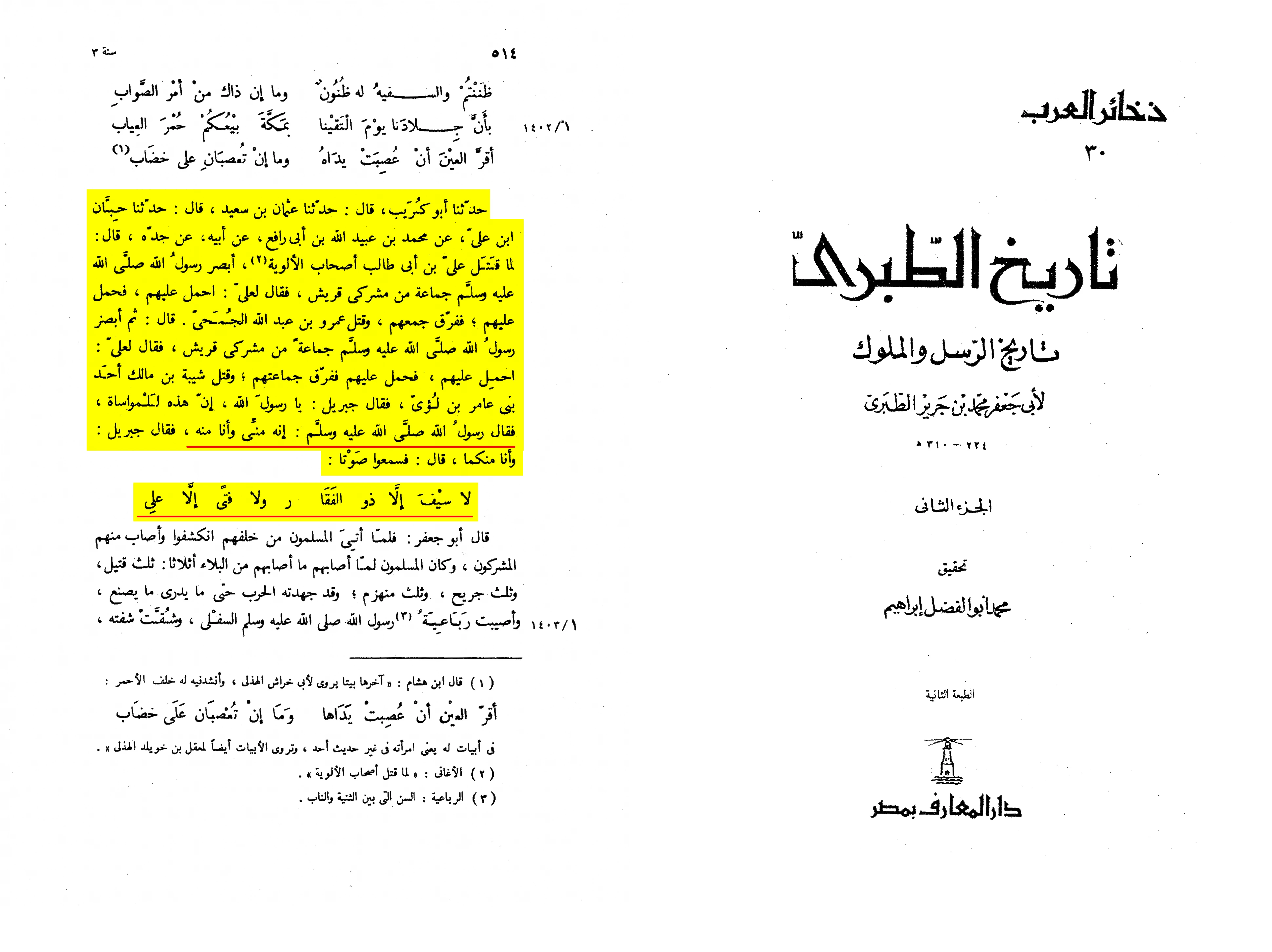 This was also recorded in Tarikh al-Tabari, vol. 7, pg. 116 with al-Zubayr’s own narration where he mentions himself.