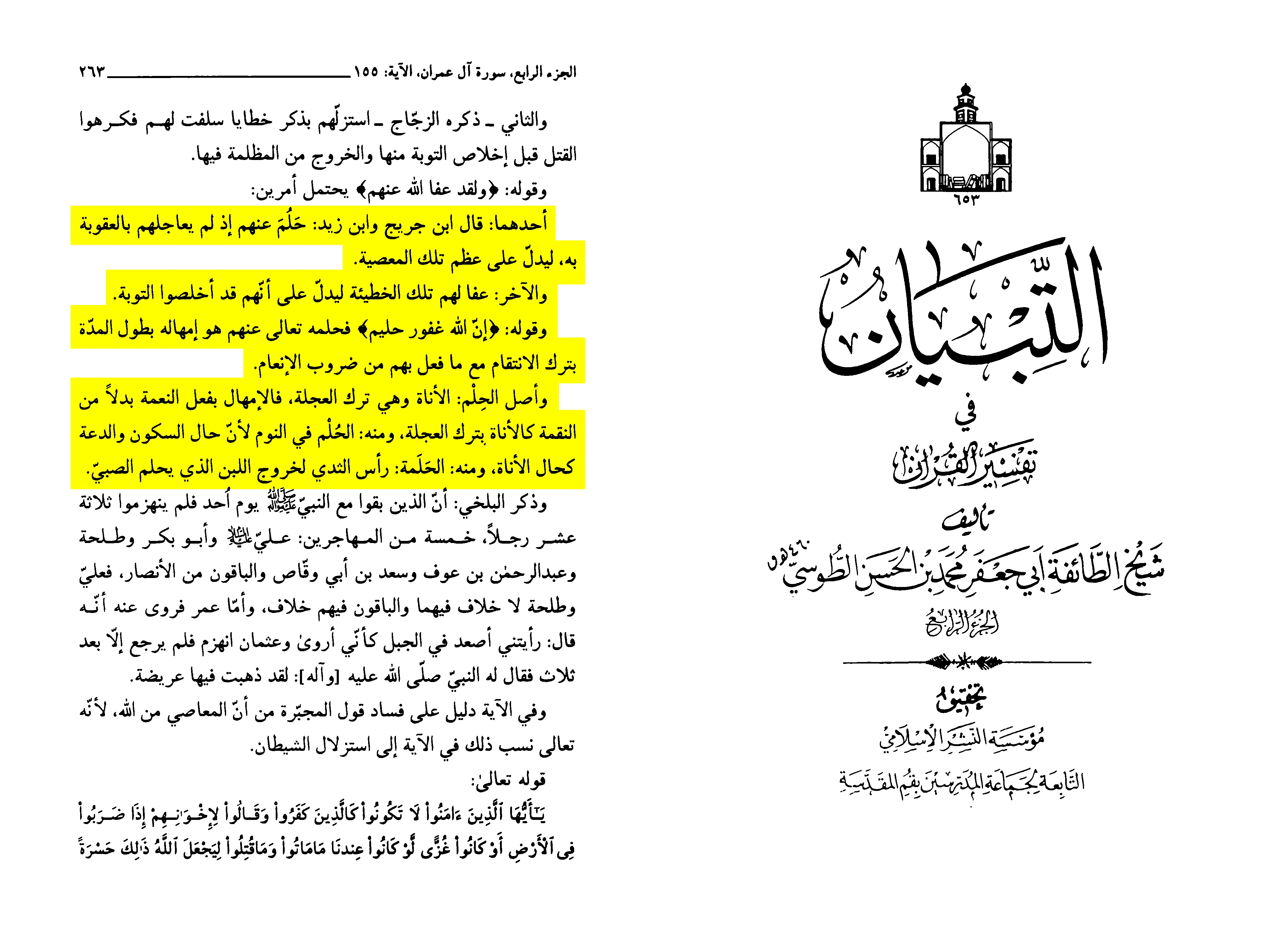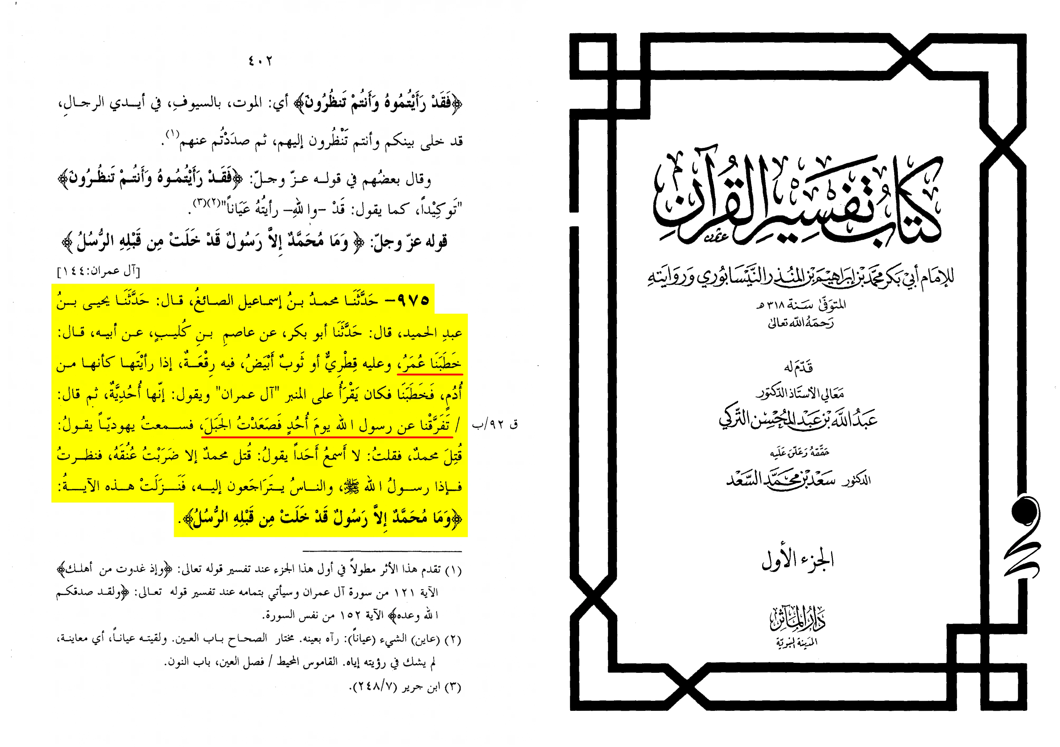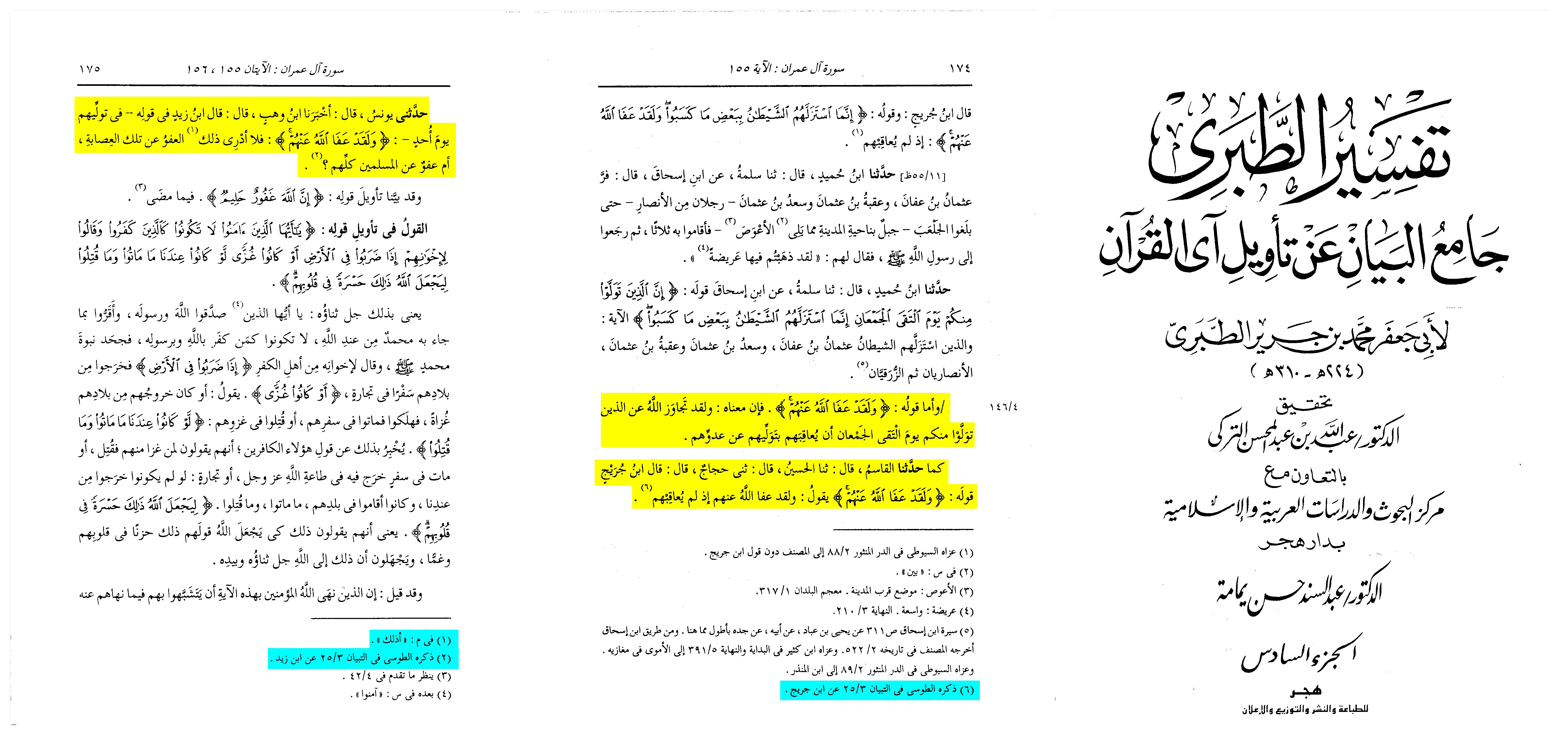 Yunus also reported: “Ibn Wahb told us that Ibn Zayd said about the verse regarding their abandonment on the Day of Uhud: ‘And indeed, Allah has pardoned them’—I do not know if this pardon refers to that particular group or to all the Muslims.”