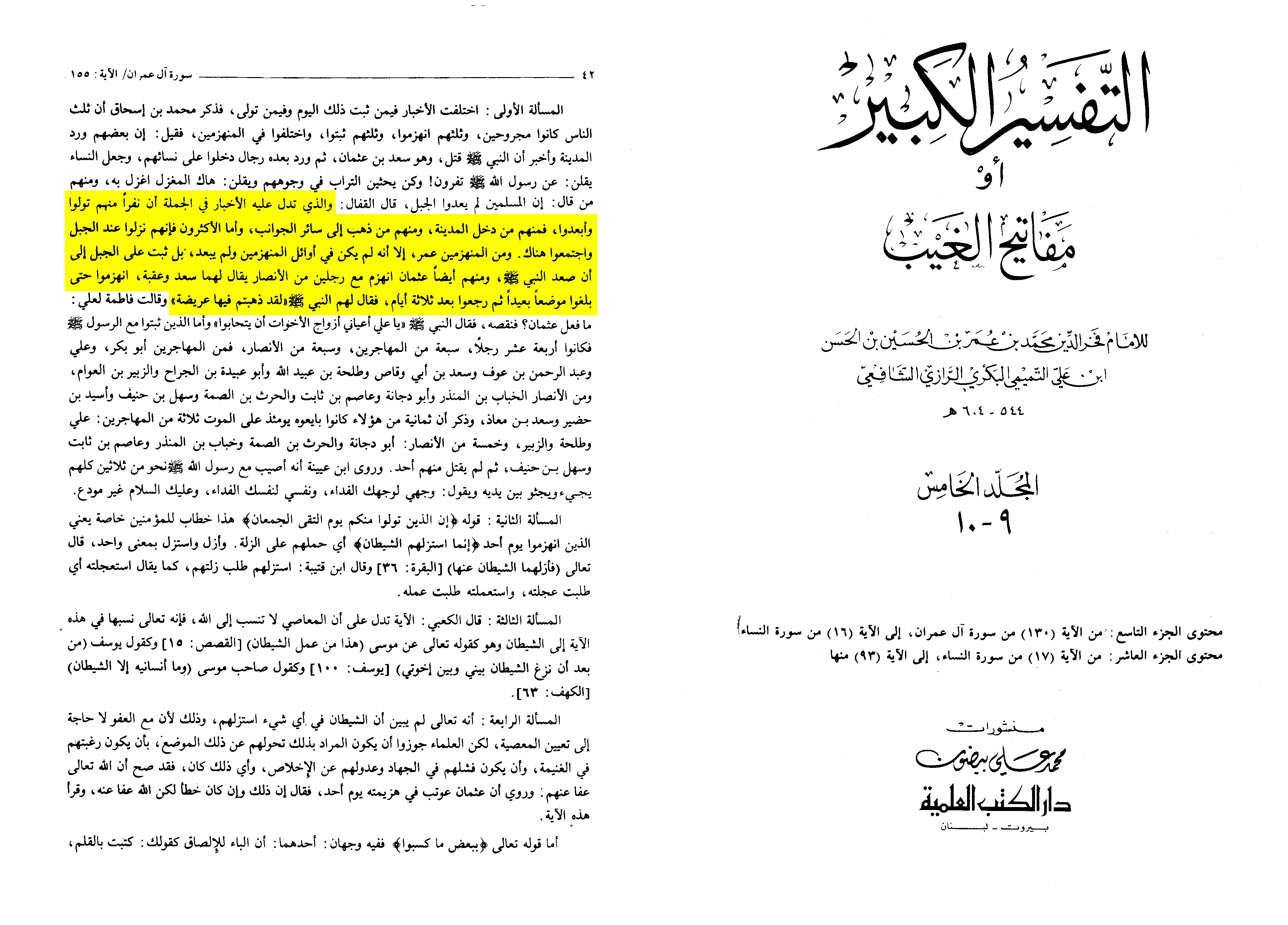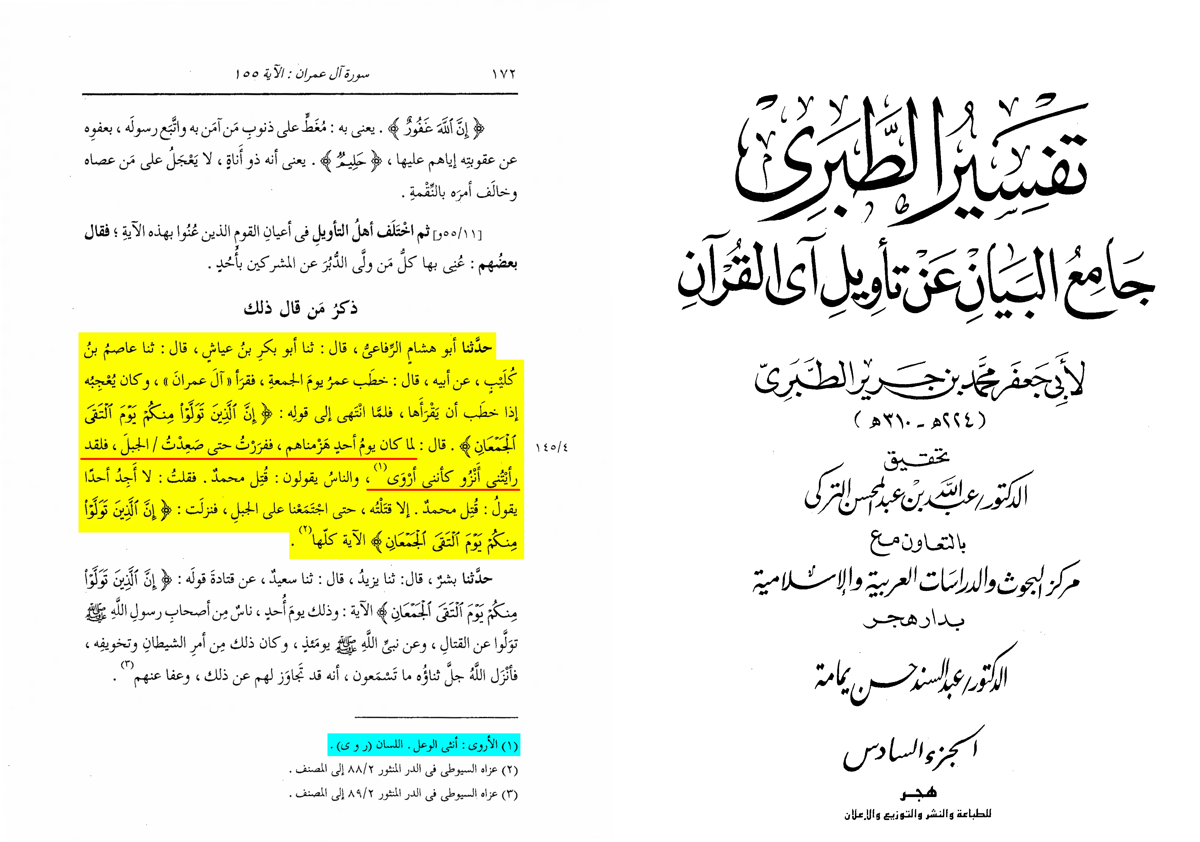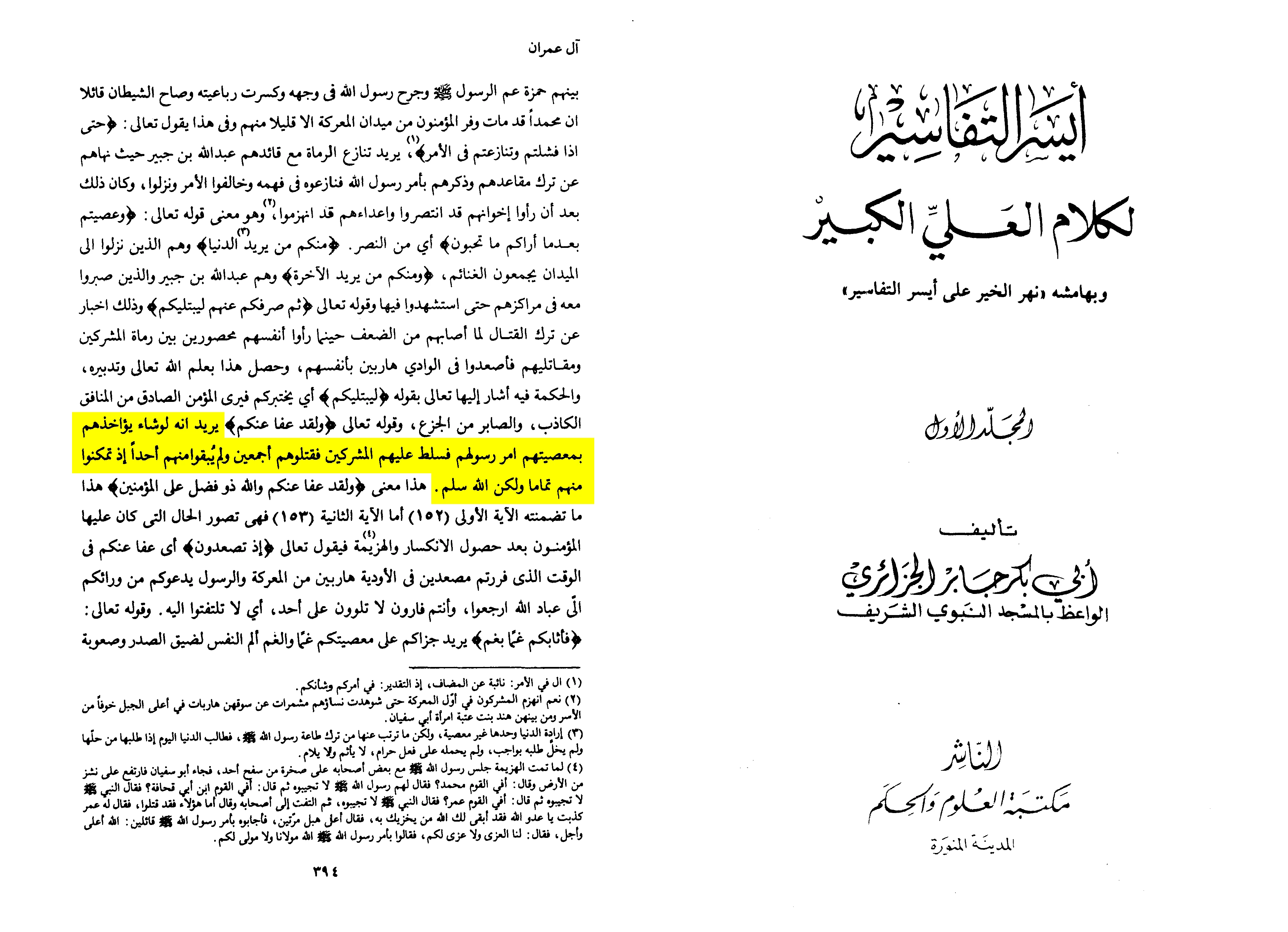 Yunus also reported: “Ibn Wahb told us that Ibn Zayd said about the verse regarding their abandonment on the Day of Uhud: ‘And indeed, Allah has pardoned them’—I do not know if this pardon refers to that particular group or to all the Muslims.”