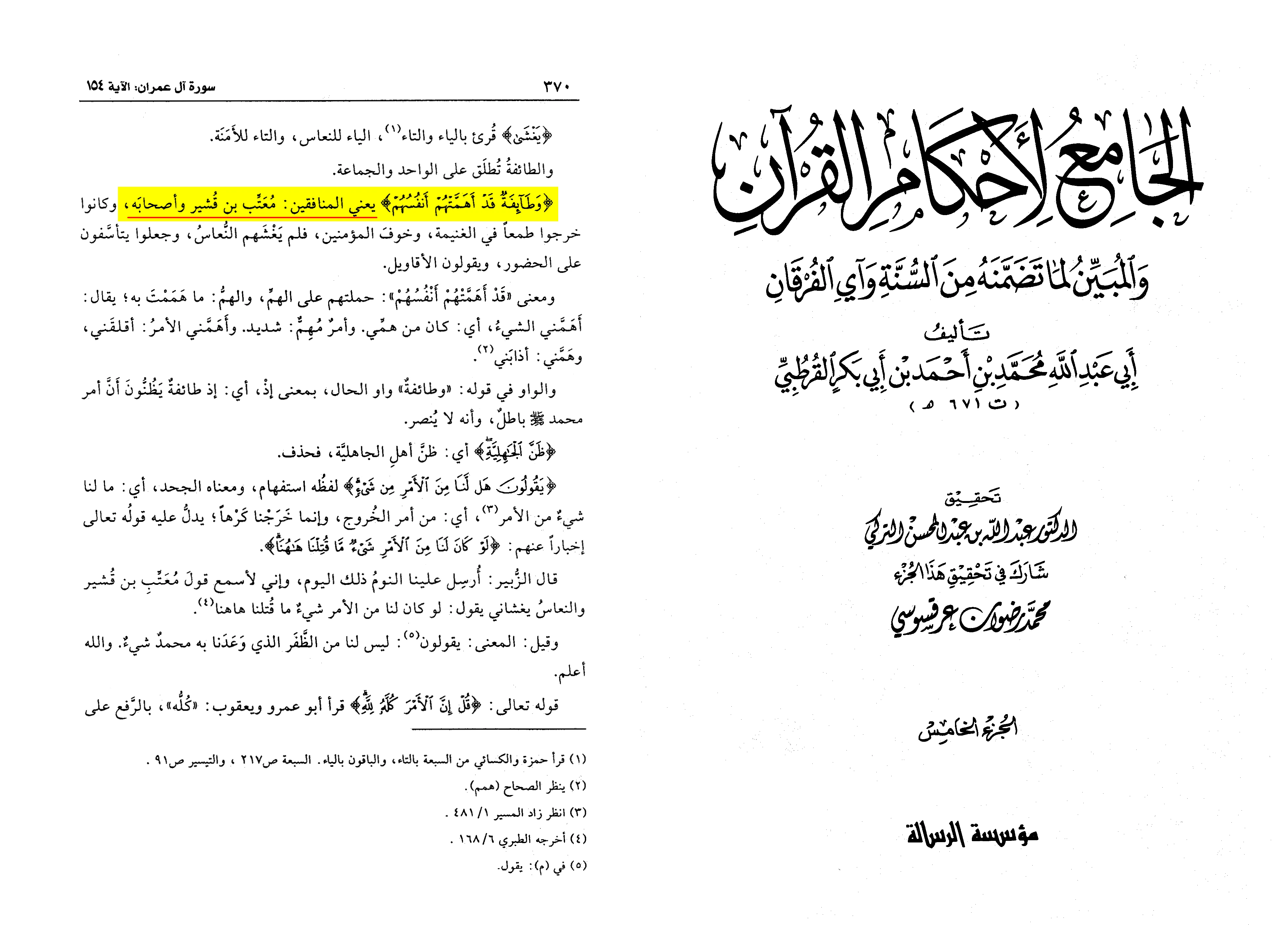 Therefore, the Qur’an serves as proof for the presence of hypocrites at the battle of Uhud, and it was likewise affirmed by scholars such as al-Qurtubi in his Tafsir al-Qurtubi, vol. 5, pg. 370: