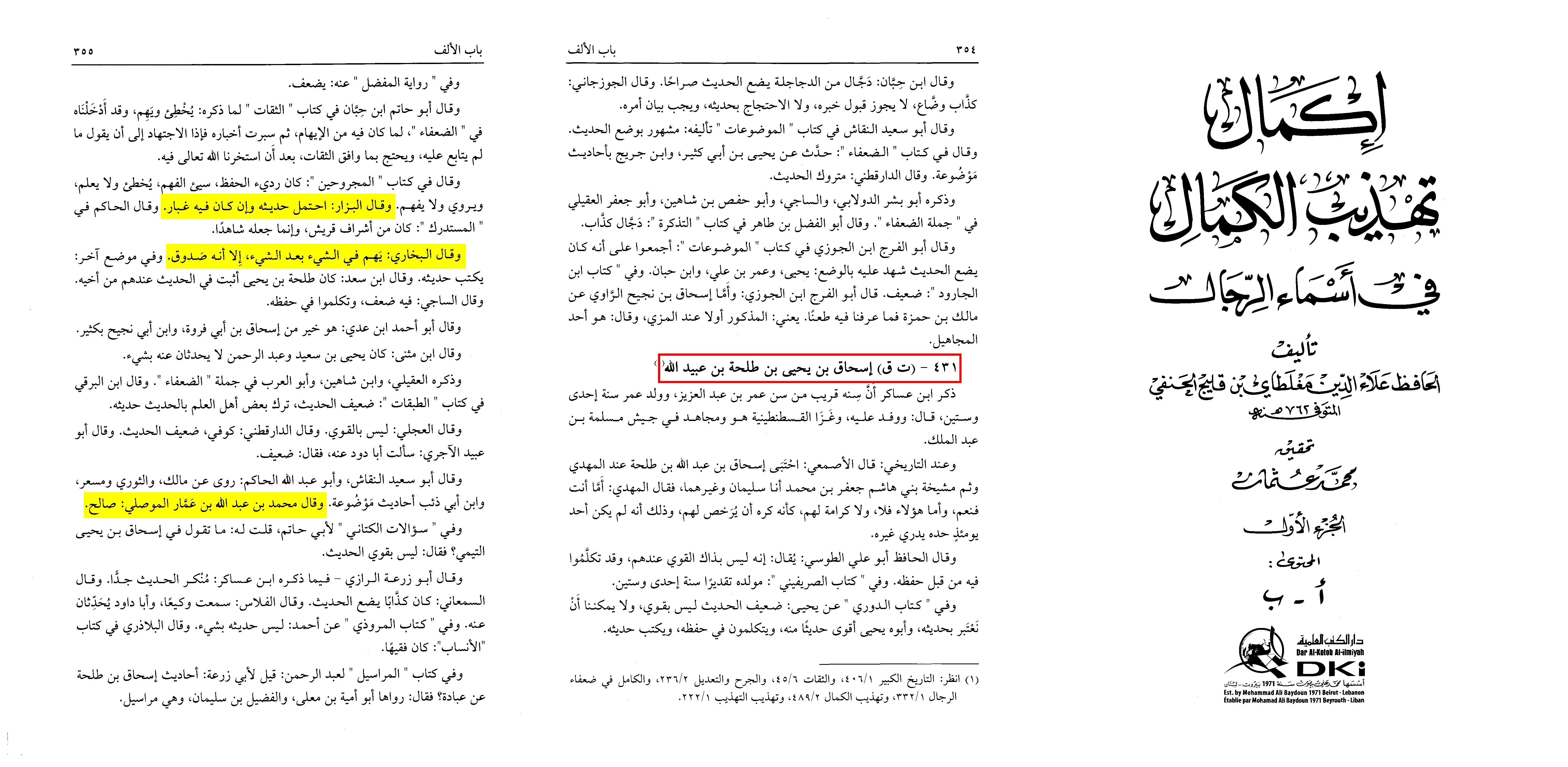 ‘Ala al-Din Mughlatay says in his Ikmal al-Tahdhib, Vol. 1, pg. 354 - 355: