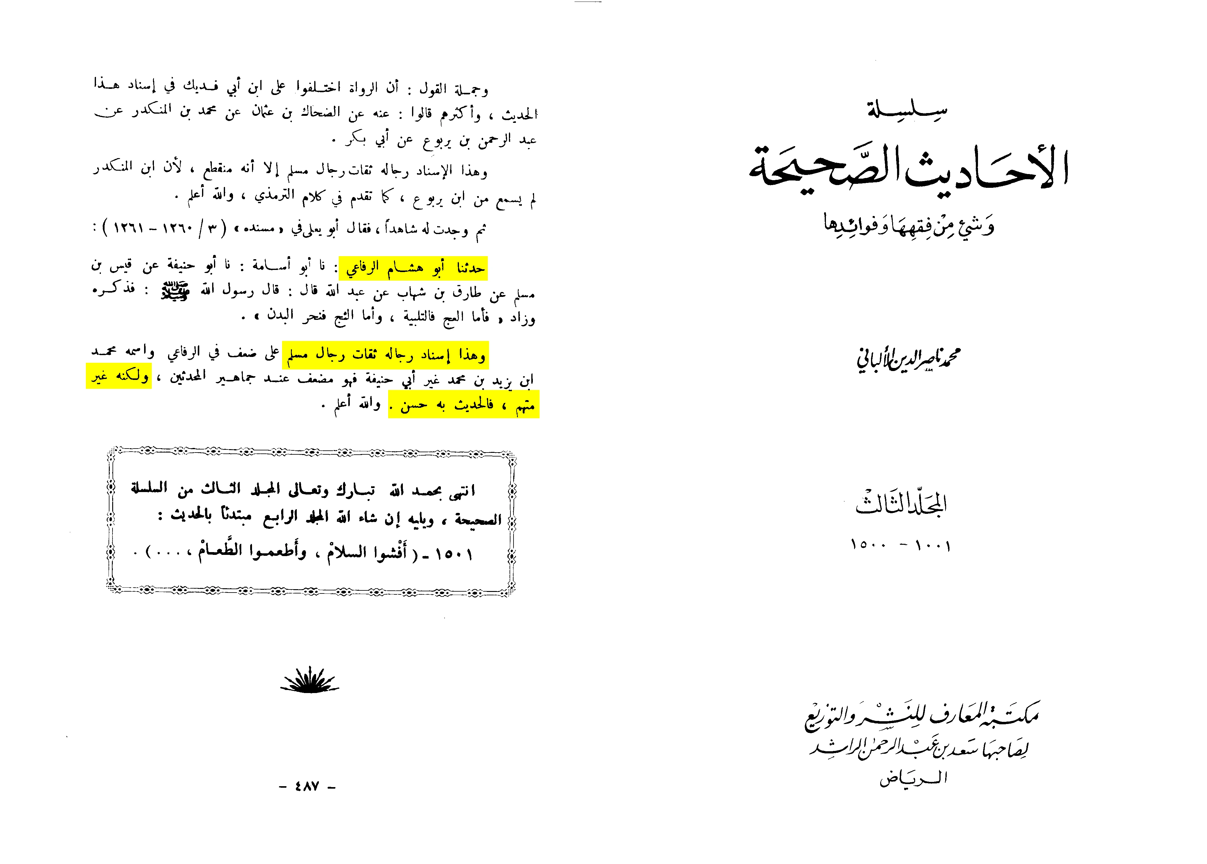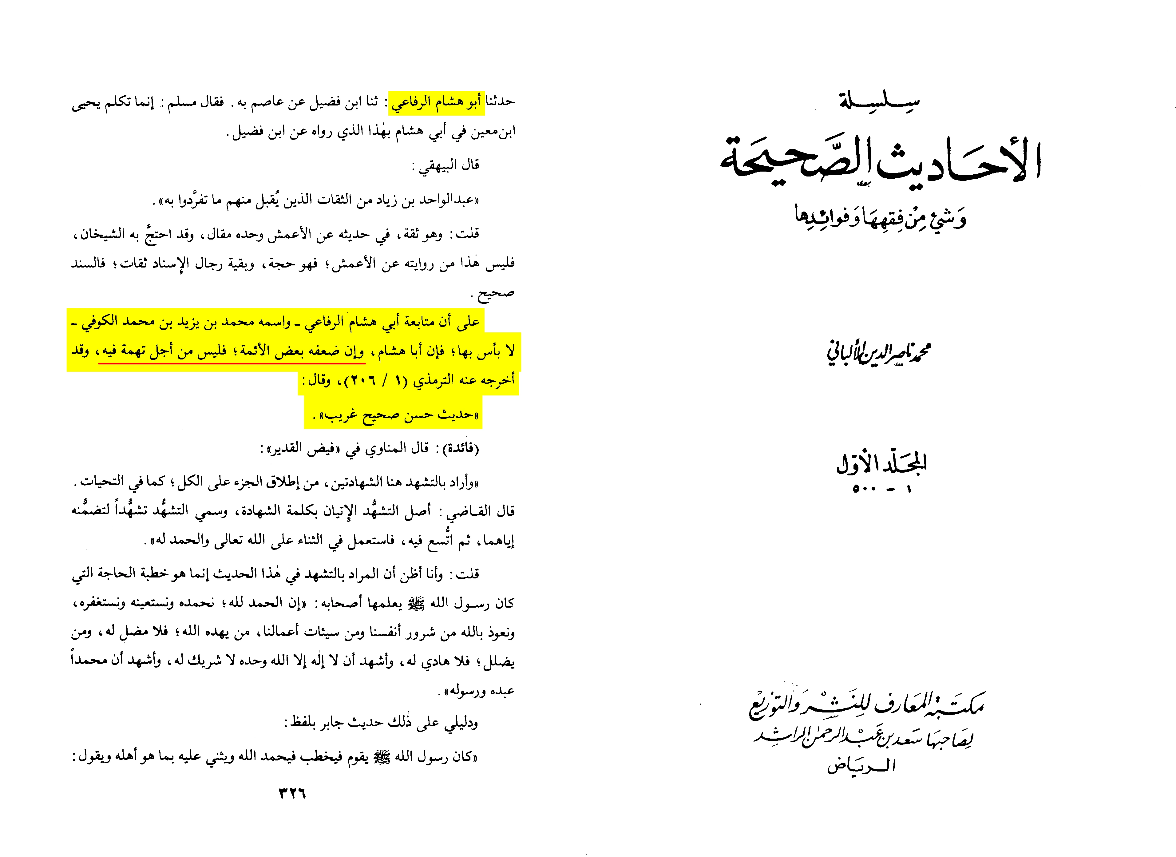 Following Abu Hisham al-Rifa’i—whose name is Muhammad b. Yazid b. Muhammad al-Kufi—is acceptable. Although some scholars have criticized Abu Hisham, it was not due to any accusation against him. Al-Tirmidhi narrated from him and said: “A hasan sahih gharib hadith.”