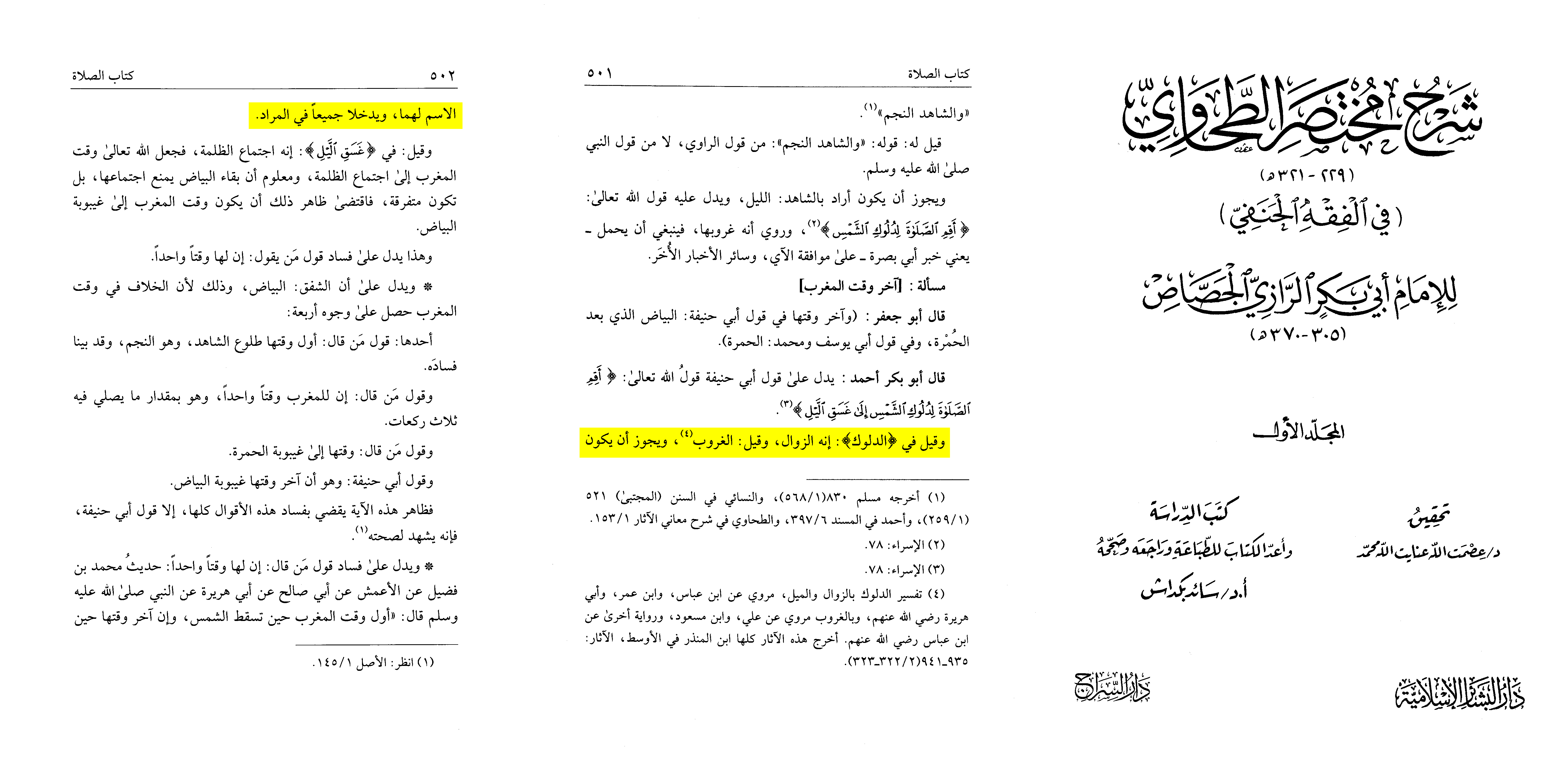 Al-Jassas in Sharḥ Mukhtaṣar al-Ṭaḥāwī, Vol. 1, Pp. 501 – 502