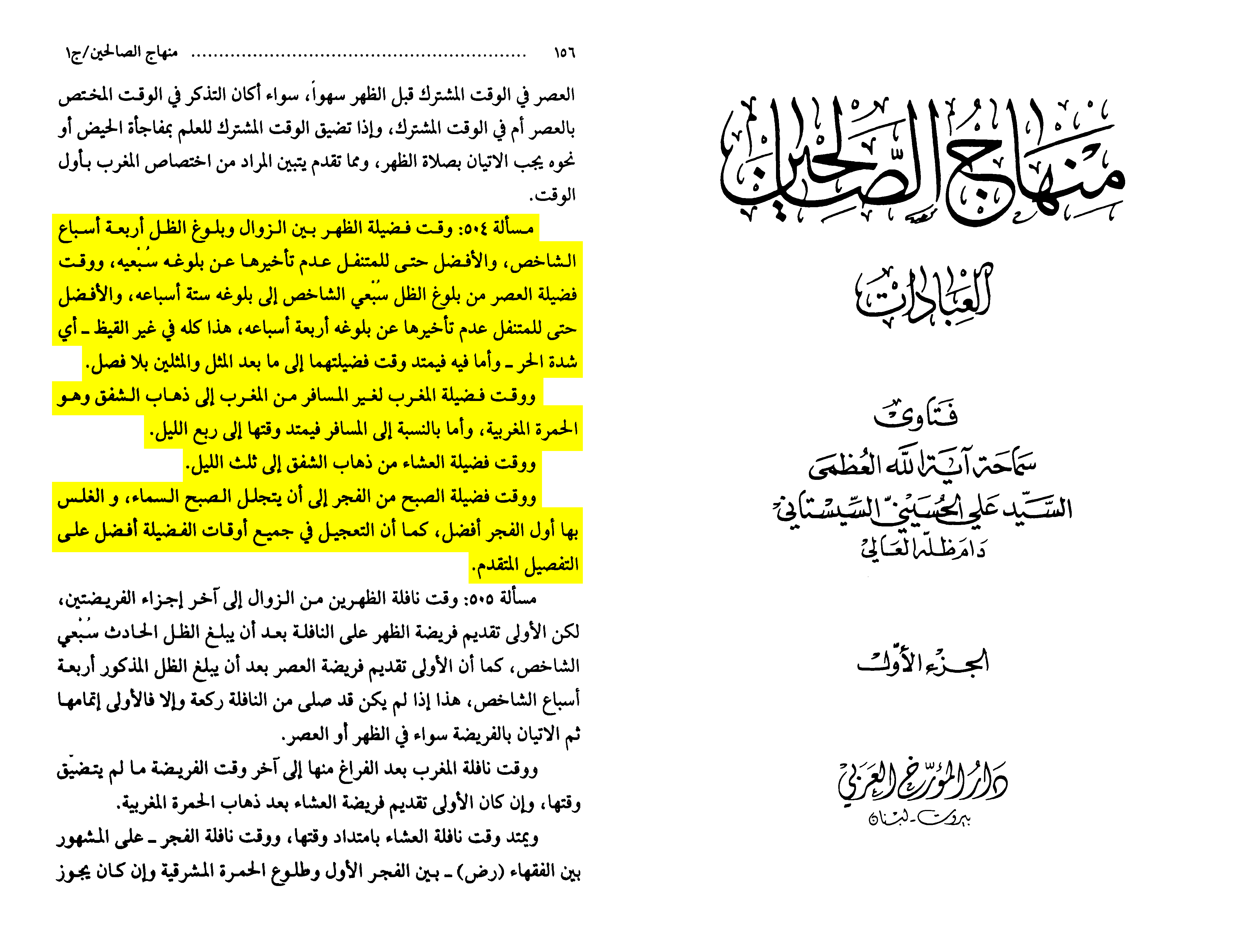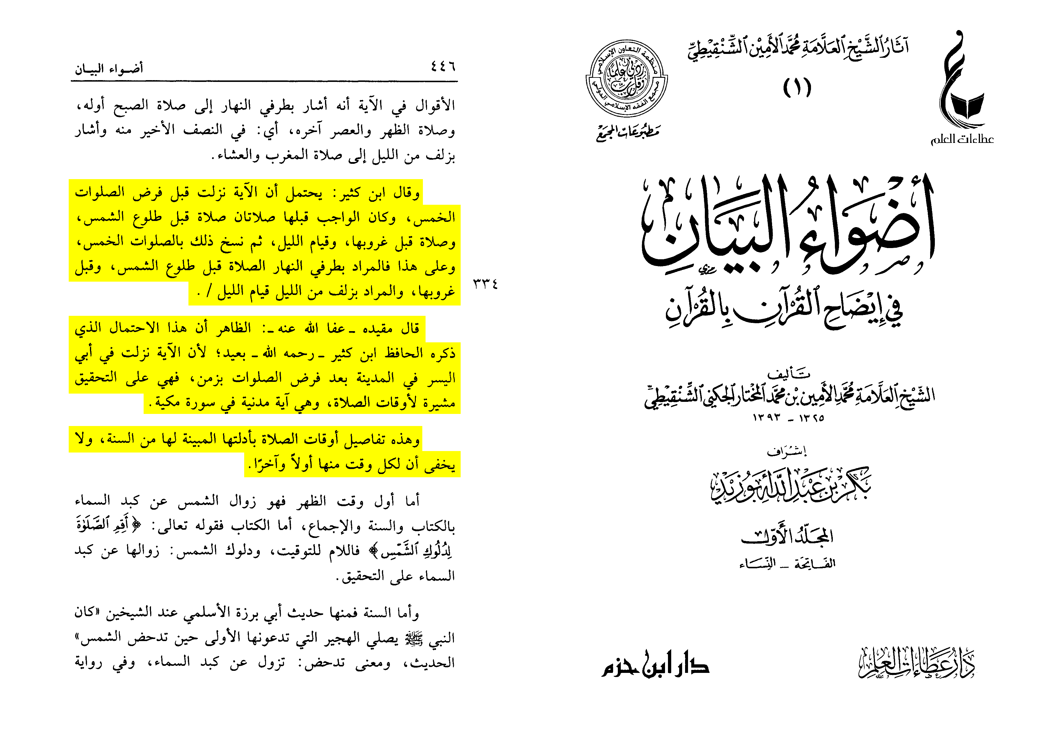 So if what we have said, supported by what we have cited as evidence, is correct, then it becomes clear that the meaning of His statement is that the prayers of ẓuhr and ʿaṣr, within their limits, are among what Allah has made obligatory upon you in that period, because they are the two prayers that Allah obligated upon His Prophet within the time from the sun’s decline until the darkness of the night.