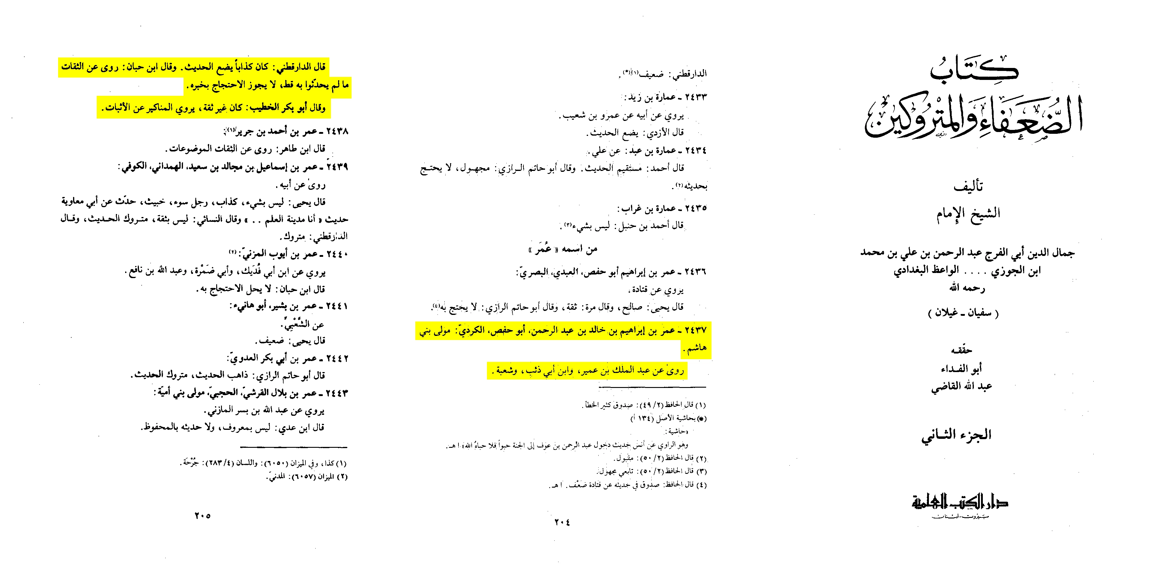 `Umar ibn Ibrāhīm ibn Khālid, Abū Ḥafṣ al-Kurdī.... Al-Dāraqutnī said: