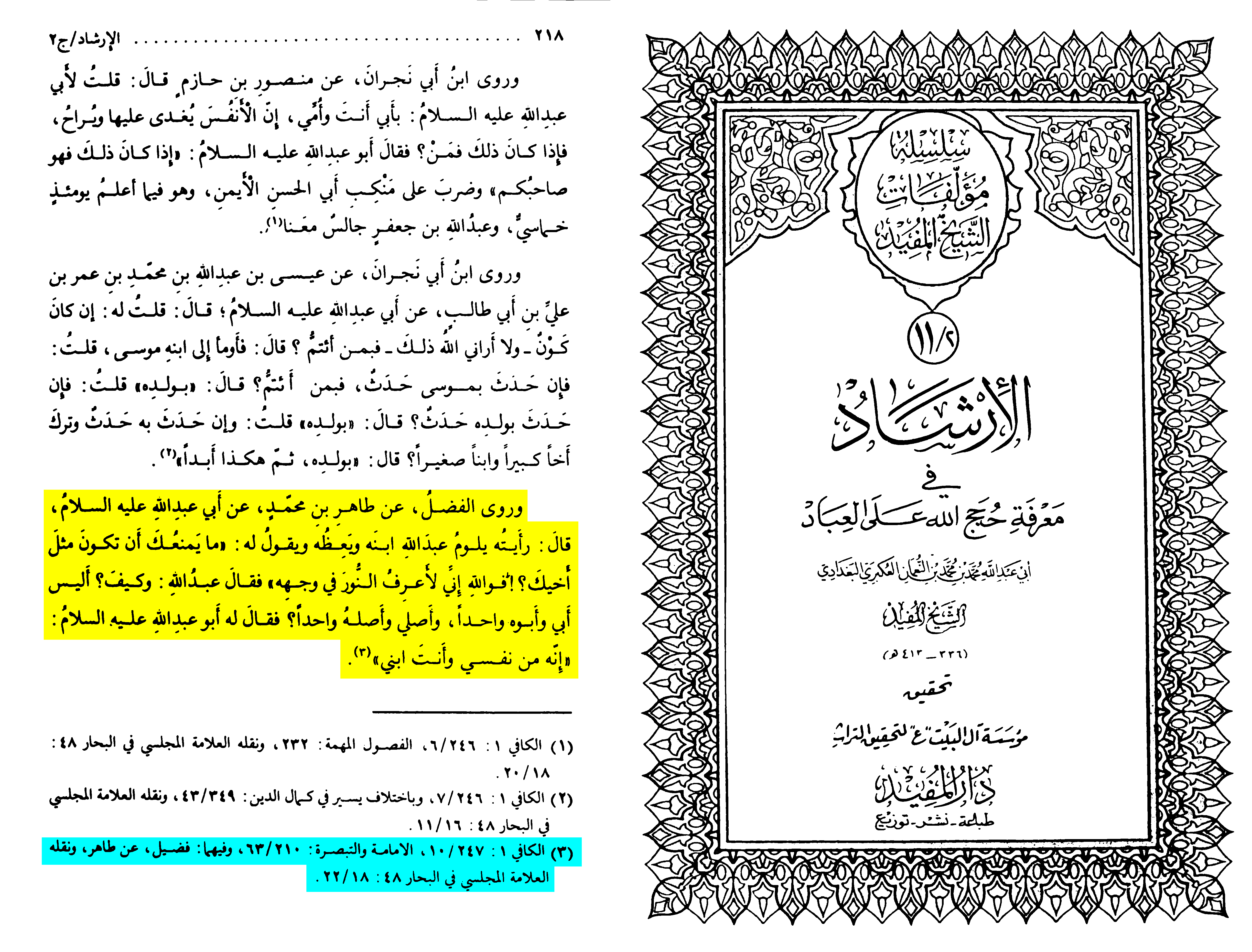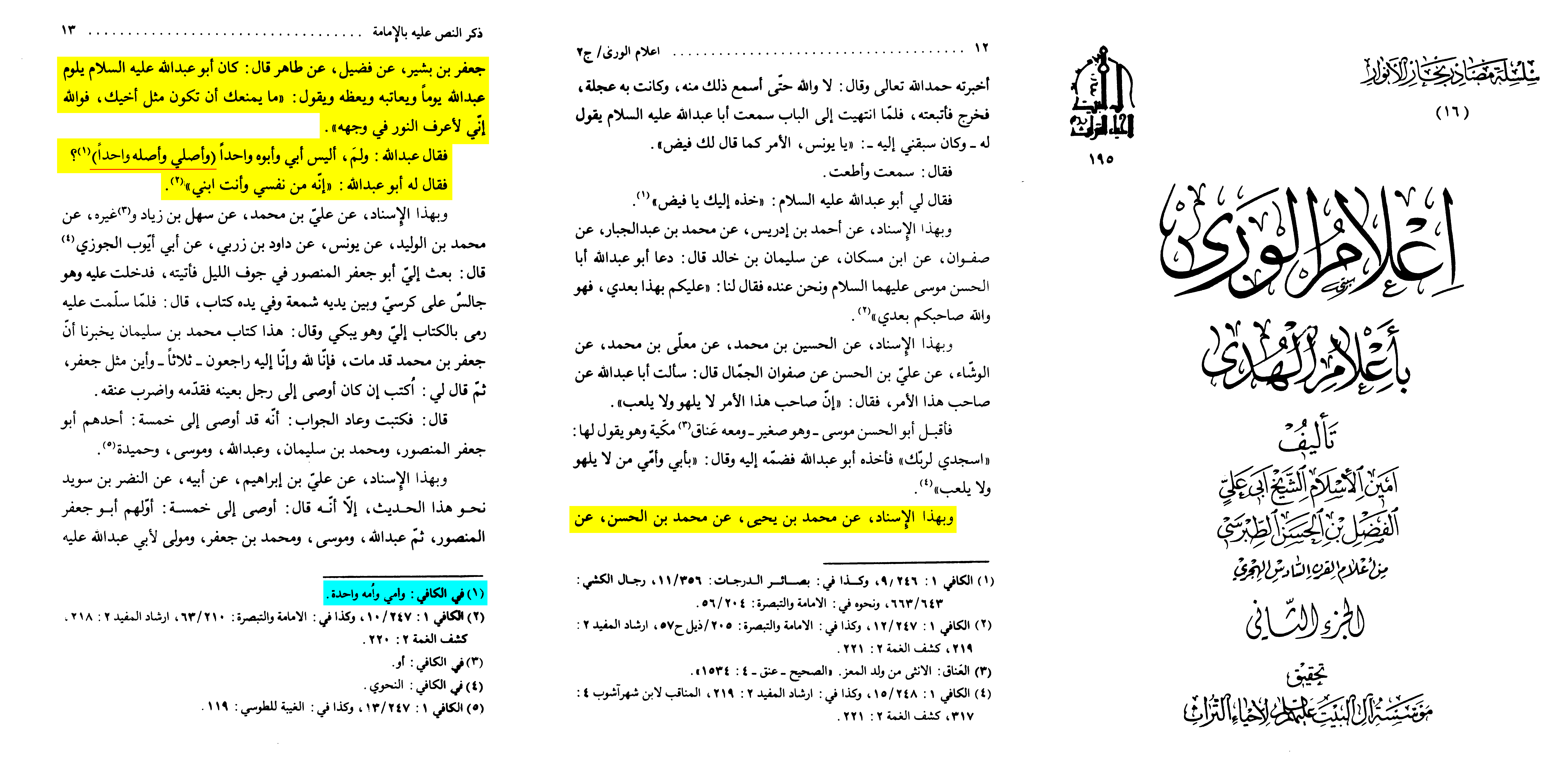 What decisively proves this is that in al-Tabrasi’s rendition of the report, quoting al-Kafi, he reveals a different variant as we read in 'Alam al-Wara', Vol. 2, pg. 12 - 13: