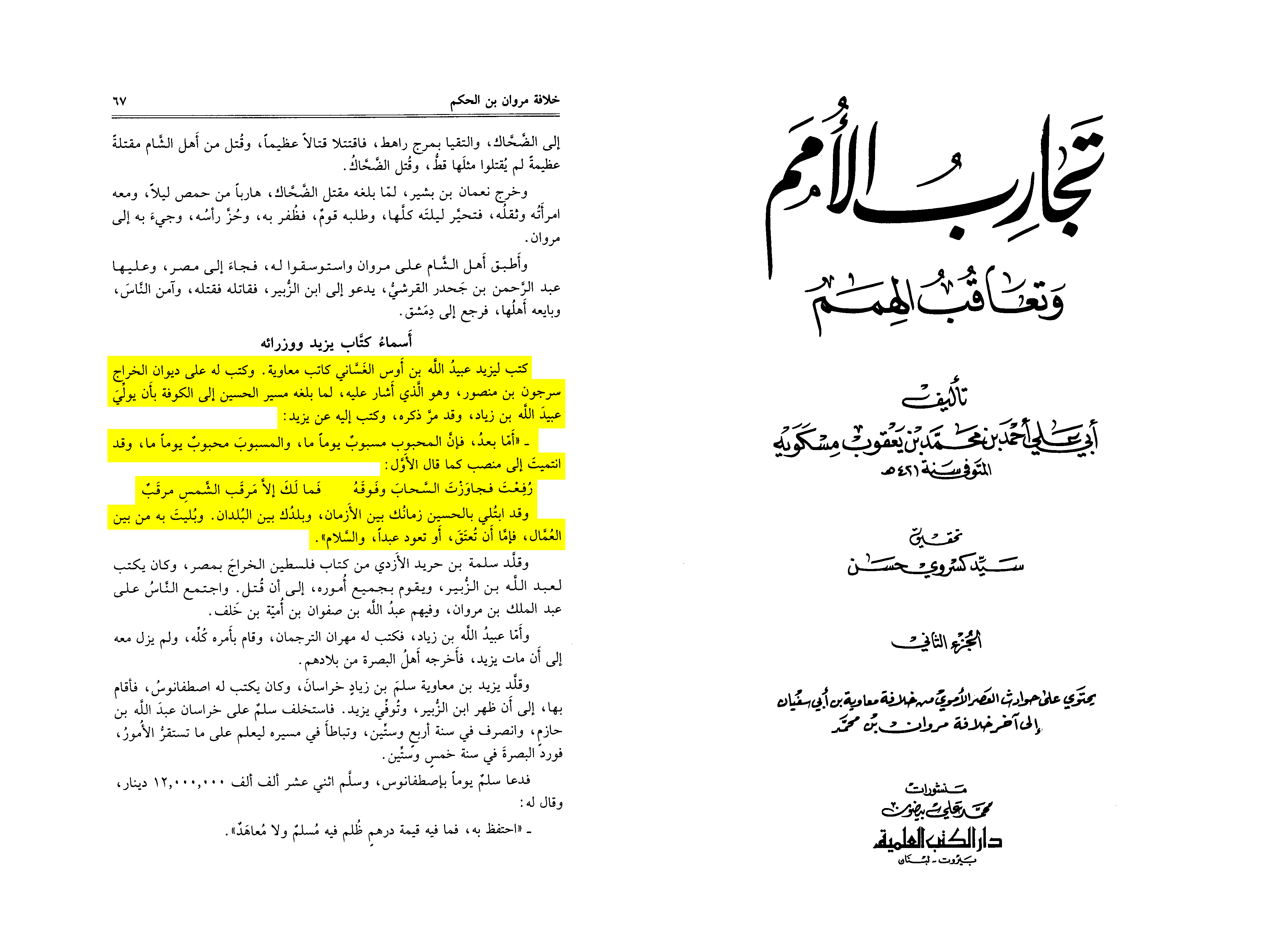 Ibn Miskawayh (d. 421) in Tajarib al-Ummam Vol. 2, pg. 67