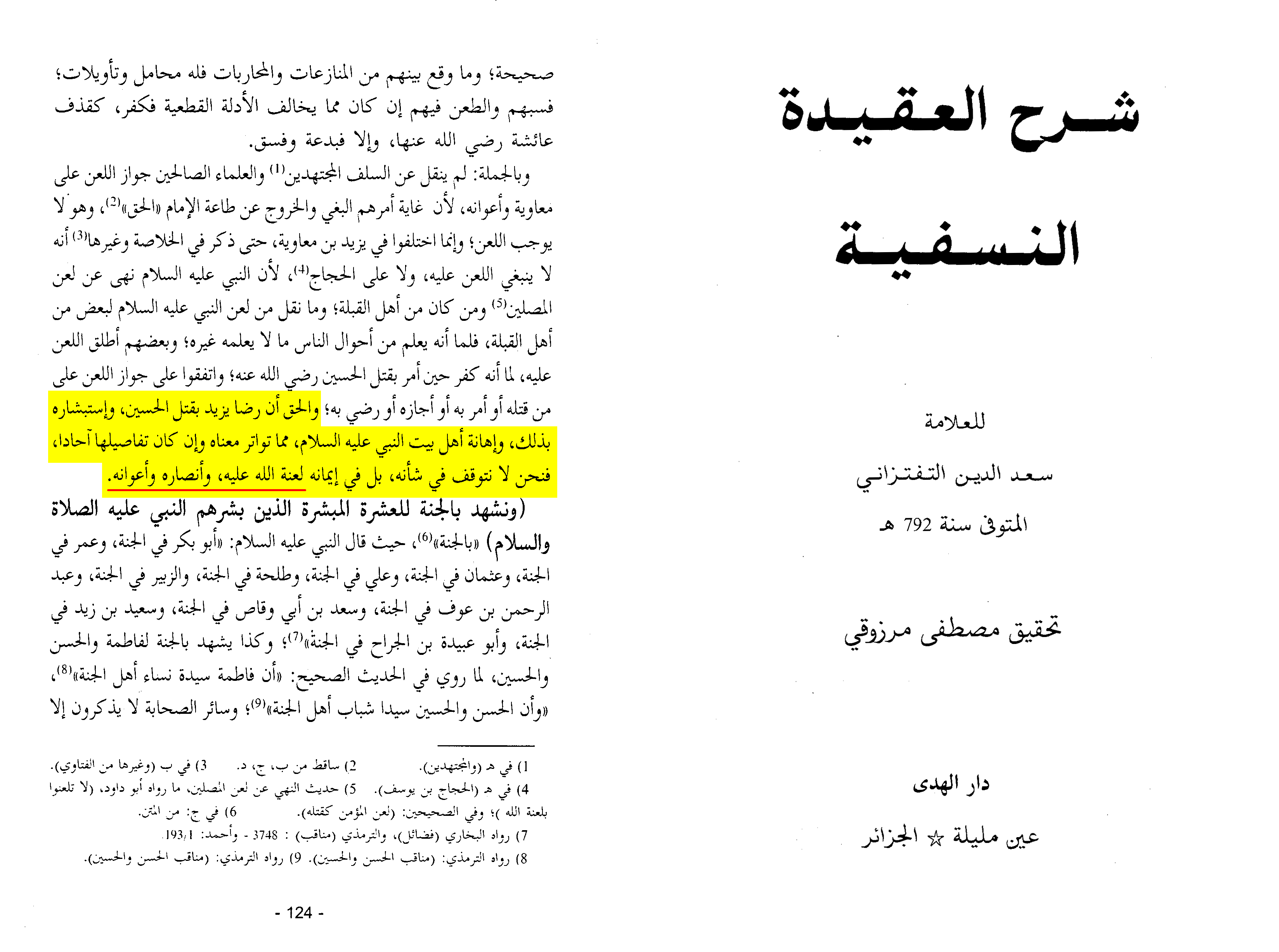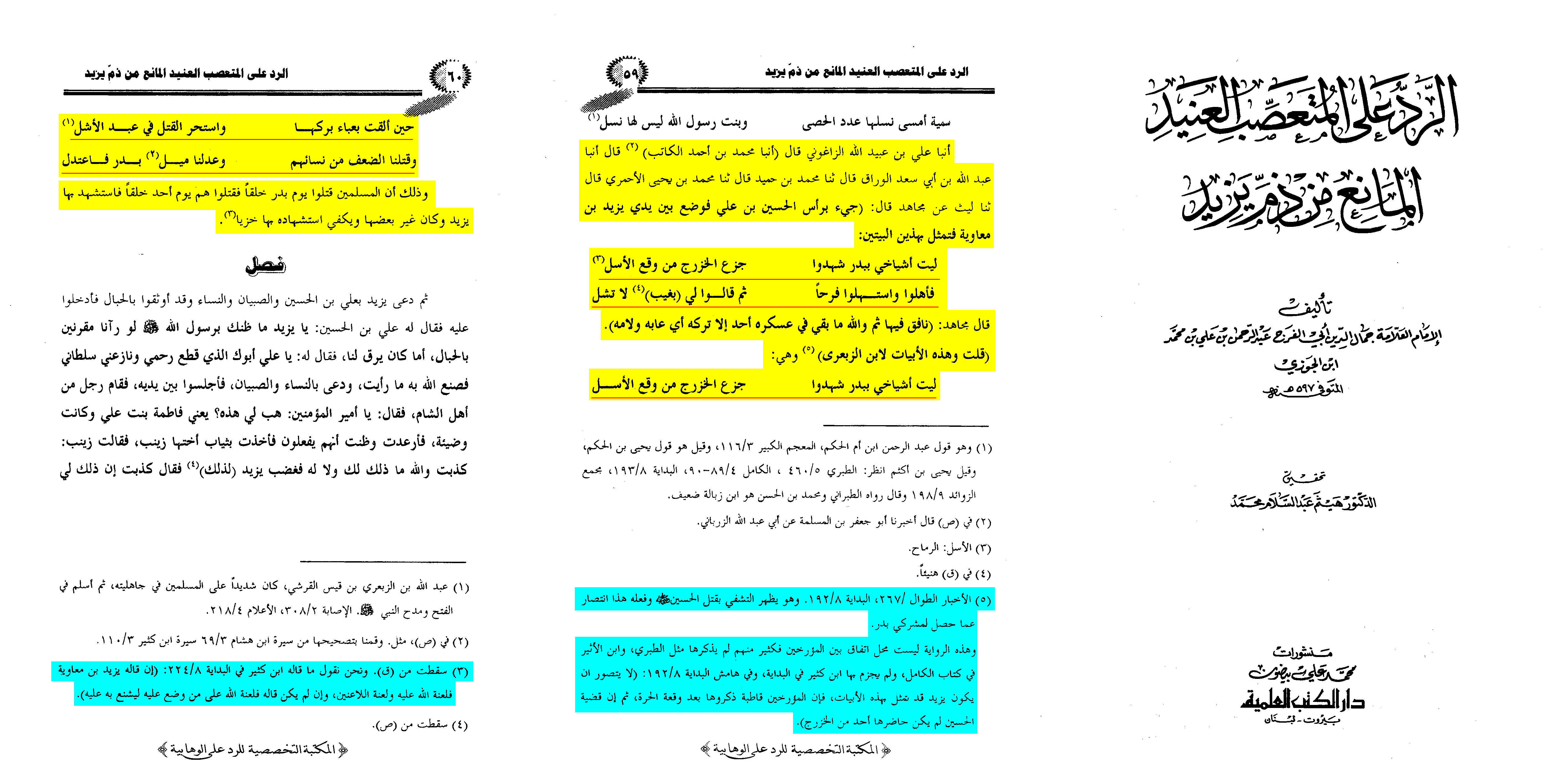 And the truth is that Yazid’s satisfaction at the killing of Husayn, his rejoicing over it, and his humiliation of the family of the Prophet (SAW) are matters whose meaning is mass-transmitted, even if the details are transmitted singly. Thus we do not hesitate regarding his case, but regarding his very faith. May God’s curse be upon him, his supporters, and his helpers.