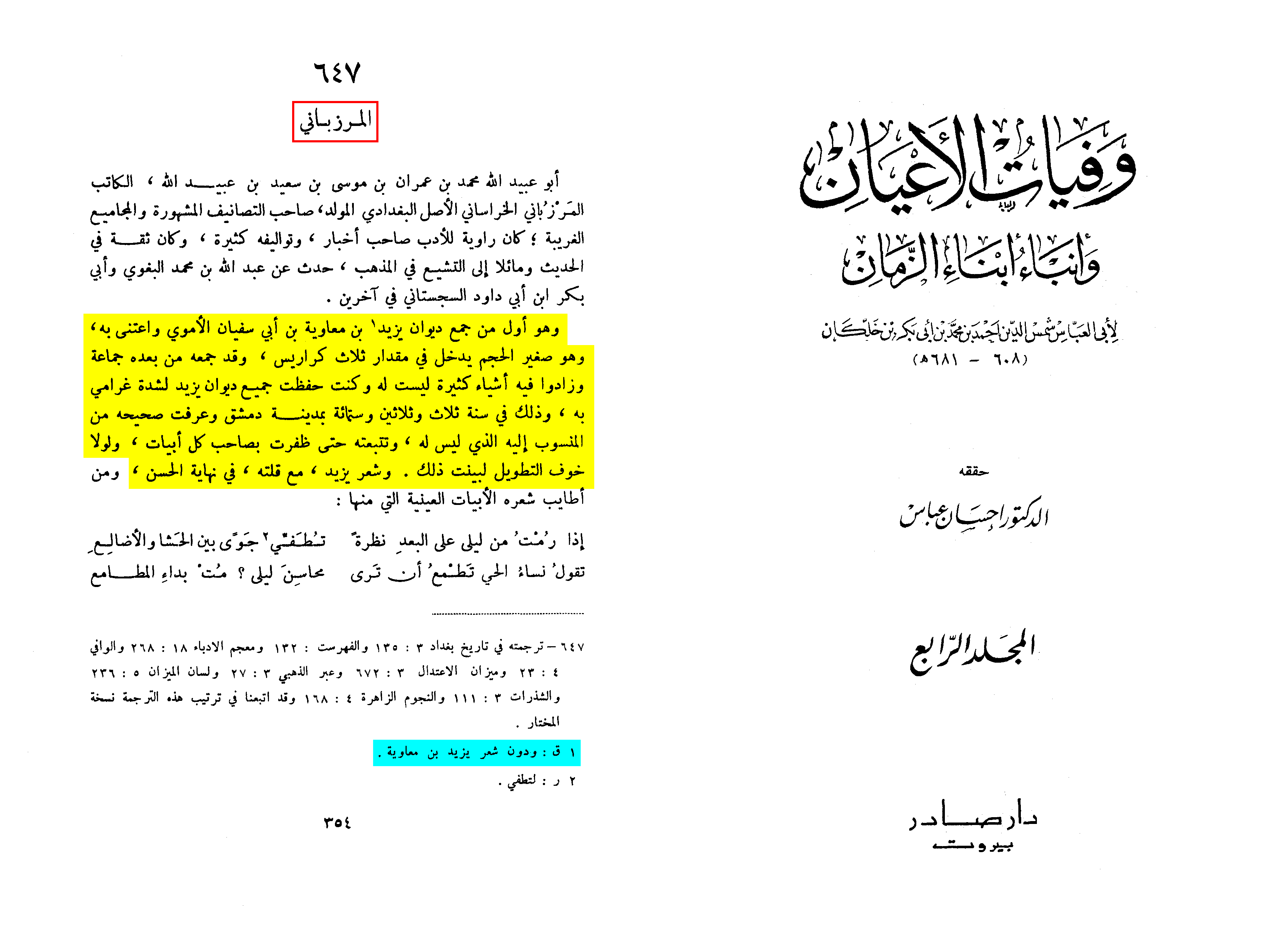 Ibn Khalikhan goes on to say that he has “intense admiration” and “an obsession" with Yazid’s poetry, despite many of its attributions being fabricated! For what should this man praise Yazid’s poetry, when much of it consisted of kufr and ma’siya (disobedience to God)? Just consider what al-Damiri records in Hayat al-Hayawan Vol. 4, pg. 272: