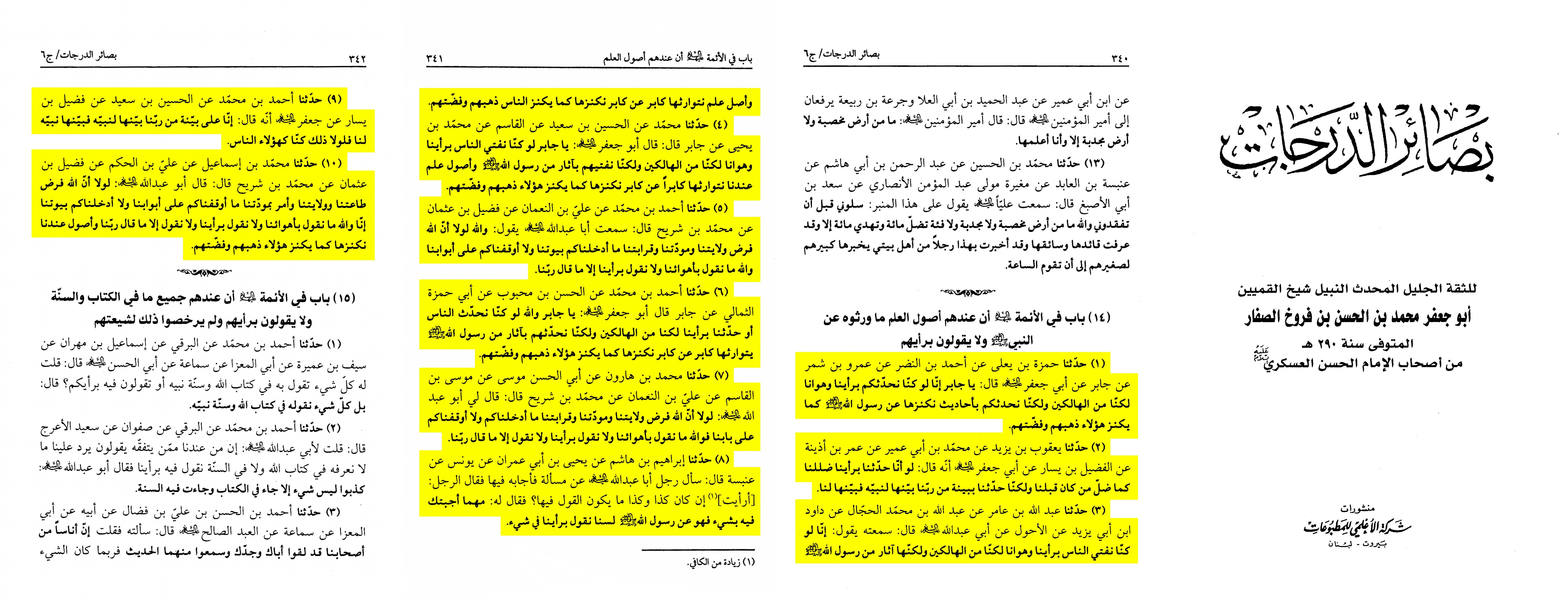 This hadith is very clear in explaining this matter to us, and to prove its authenticity we point our readers to Basair al-Darajat pg. 340 - 342 by al-Saffar, who records the following: