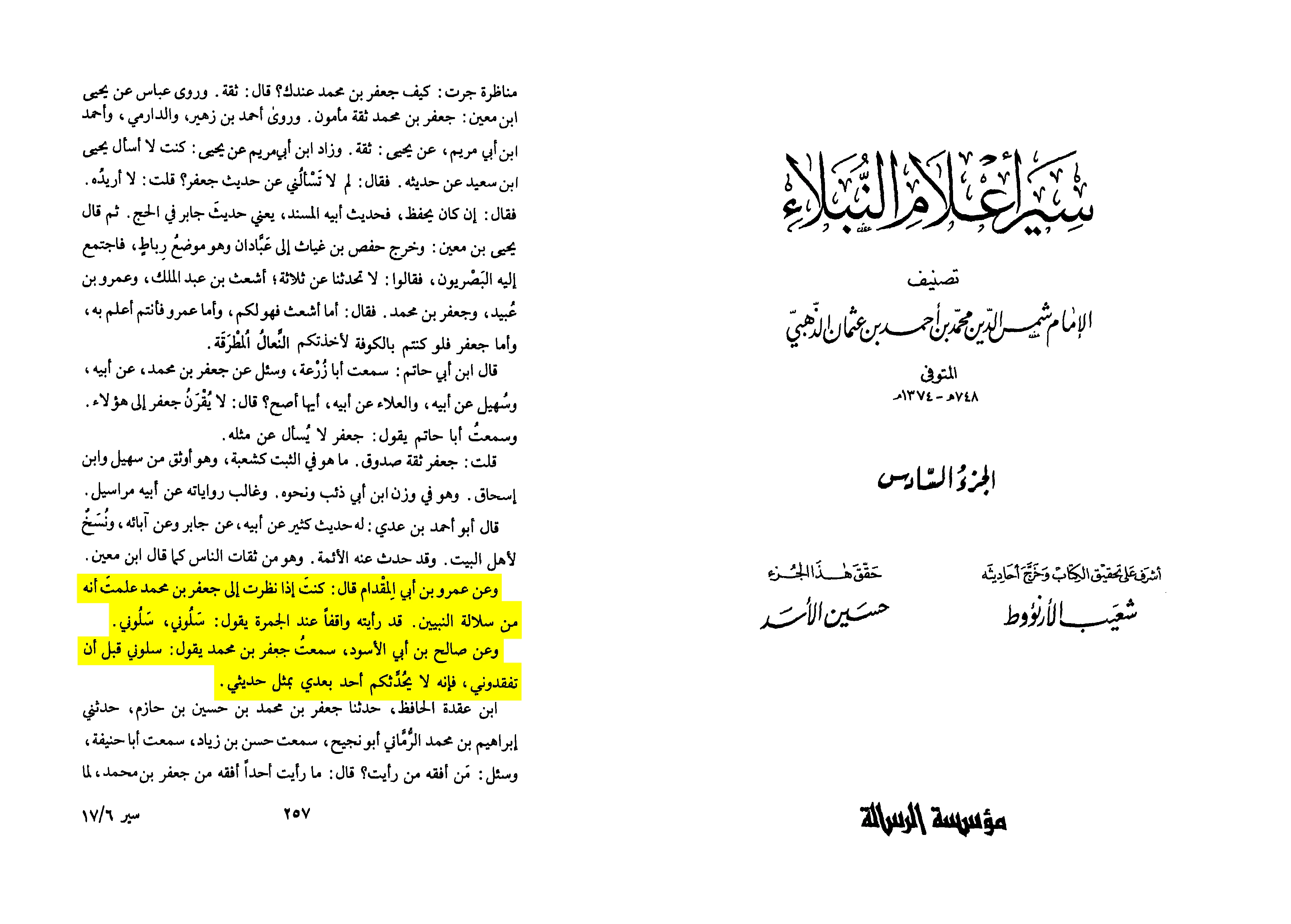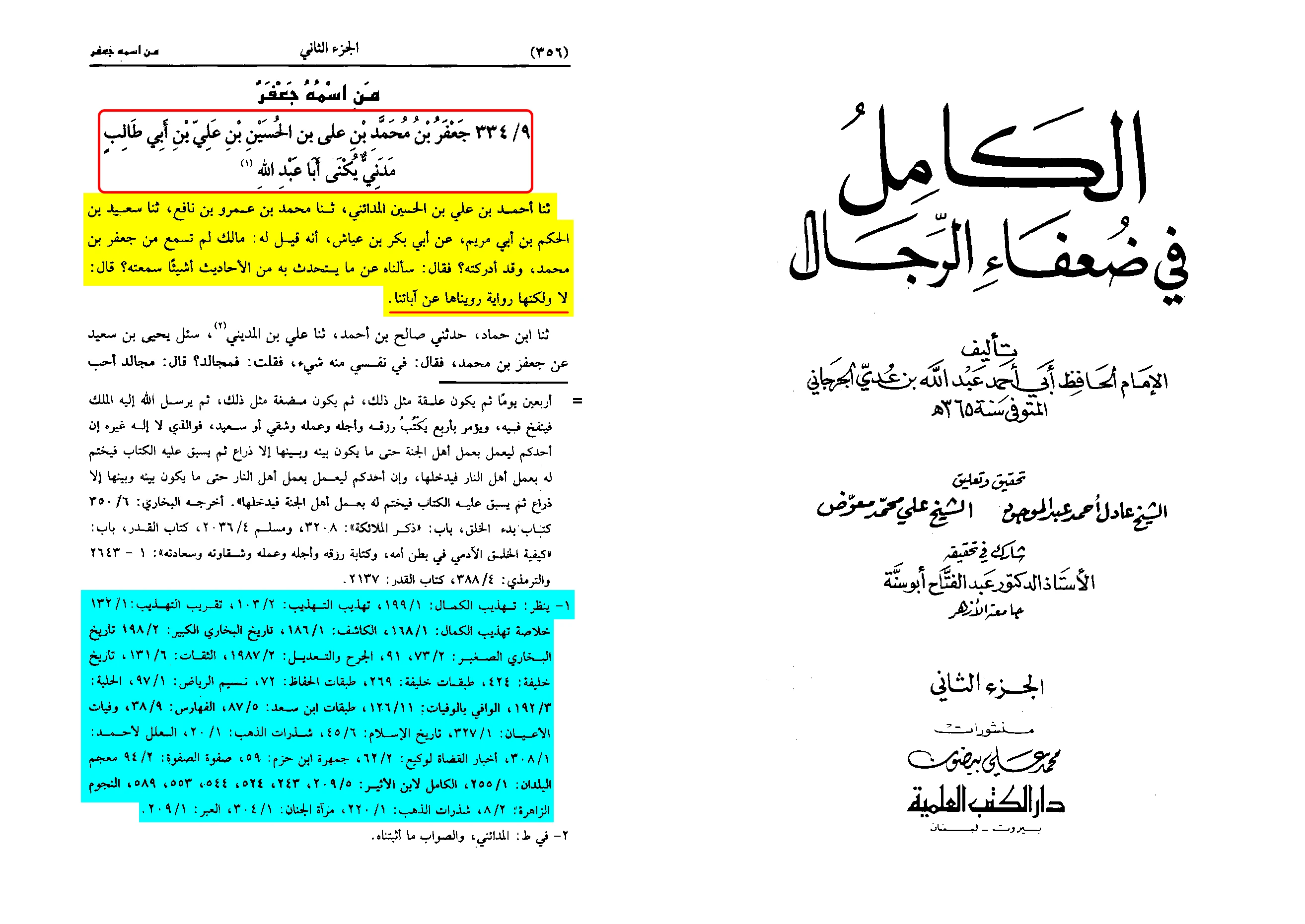 And Salih b. Abi al-Aswad said: "I heard Ja‘far b. Muhammad say: 'Ask me before you lose me, for no one after me will narrate to you as I do.'”