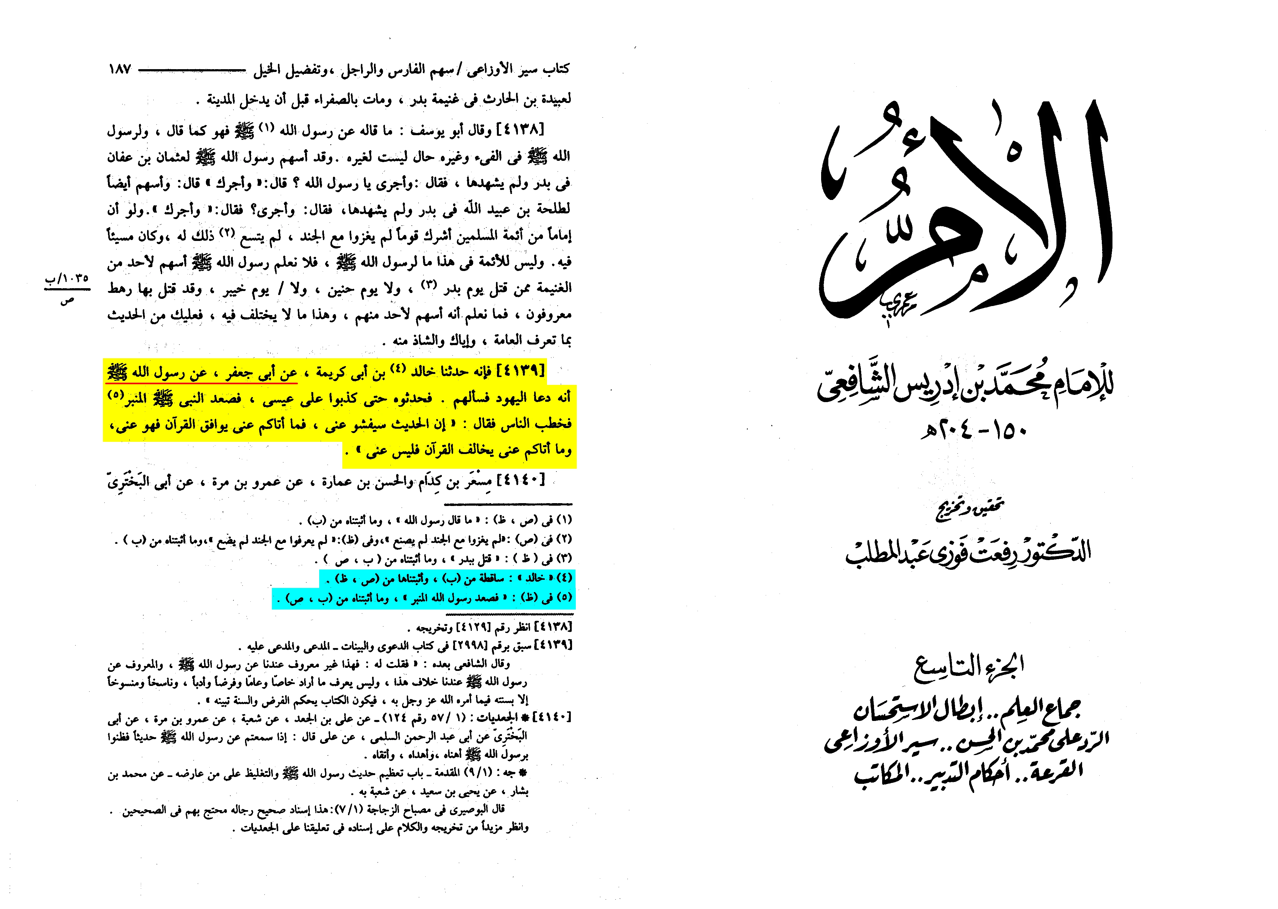 Al-Shafi's endorsement of this report and citation of it for evidence to derive legal rulings indicates that he saw the Hadiths narrated by Imam al-Baqir (as) to the Prophet (saw) as authoritative despite him never having met the Prophet. However, because it is clear that the Imam is narrating from his forefathers, it is accepted as a musnad (connected) report.