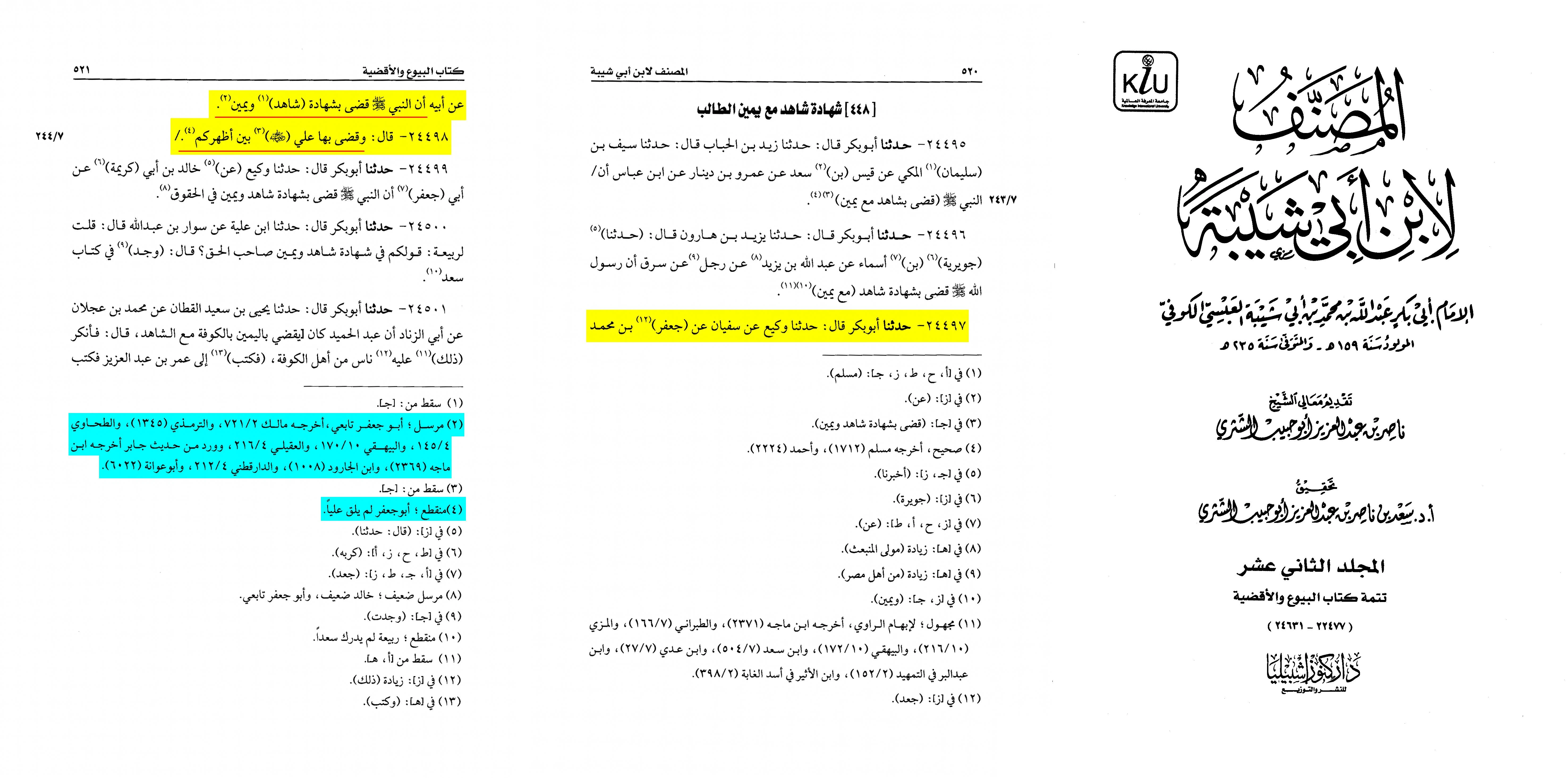 Ja'far b. Muhammad narrated from his father: "The Prophet (ﷺ) passed judgement based on an oath along with one witness." He said: "And 'Ali judged between you based on it."