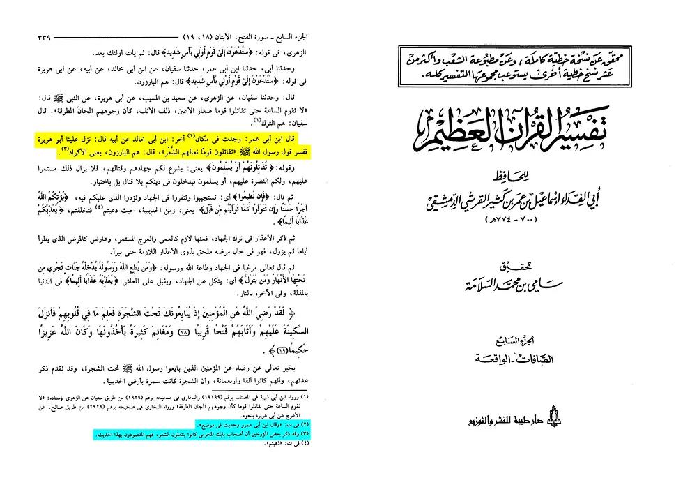 For example, in Tafsir Ibn Kathir, commentary of 48:16: