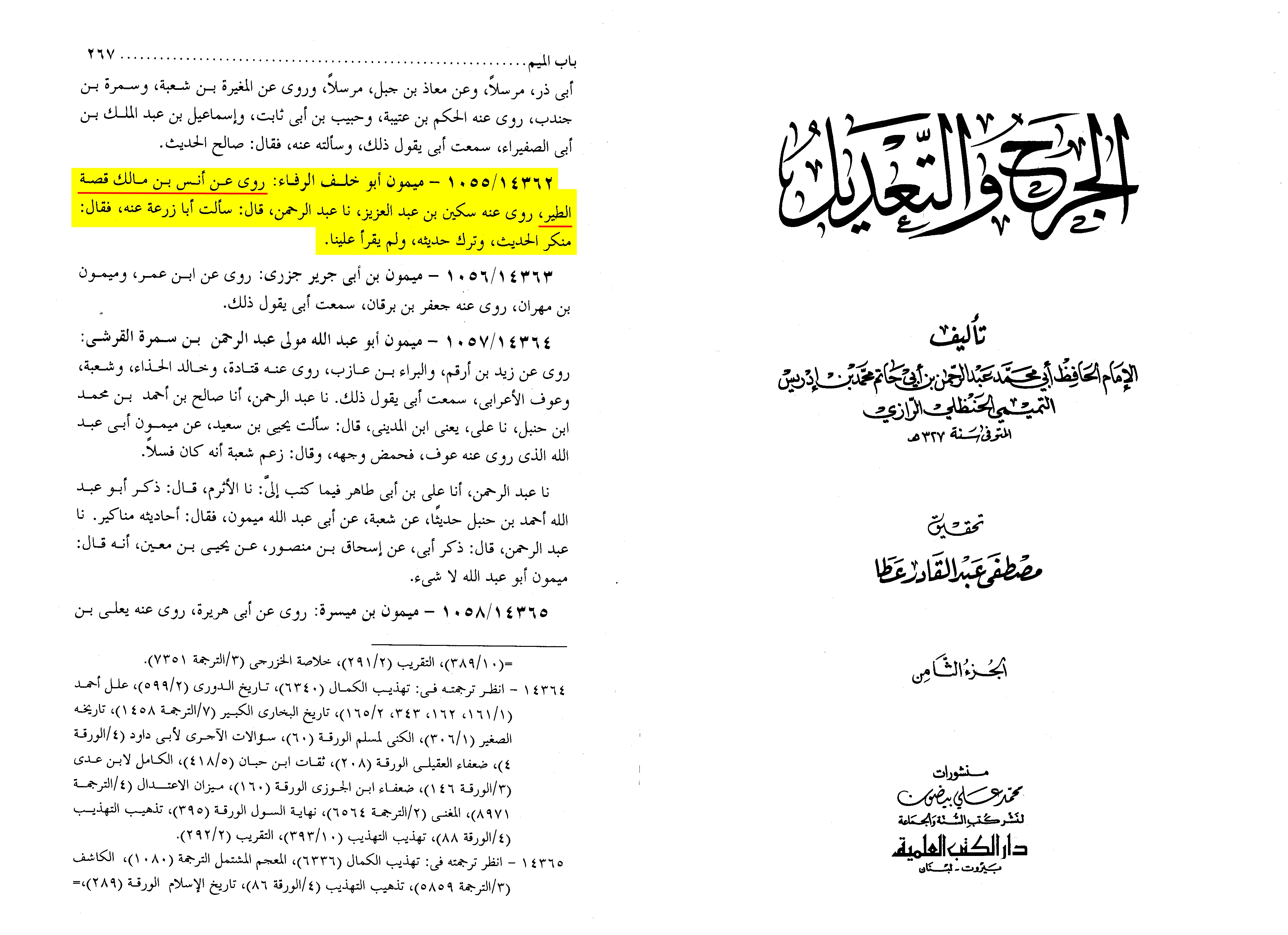 When we read Ibn Abi Hatim’s Jarh wal-Ta’dil, vol. 8, pg. 267, we find the following mentioned about Maymun: