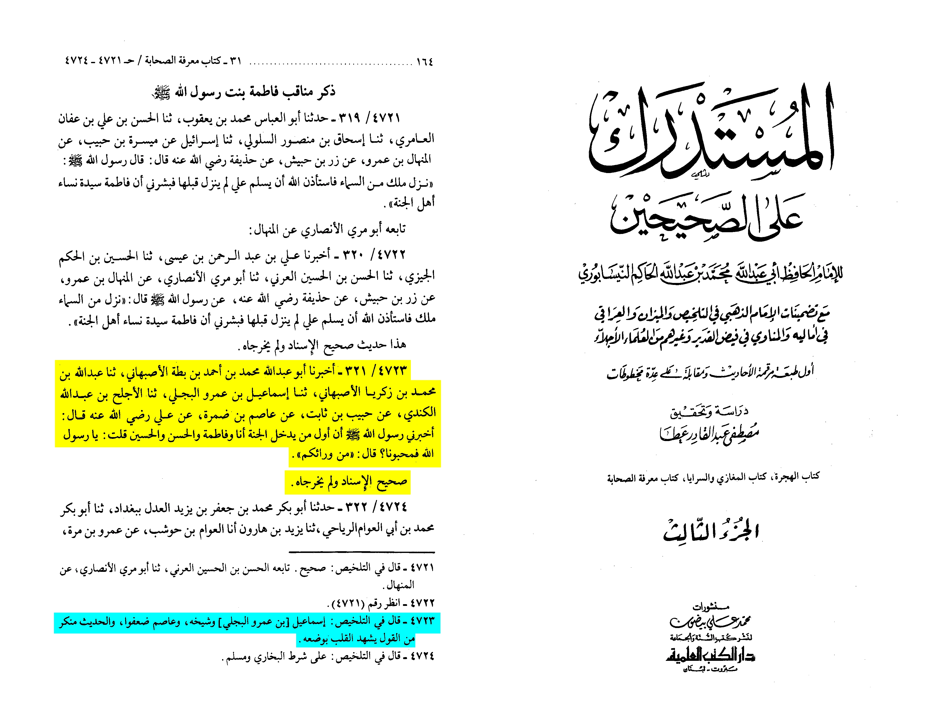 He then cites an example for this from al-Hakim’s al-Mustadrak ala al-Sahihain Vol 3, pg. 164, Hadith # 4732: