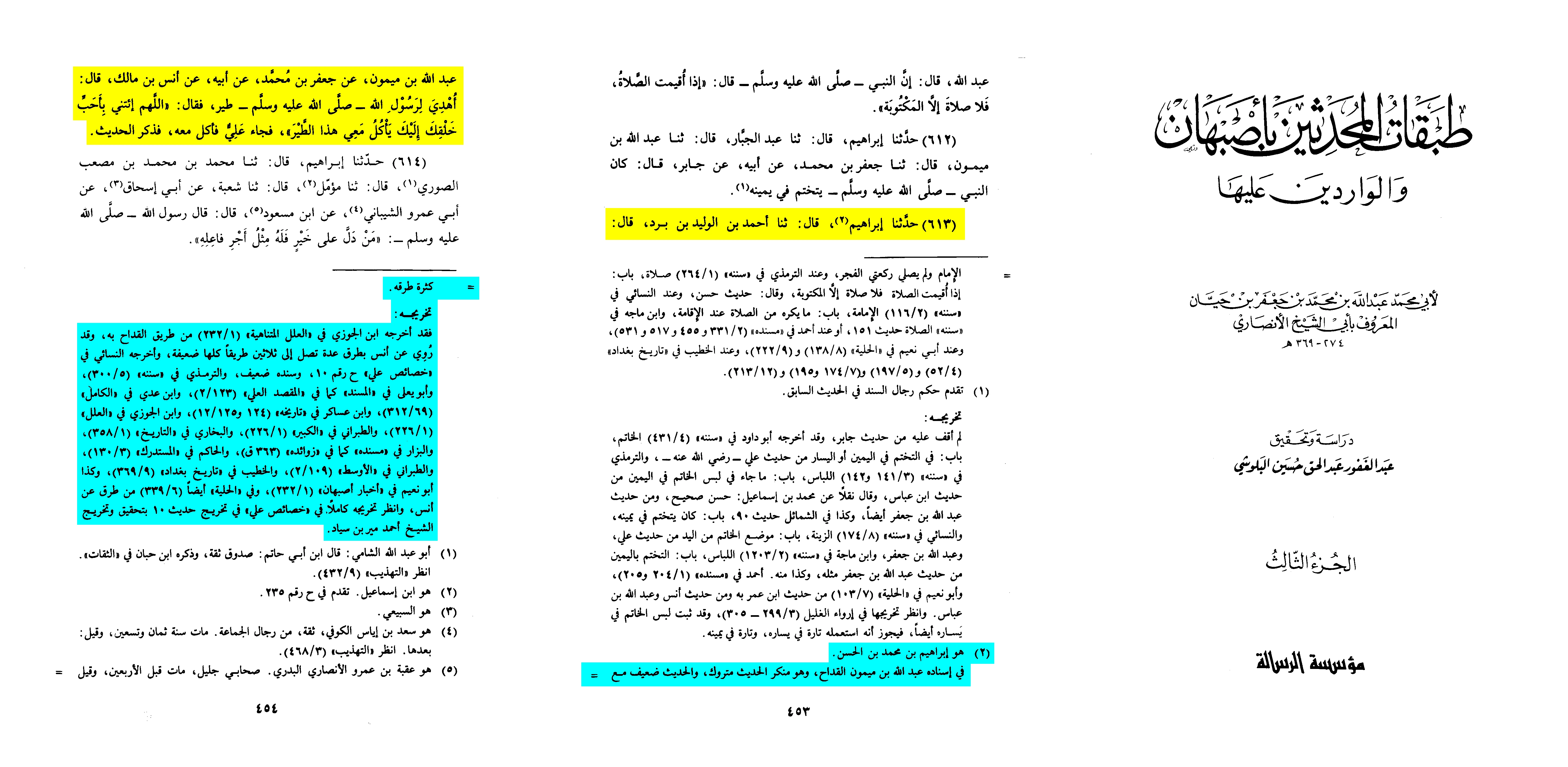Abu Shaykh is another reliable scholar for Ahlus Sunnah. He’s also well praised by al-Dhahabi and others. He recorded this report from Imam Ja’far al-Sadiq (AS) from Anas b. Malik in Tabaqat al-Muhaddithin Fi Isfahan, vol. 3, pg. 453 - 454, Hadith 613 but similar to Khatib al-Baghdadi, he decided to censor the report by ending it off as “and he mentioned the report”: