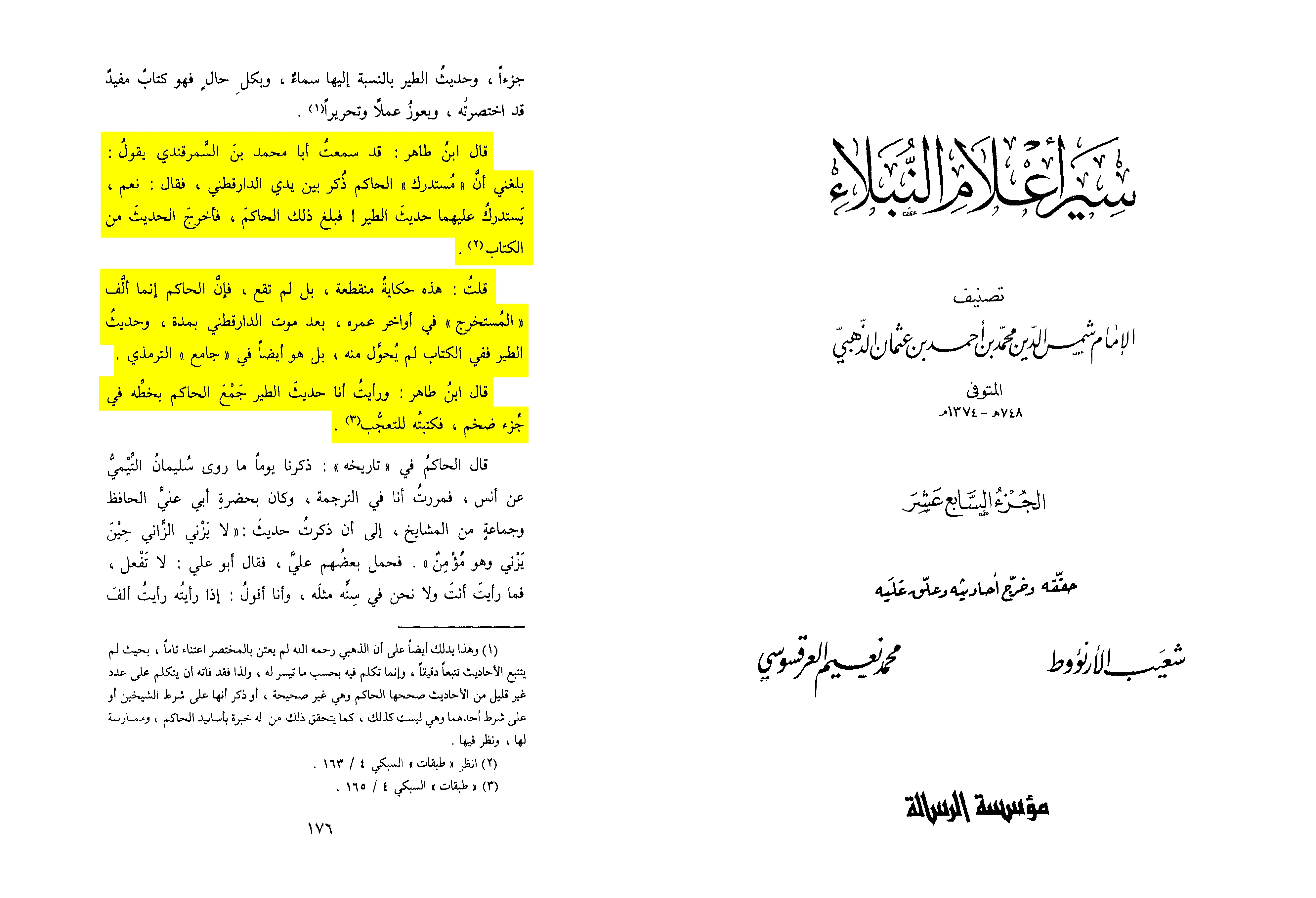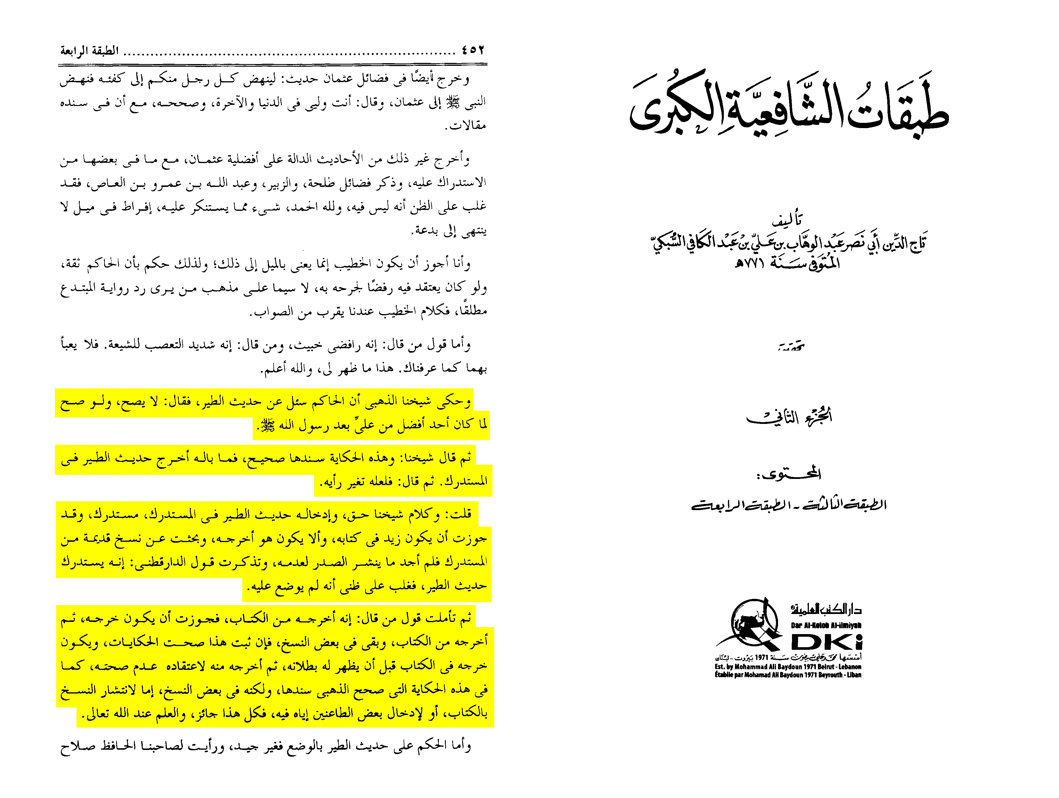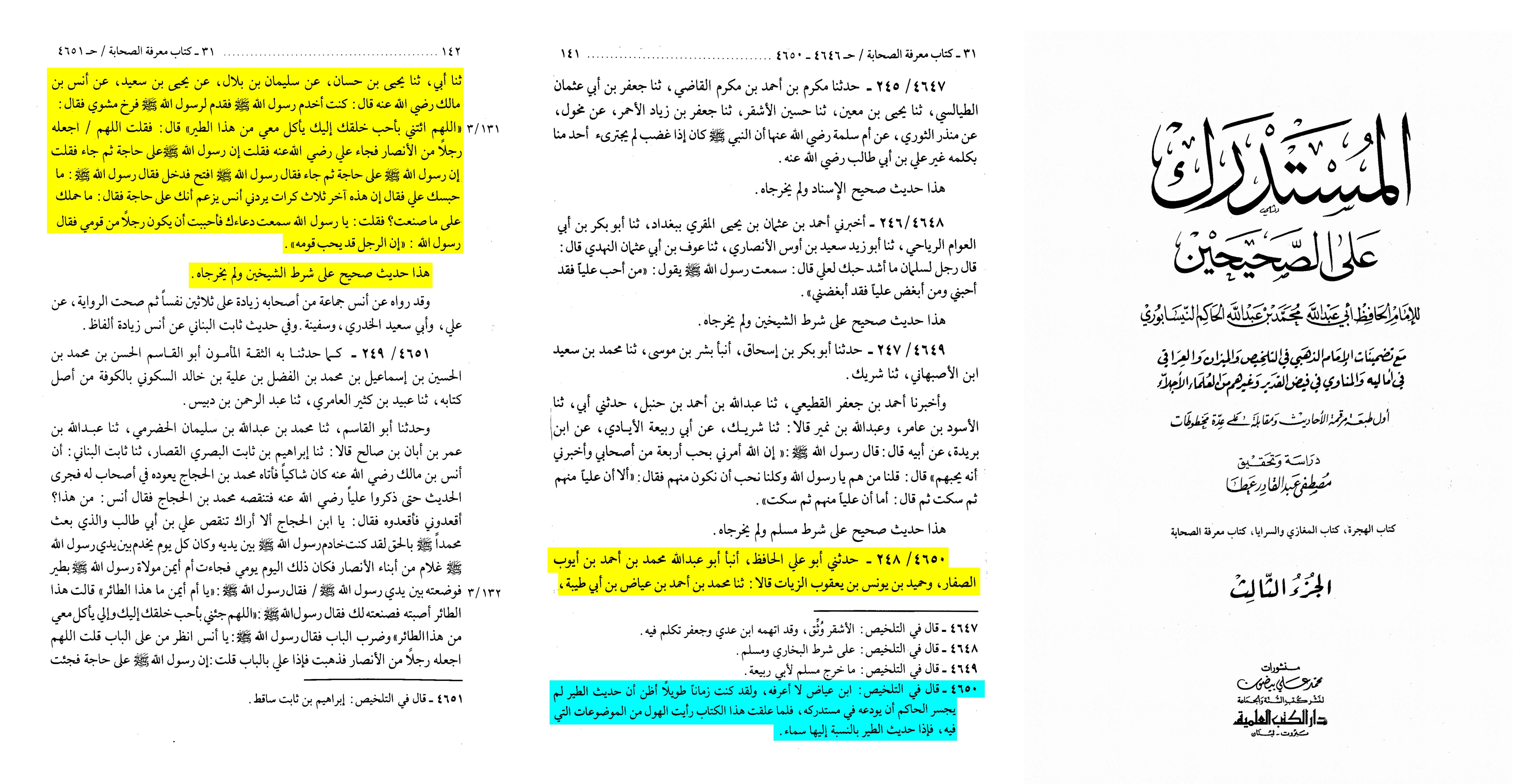 Here, al-Subki could not accept that Hadith al-Tayr remained in al-Mustadrak of al-Hakim, so he devised a theory, suggesting that it was either a later addition by outsiders or that al-Hakim himself had intended to remove it. Yet all the manuscripts he revised contradicted this and showed that al-Hakim did indeed narrate it and never removed it.