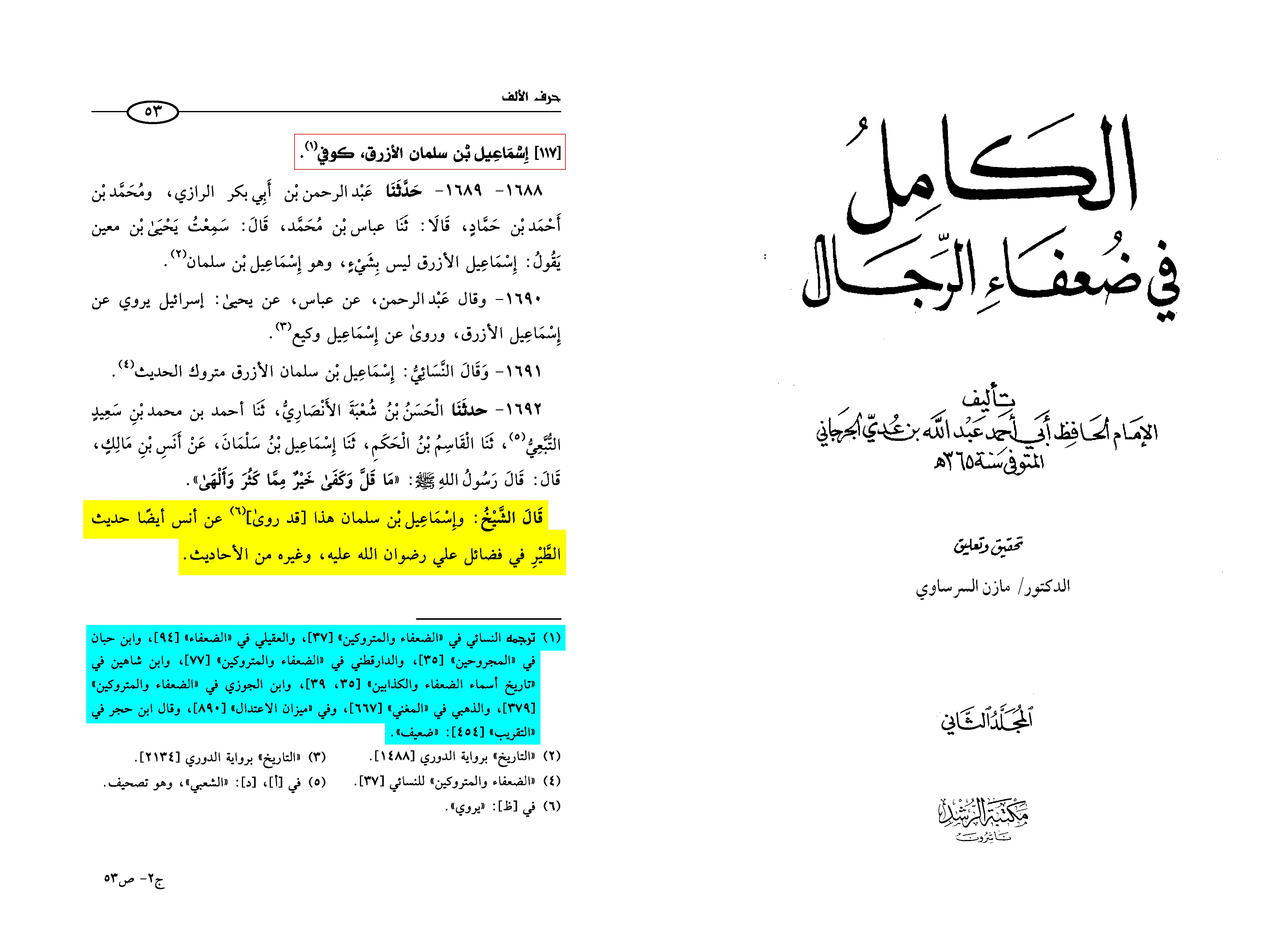 However, when we read his biography in Kamil Fi al-Du’afa, vol. 2, pg. 53 by Ibn Udayy, we read: