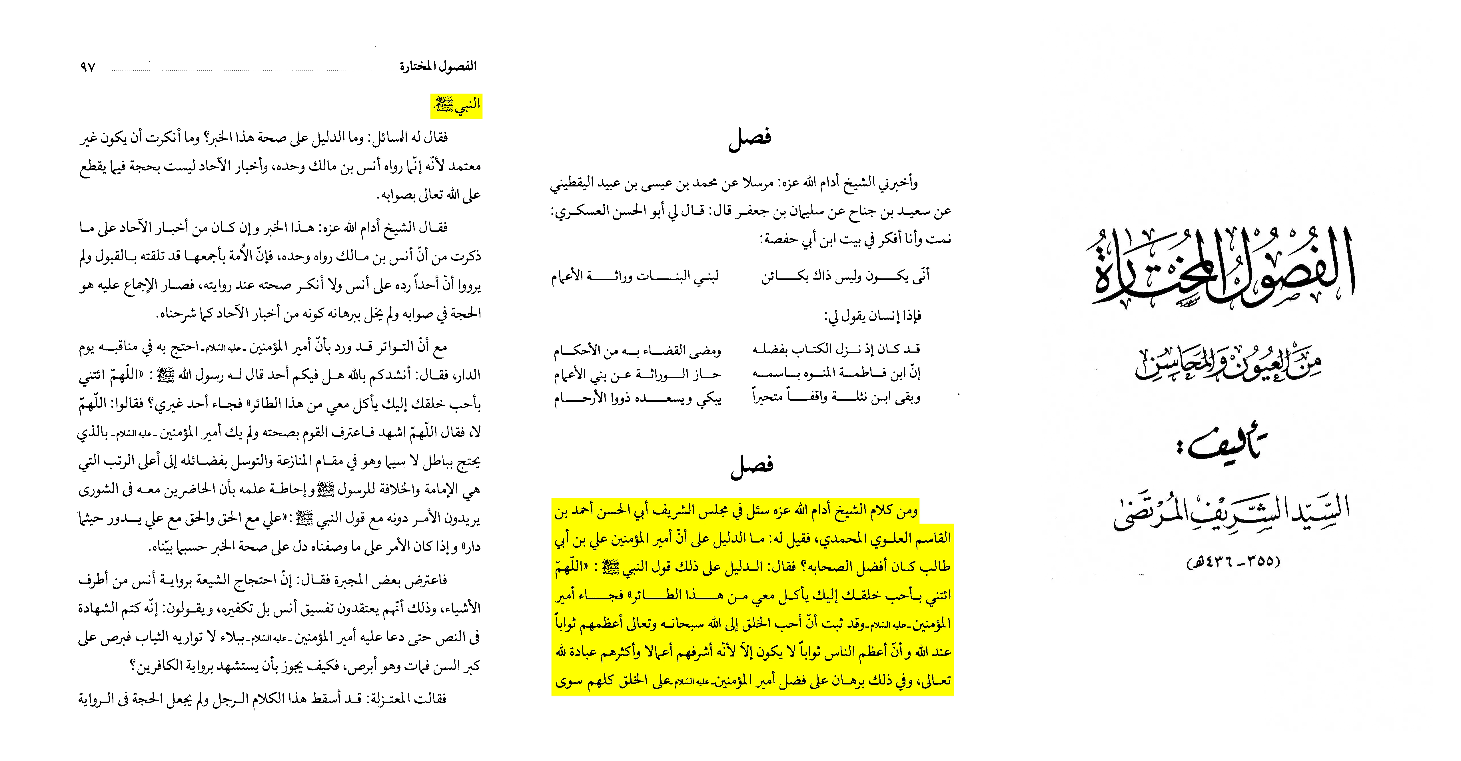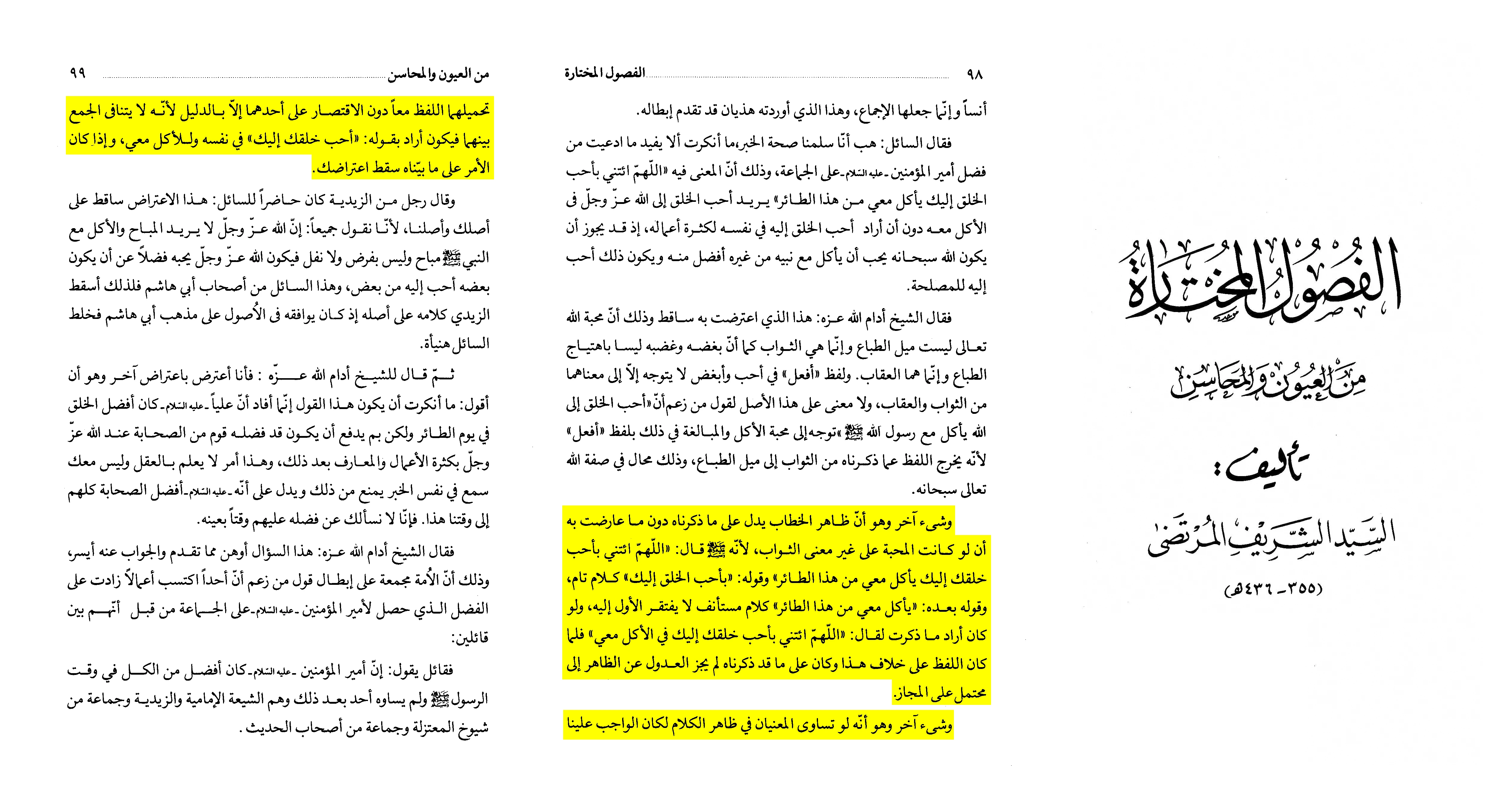We read in al-Fusul al-Mukhtara, pg. 96 - 97 by al-Sharif al-Murtada: