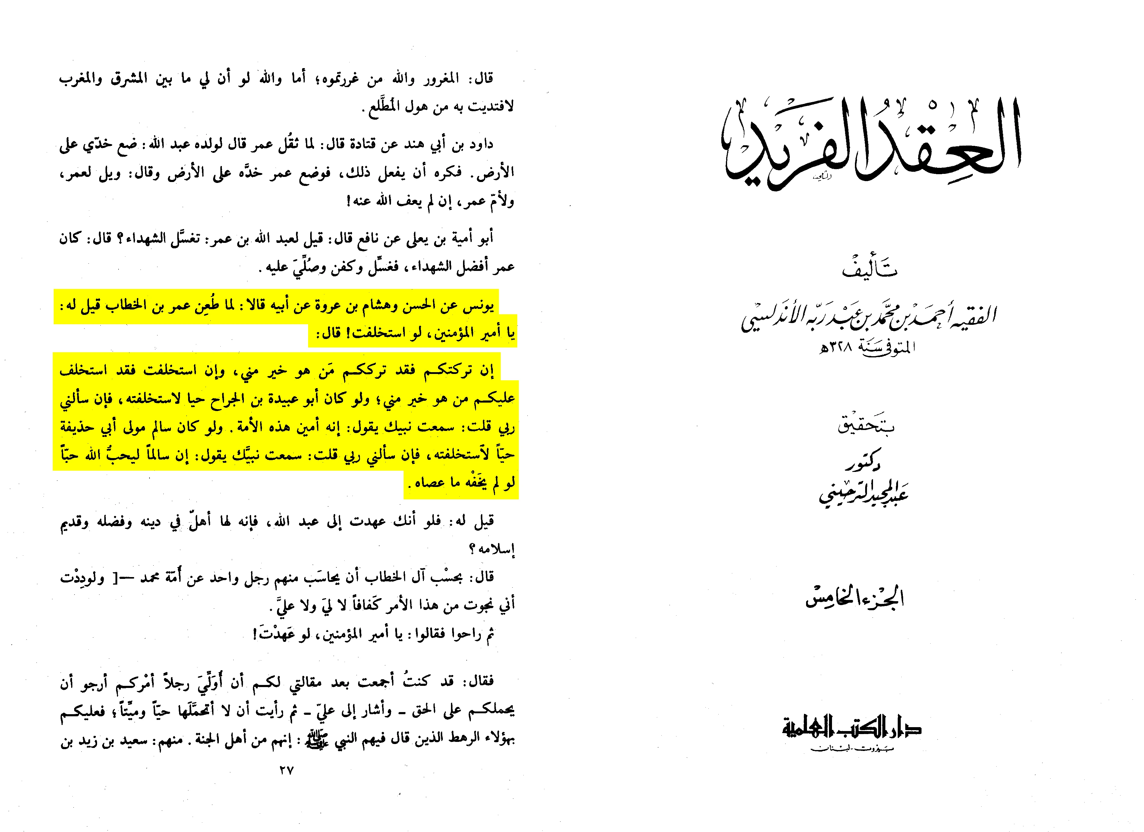 Let us refer to a report in al-’Iqd al-Farid, vol. 5, pg. 27: