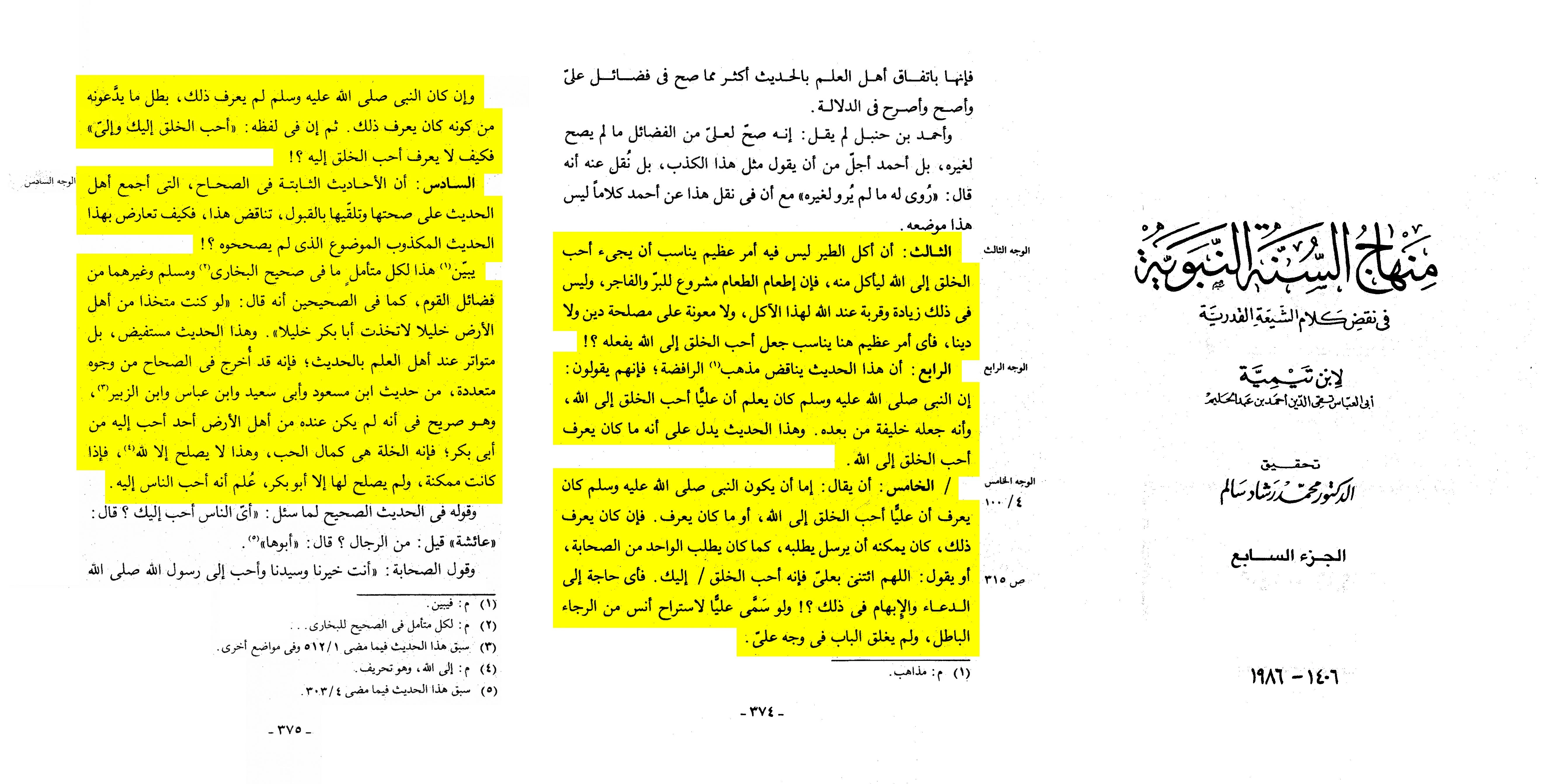 Ibn Taymiyyah continues to argue in Minhaj al-Sunnah, vol. 7, pg. 374 - 375: