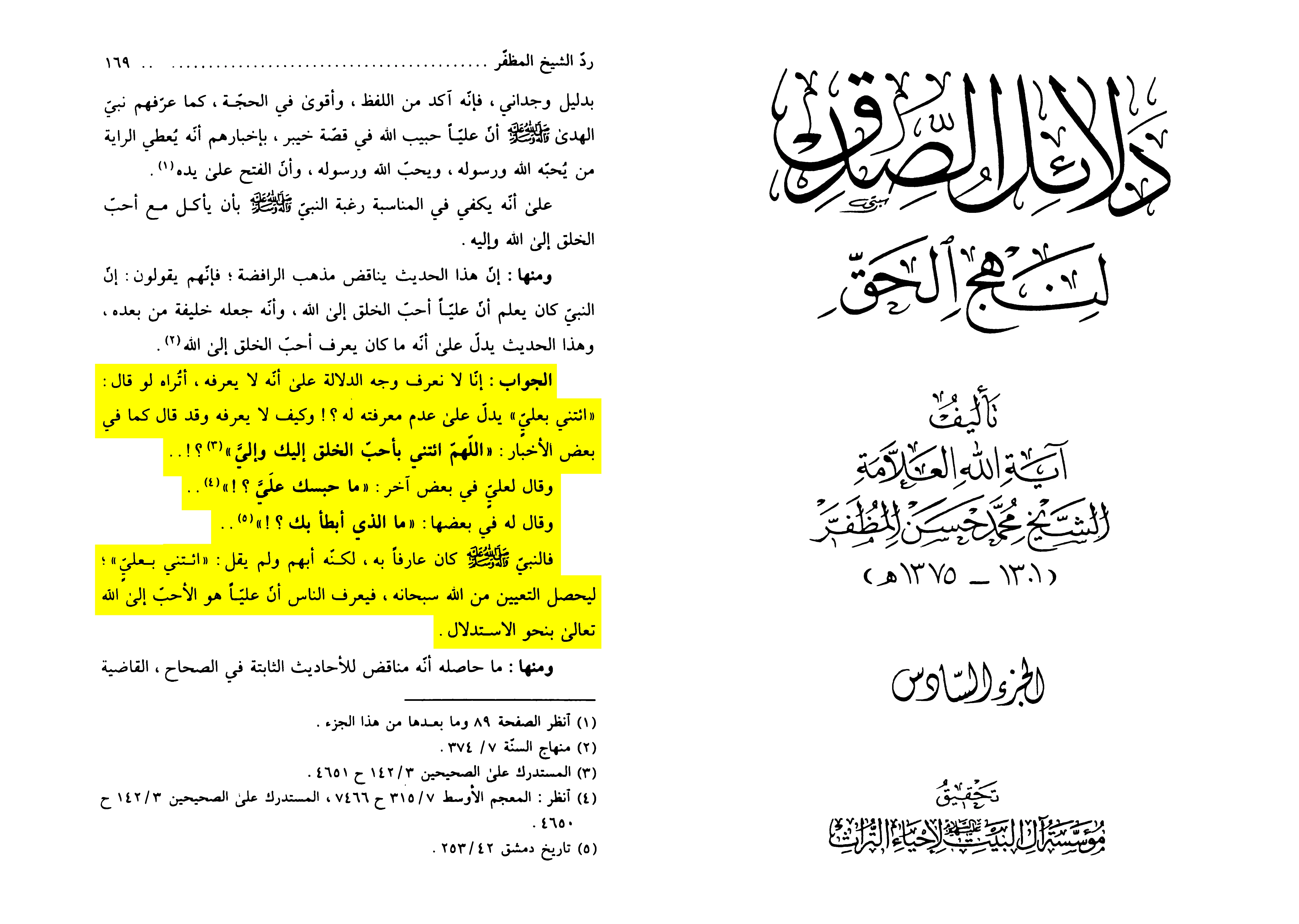 As for his other arguments, they are all one in the same which is that the Prophet (saw) meant as an exceptional clause. It was refuted by al-Shaykh Hasan al-Mudhaffar in Dala’il al-Sidq li-Nahj al-Haqq, vol. 6, pg. 167: