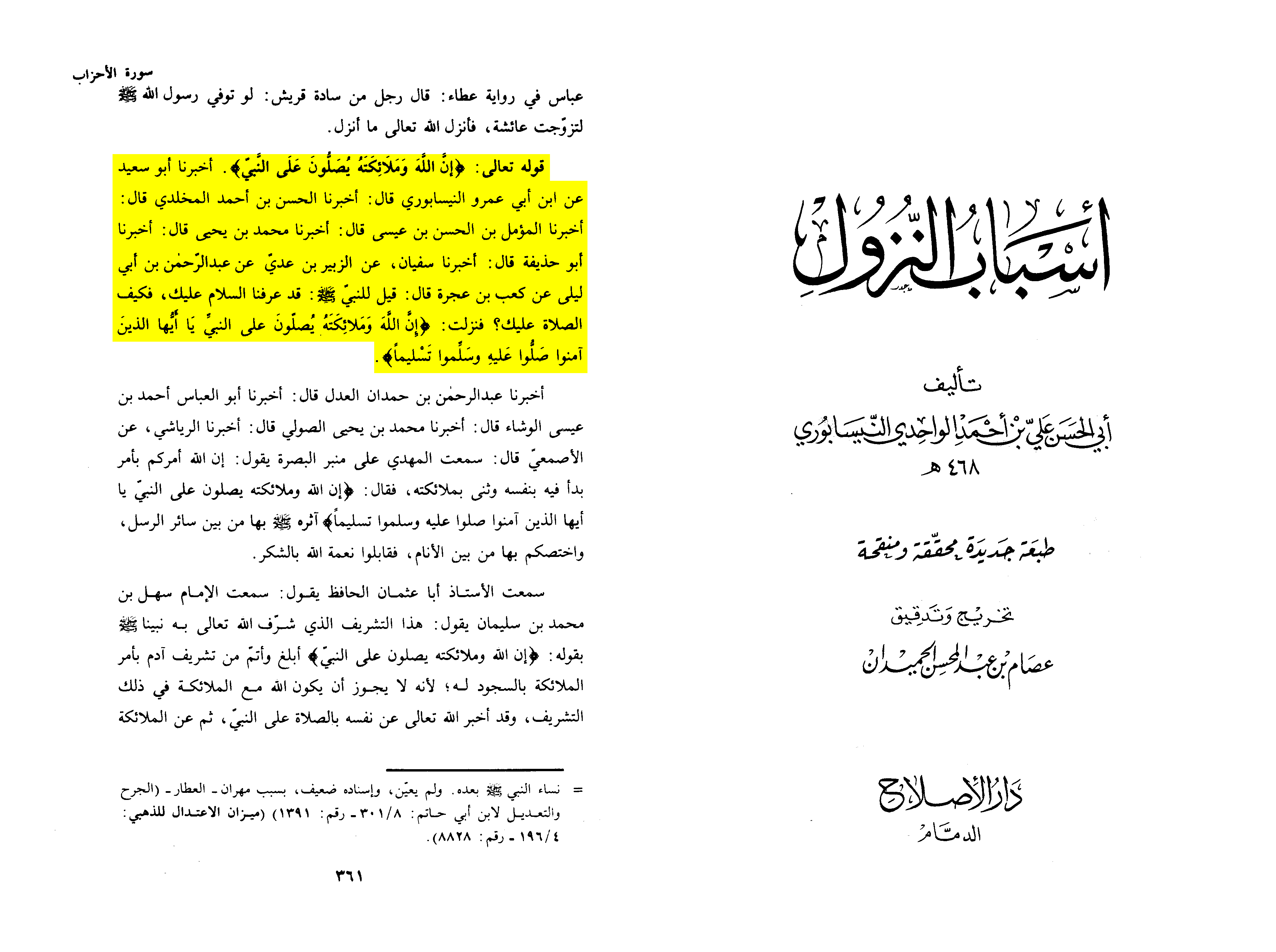 “It was said to the Prophet, peace be upon him: ‘We have greeted you with peace; how then should we send salutations upon you?’ Then this verse was revealed: {Indeed, Allah and His angels send blessings upon the Prophet. O you who have believed, ask [Allah to confer] blessing upon him and peace}.”