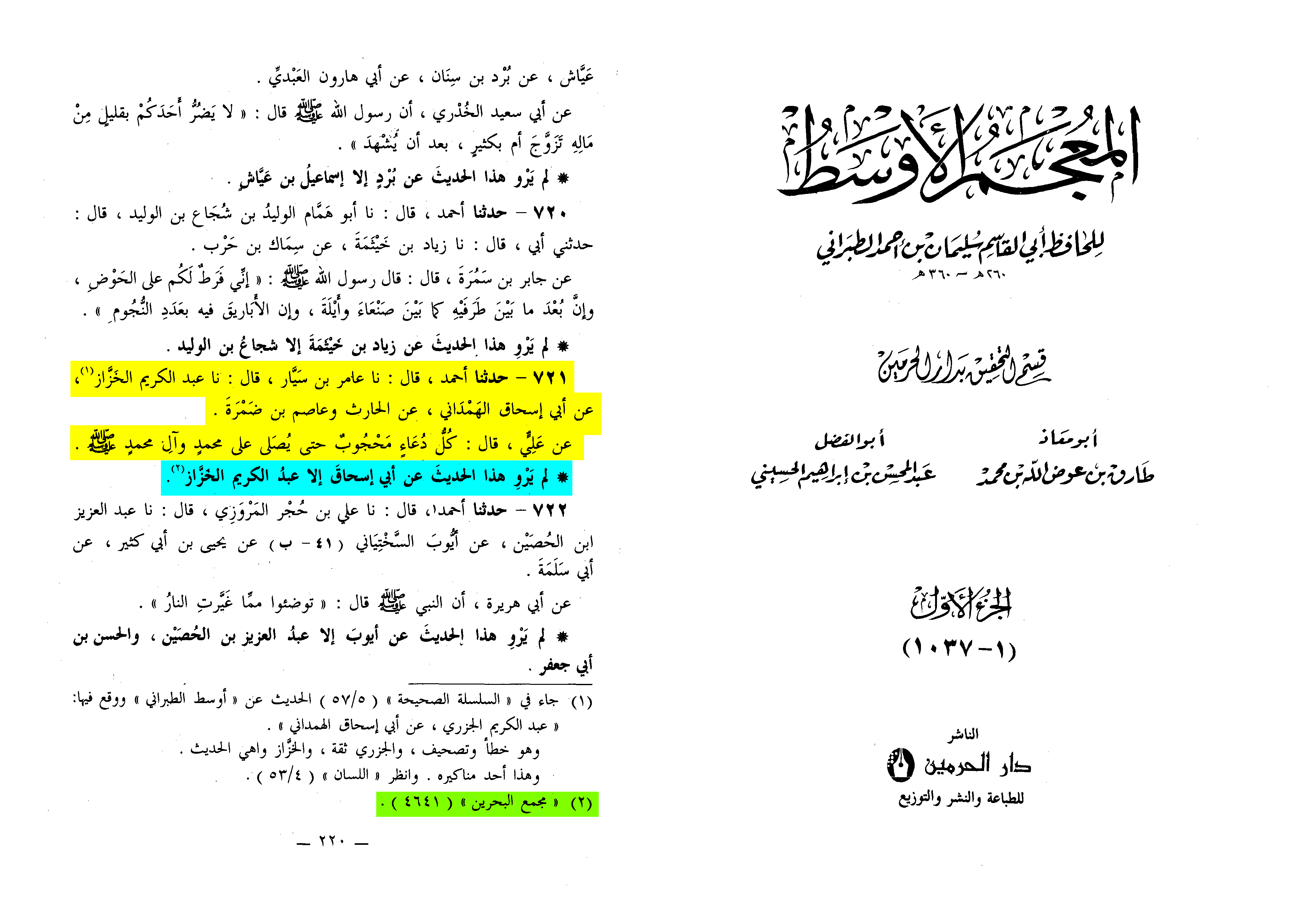 Ahmad narrated to us, saying: ‘Amir ibn Sayyar narrated to us, saying: ‘Abd al-Karim al-Kharraz narrated from Abu Ishaq al-Hamdani, from al-Harith and ‘Asim ibn Damrah, from Ali who said: