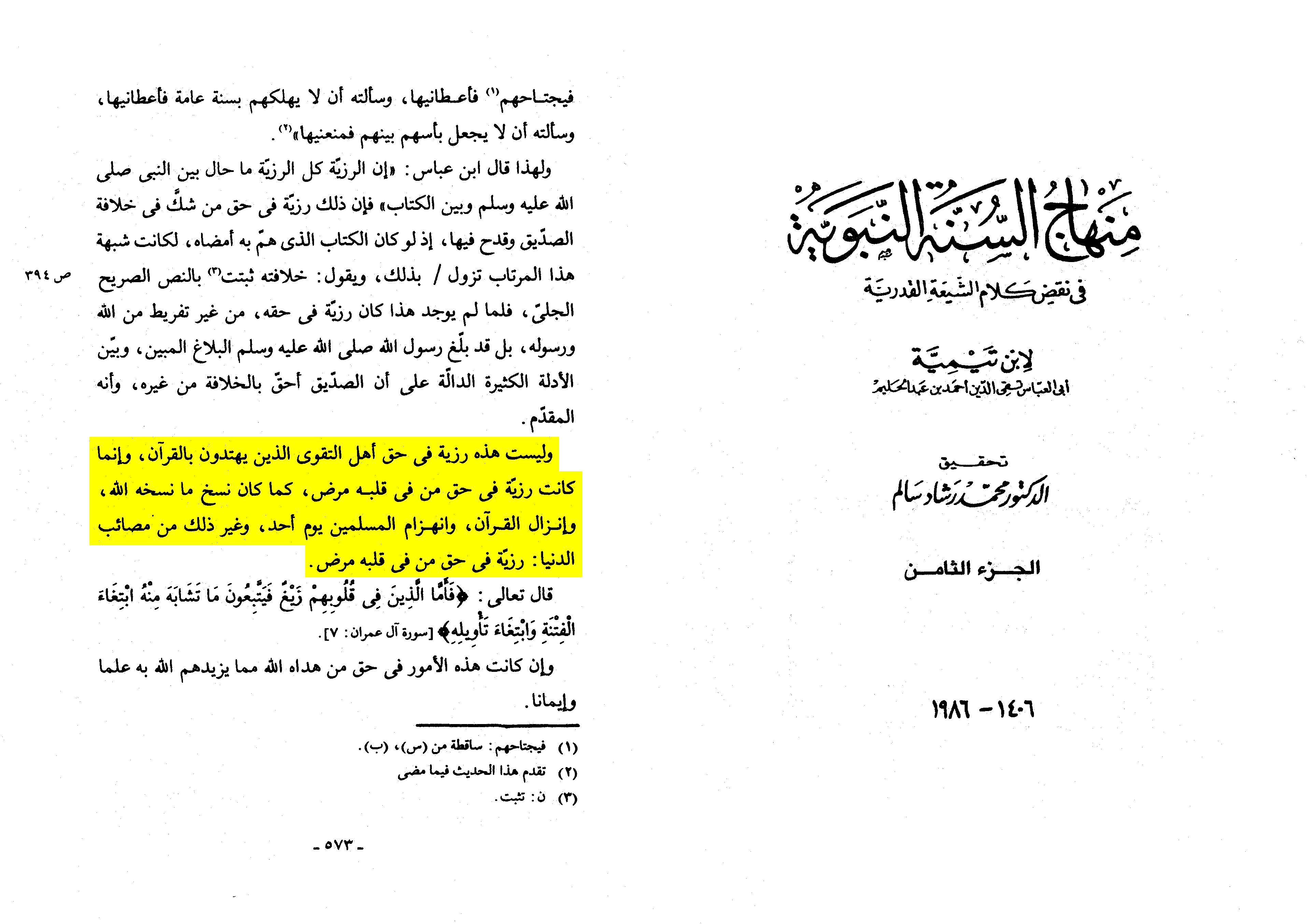 We read the following in Minhaj al-Sunnah, vol 8, pg 573:
