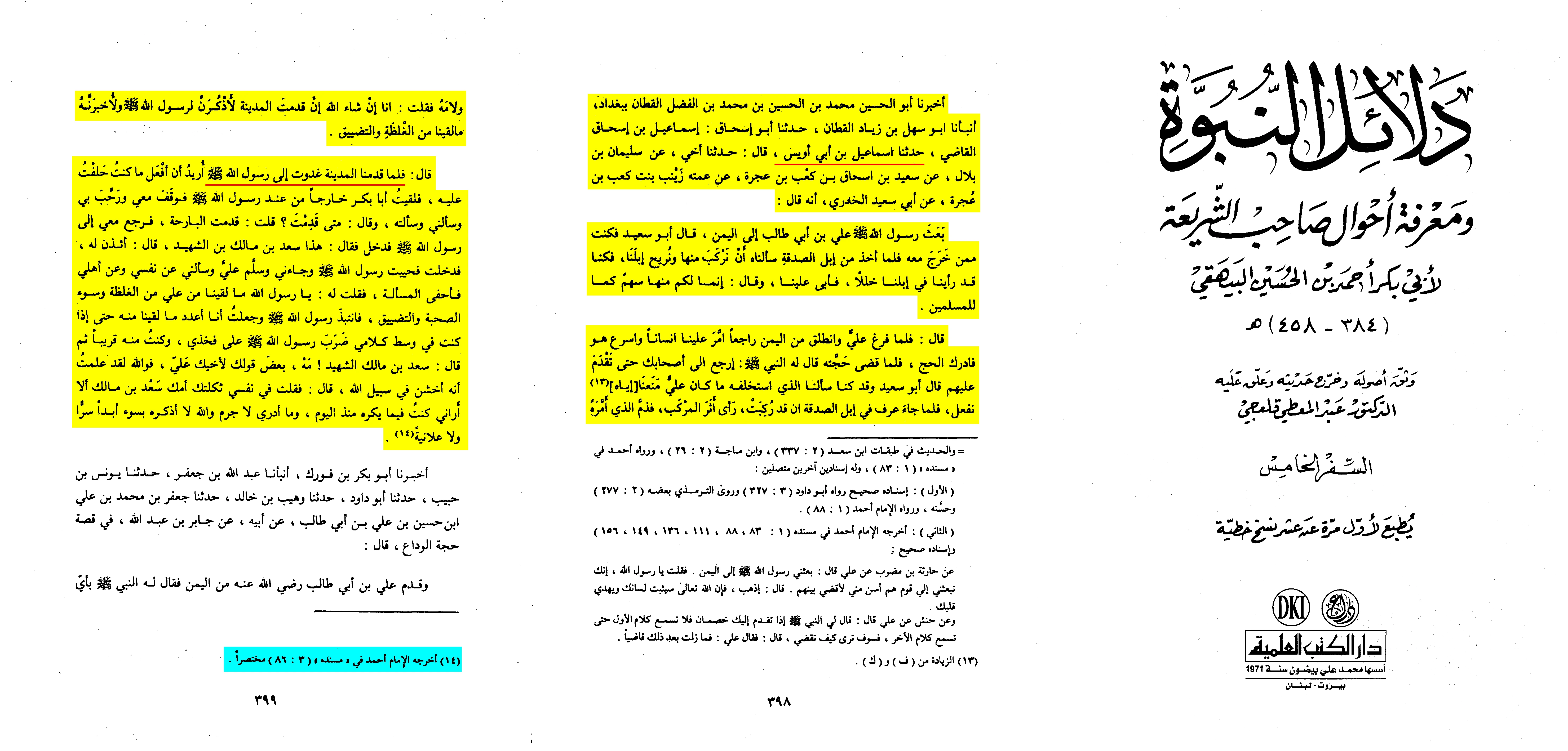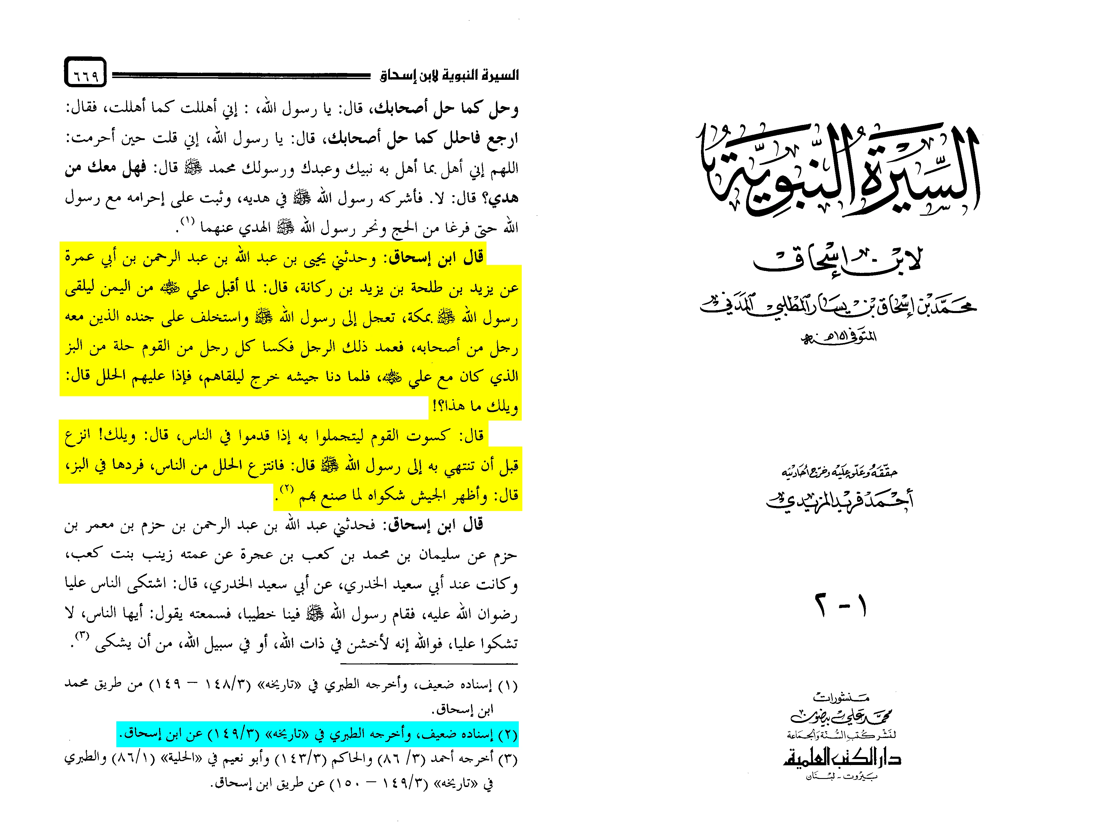 Once again, we see that Ibn Kathir cited al-Bayhaqi as his source for this report, while al-Bayhaqi in turn transmitted it from Muhammad b. Ishaq, who recorded it in al-Sira al-Nabawiyya pg. 669.