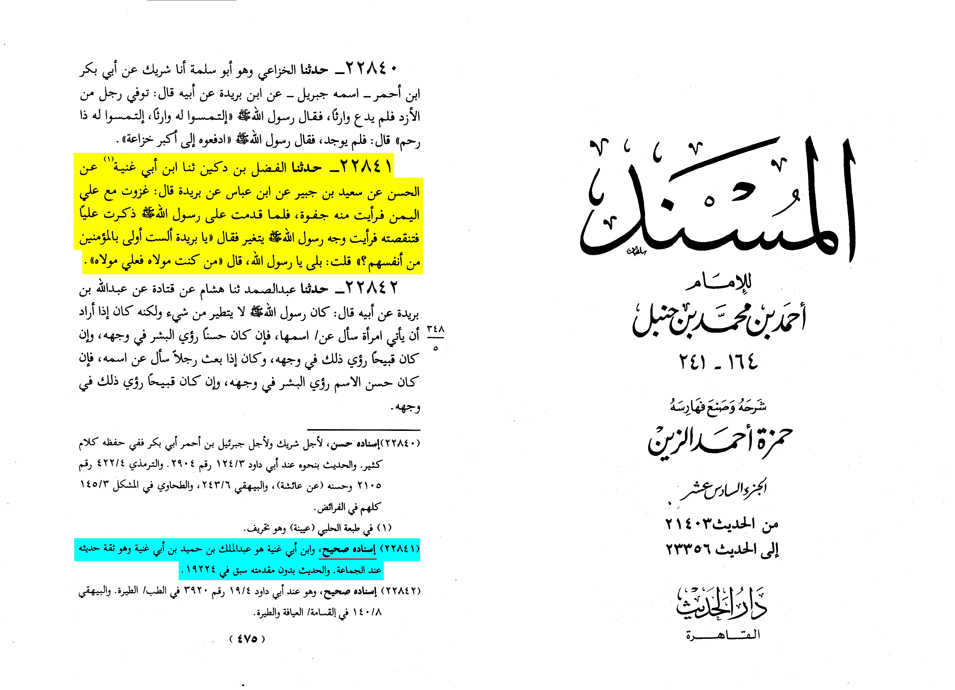 As for the Hadith of Burayda (RA), we read in Musnad Ahmad b. Hanbal Vol 16, pg. 471, Hadith # 22841: