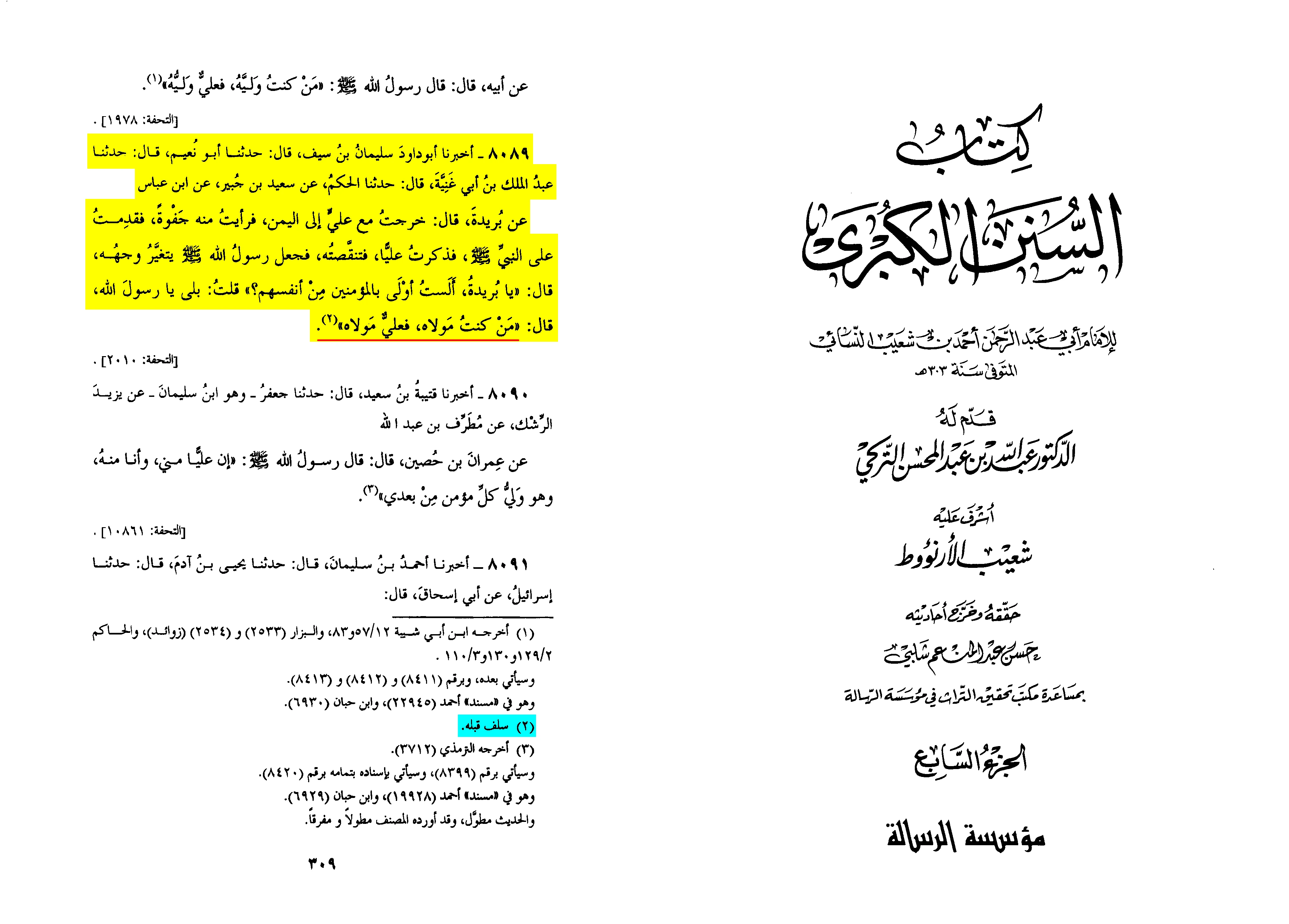 And this is a good chain of transmission according to the criteria of al-Nasa’i, and none of the authors of the six canonical books narrated it.