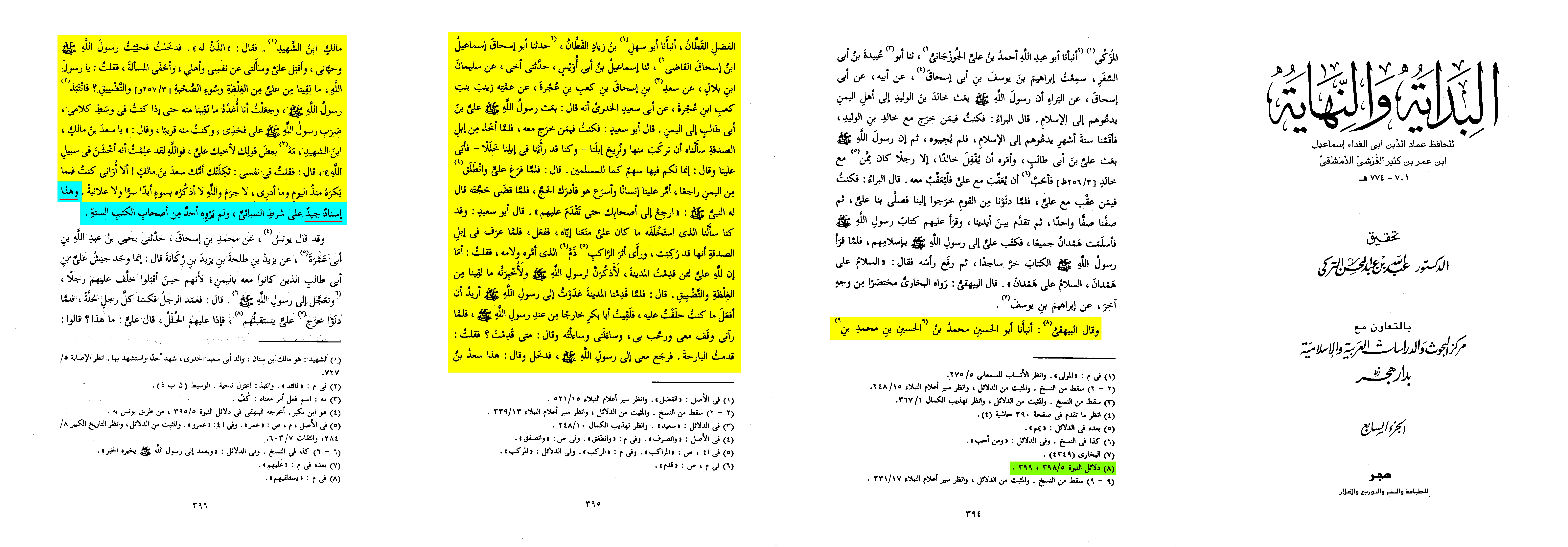 As for the second tradition, Ibn Kathir then quotes it in al-Bidayah wa al-Nihaya Vol. 7, pg. 396 - 397: