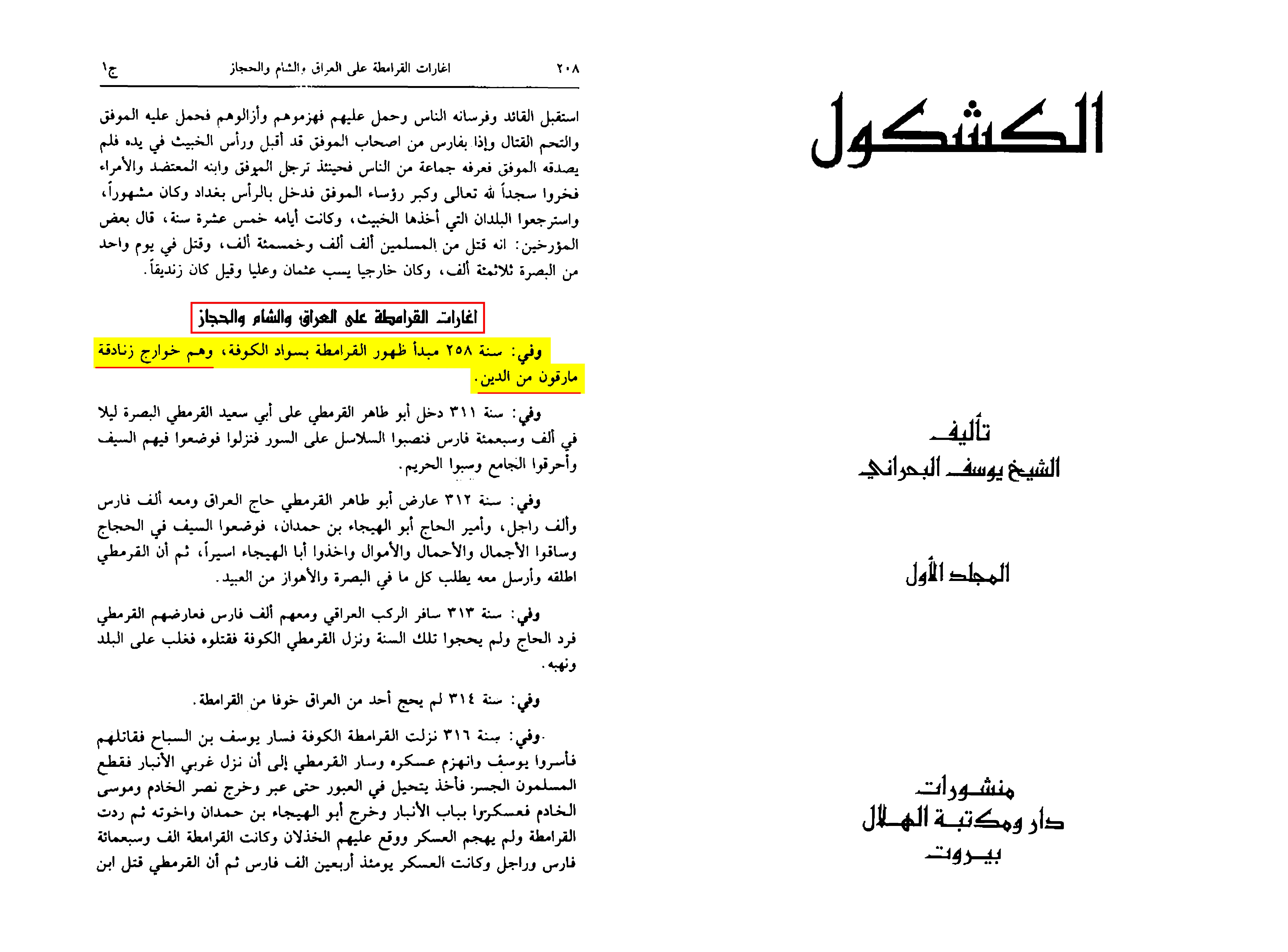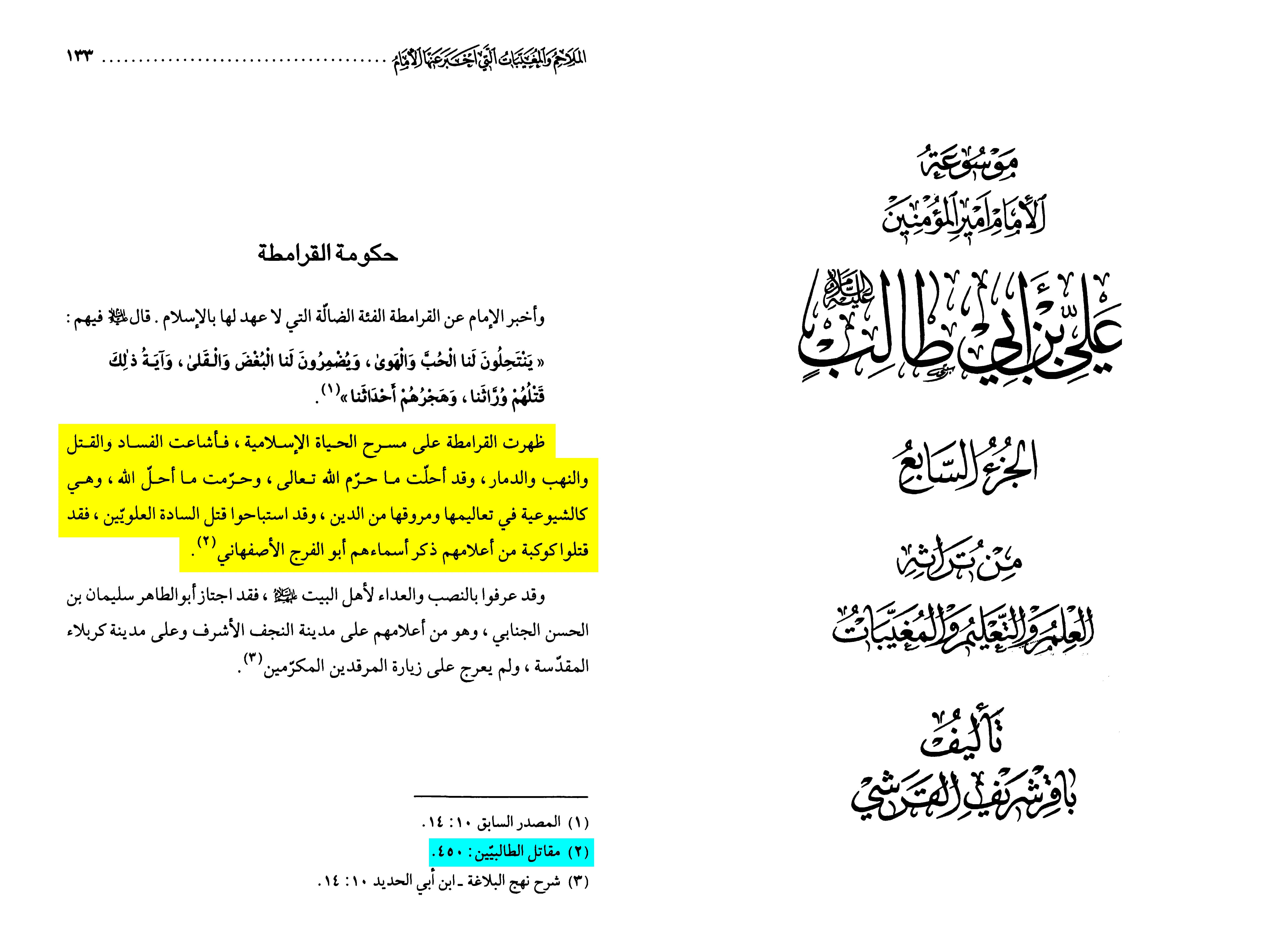 The Attacks of the Qarāmiṭa in Iraq, Syria and Hijāz: “In the year 258 AH, the initial emergence of the Qarāmiṭa in Sawād al-Kūfa, and they are Khawārij, heretics and apostates from the Religion.”