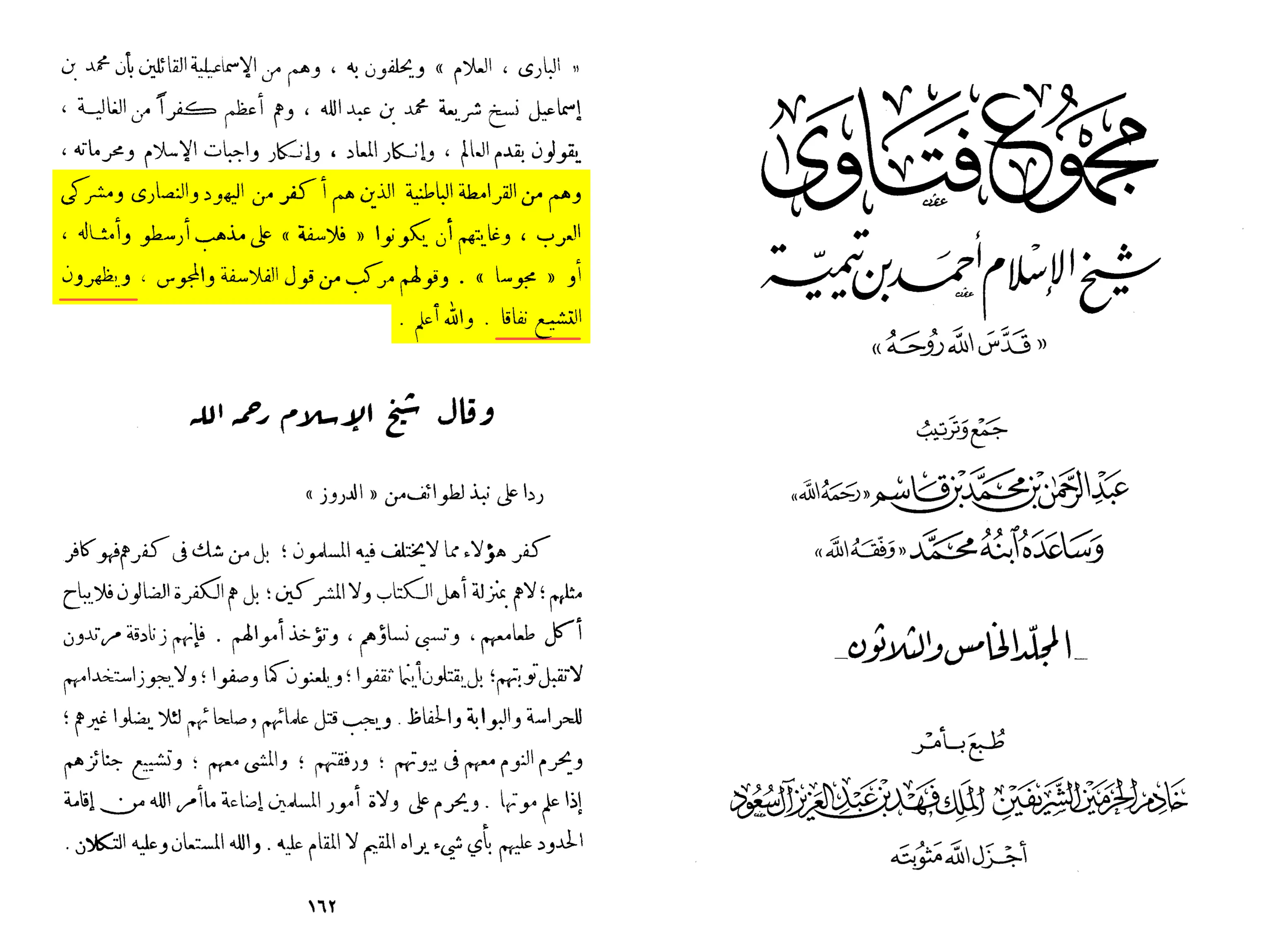 “And they are the Qarāmiṭa Baṭiniyyah, who are worse than the Jews, Christians and than the Arab Idolaters, and their aspiration is to become “Philosophers” in the Aristotelian school and similar [doctrines], or then [they want to become] Zoroastrians. And their speech is a combination of that of the Philosophers and of the Zoroastrians, and they falsely show [belief in] Tashayyuʿ. And Allah knows best.”