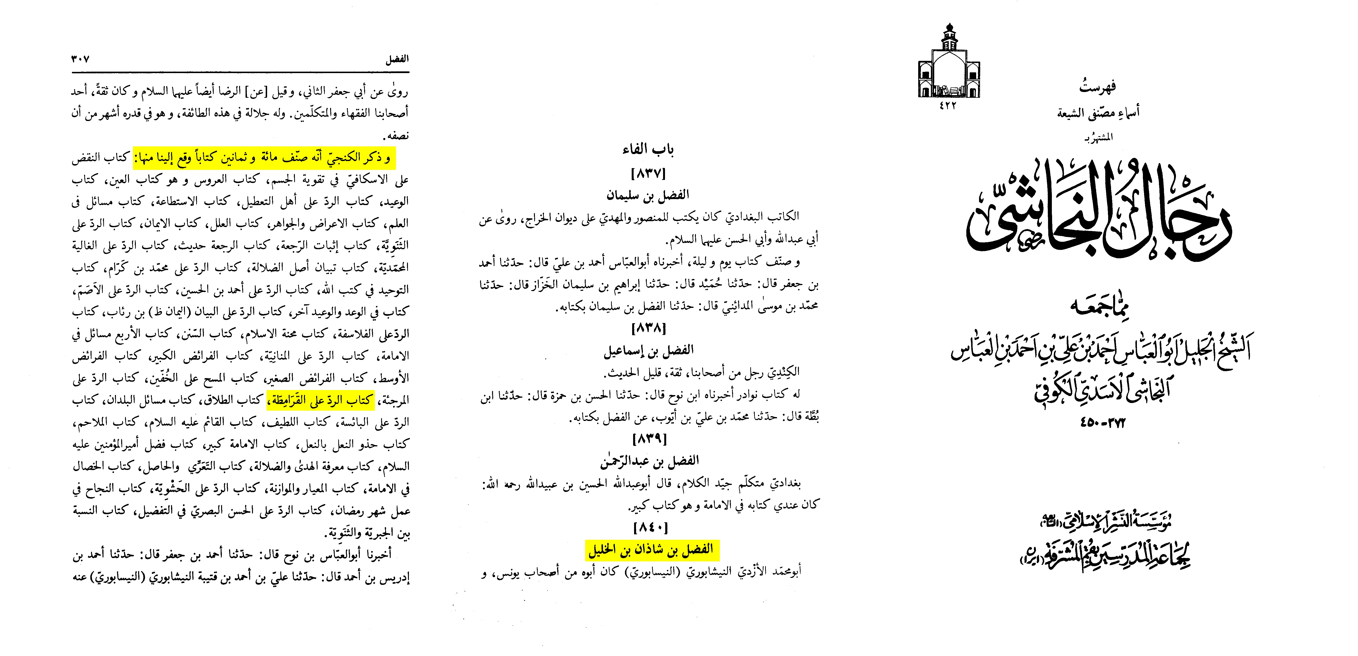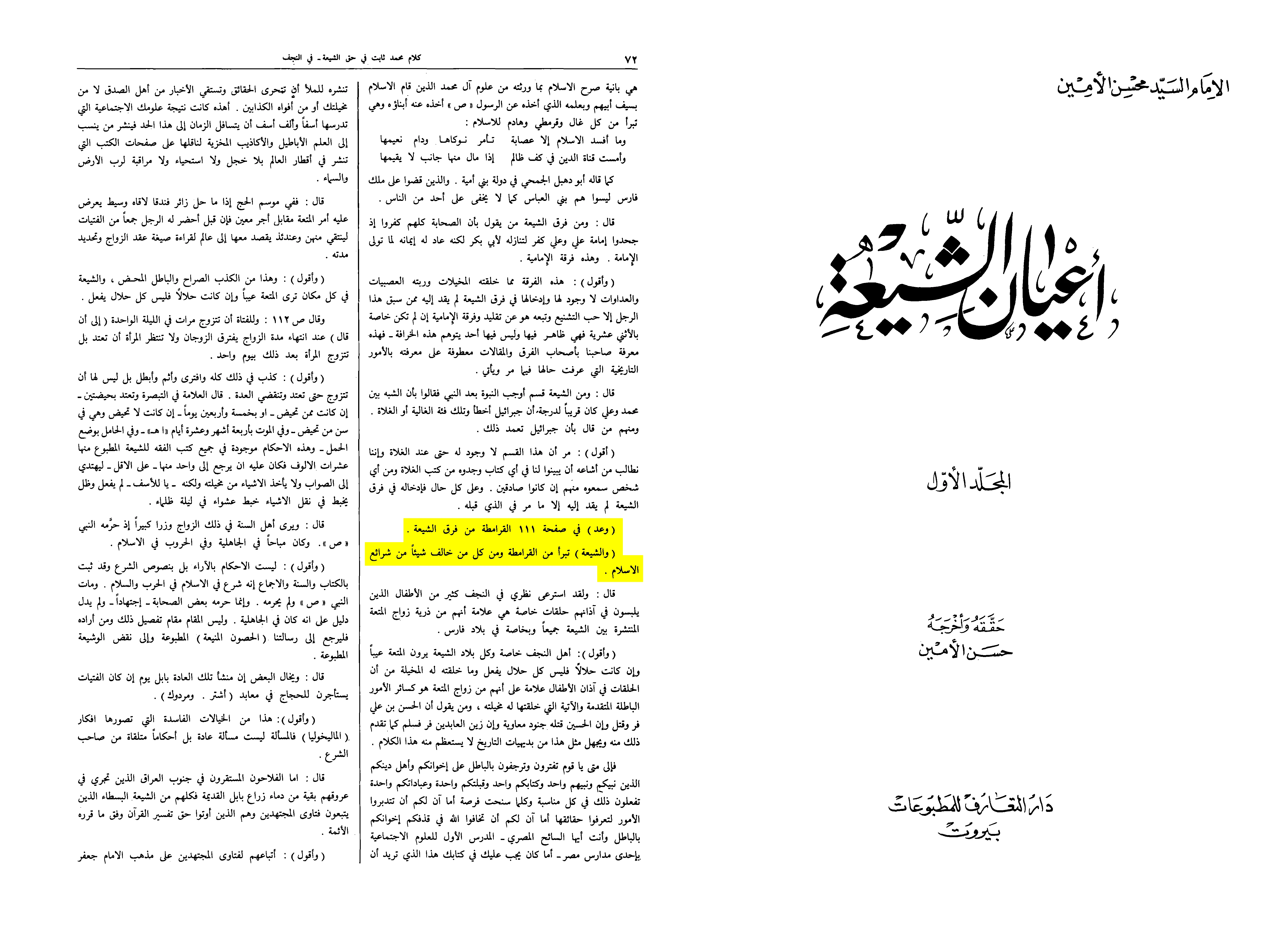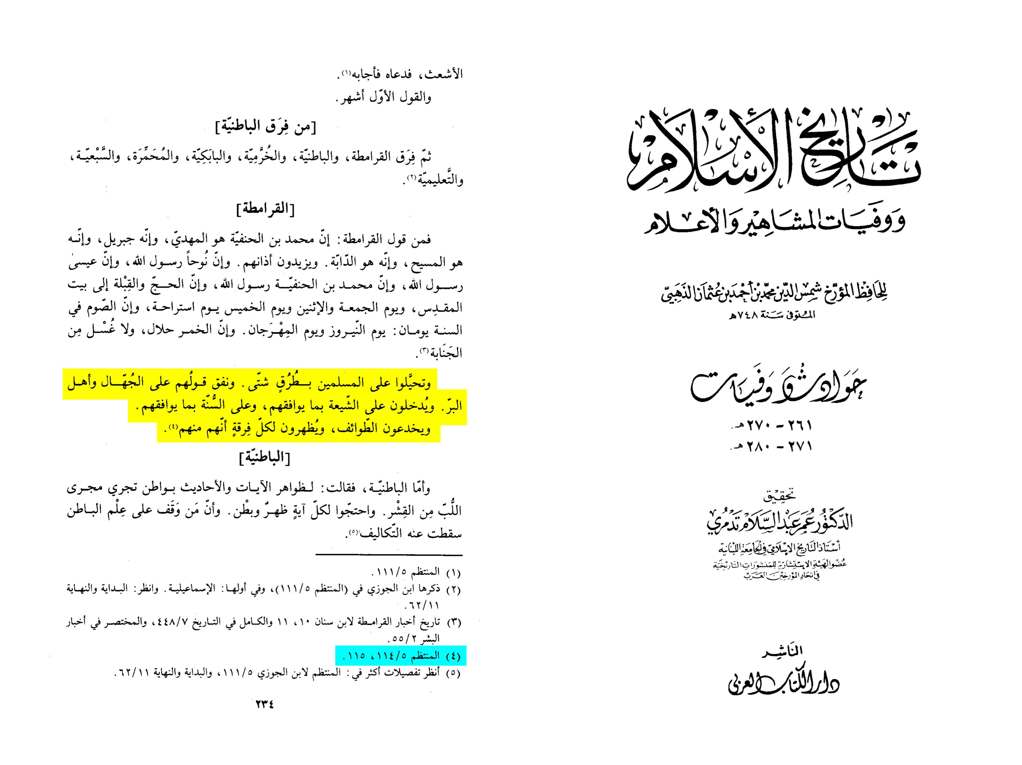 (And he - an opponent of the Shia - counted on) p. 111 the Qaramita among the Shi’a sects, (and the Shi’a) absolve themselves from the Qaramita and from anyone who violates any of the laws of Islam.