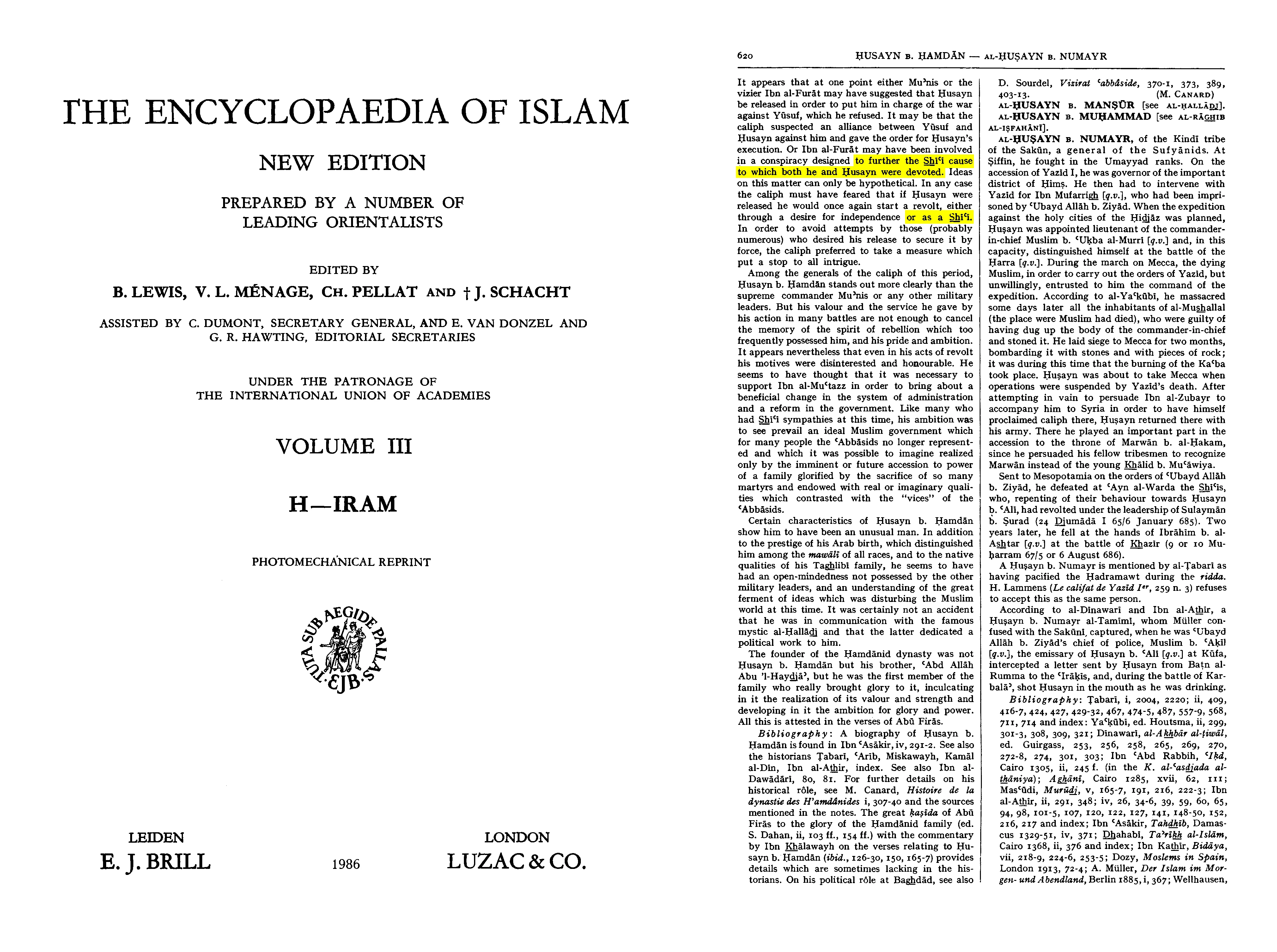 The Encyclopedia of Islam, Vol 3, H - Iram, pg. 620 mentions the following: