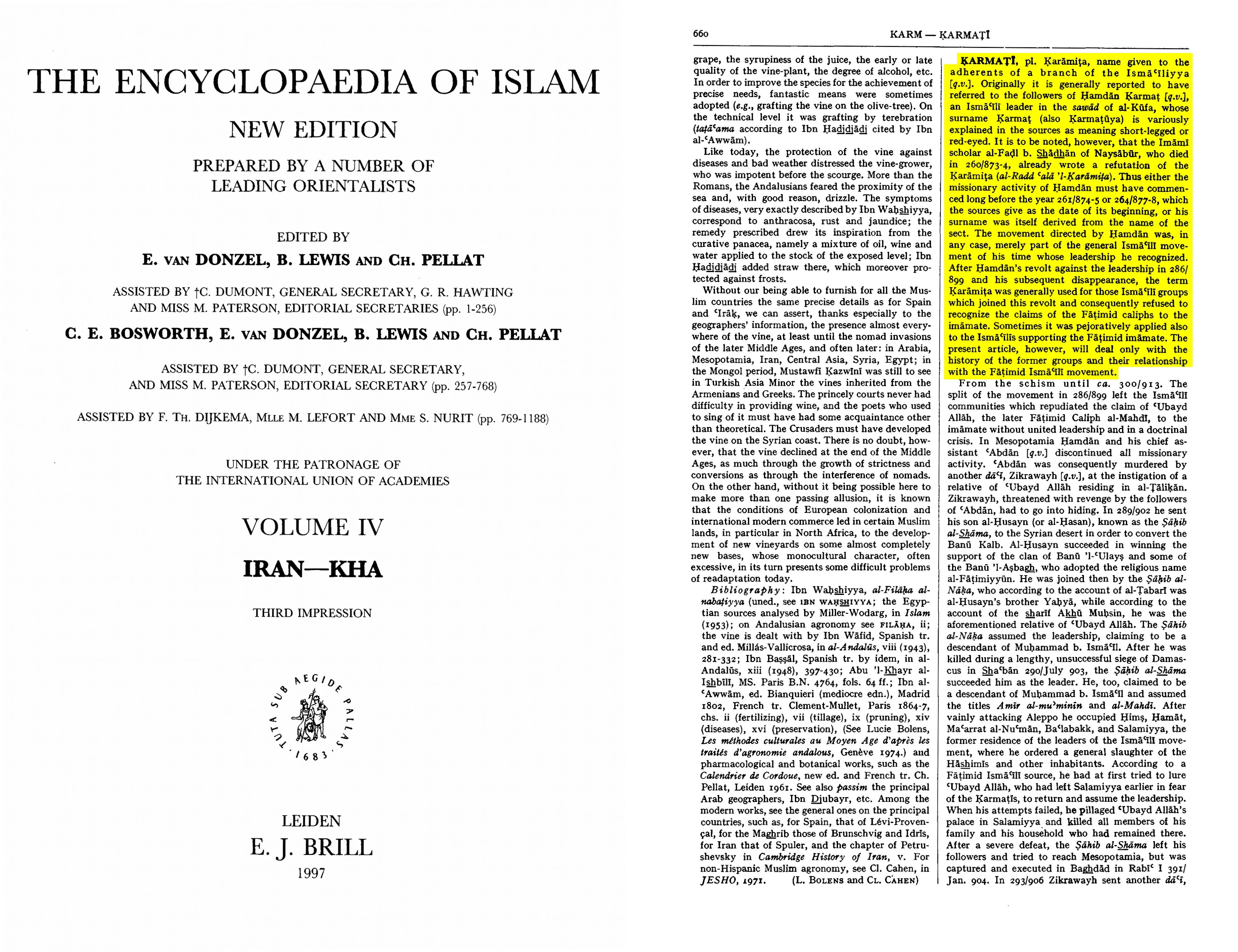 KARMATI, pl. Karāmita, name given to the adherents of a branch of the Isma'iliyah [9.v.). Originally it is generally reported to have referred to the followers of Hamdan Karmat, an Isma'ili leader in the sawad of al-Kufa, whose surname Karmat (also Karmațüya) is variously explained in the sources as meaning short-legged or red-eyed. It is to be noted, however, that the Imāmi scholar al-Fadl b. Shadhán of Naysābūr, who died in 260/873-4, already wrote a refutation of the Karamita (al-Radd 'ala 'l-Karāmita). Thus either the missionary activity of Hamdān must have commenced long before the year 261/874-5 or 264/877-8, which the sources give as the date of its beginning, or his surname was itself derived from the name of the sect. The movement directed by Hamdan was, in any case, merely part of the general Ismaili movement of his time whose leadership he recognized. After Hamdān's revolt against the leadership in 286/899 and his subsequent disappearance, the term Ķarāmița was generally used for those Ismāʻīlī groups which joined this revolt and consequently refused to recognize the claims of the Fățimid caliphs to the imámate. Sometimes it was pejoratively applied also to the Ismailis supporting the Fățimid imämate. The present article, however, will deal only with the history of the former groups and their relationship with the Fățimid Ismā'ilī movement.
