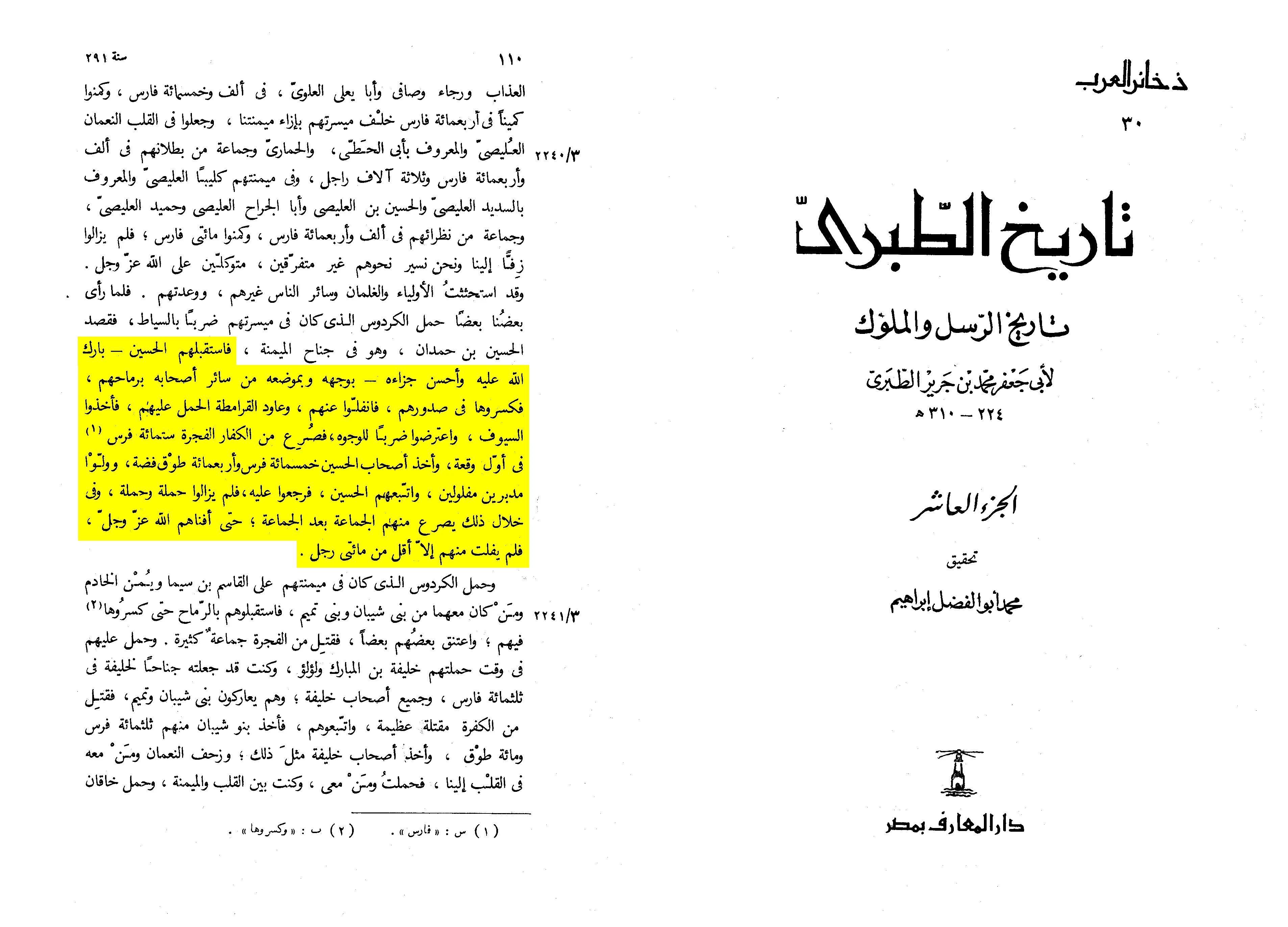 Nonetheless, al-Tabari's accounts of this help us understand this a little more as he recorded in his History of al-Tabari, vol. 38, pg. 137 - 8: [Arabic]