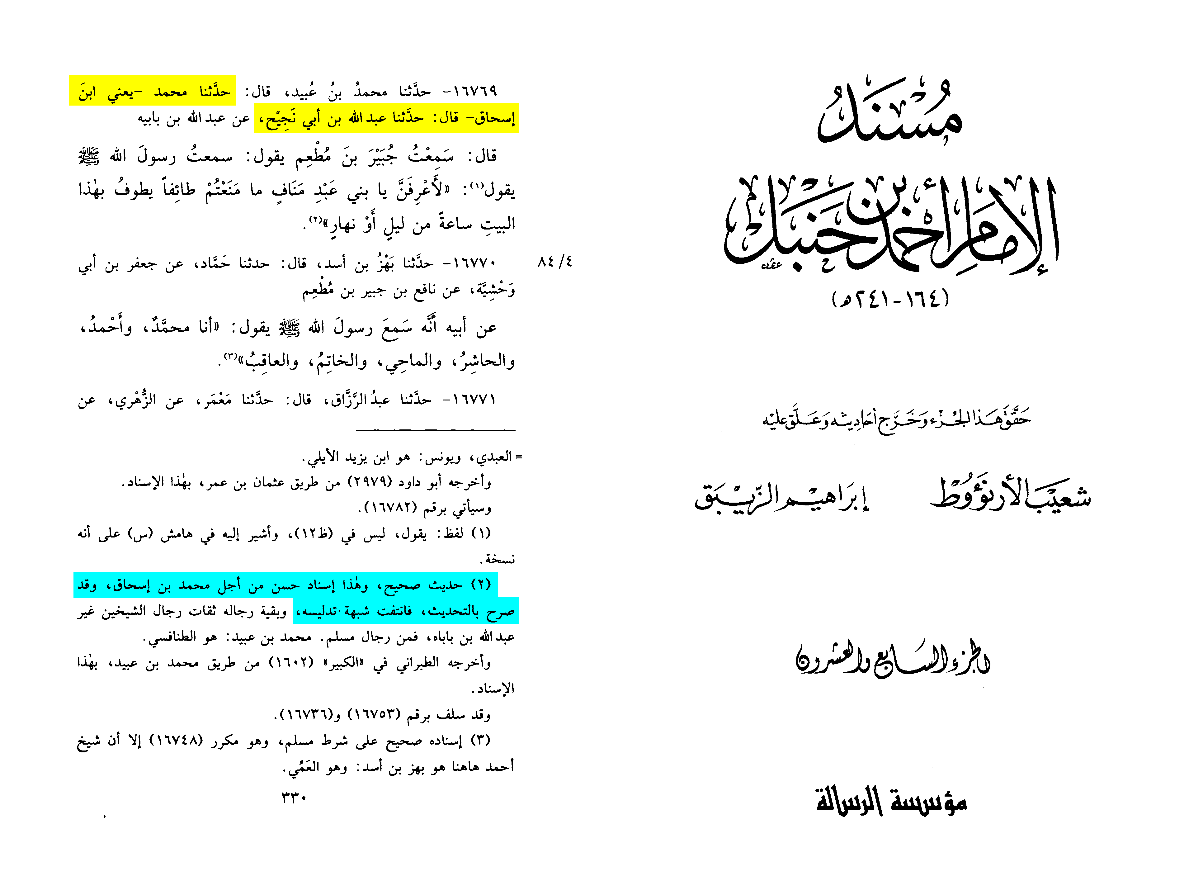 …Abu Zur‘ah ‘Abd al-Rahman b. ‘Amr narrated to us; Ahmad b. Khalid al-Wahbi Abu Sa‘id narrated to us; from Muhammad b. Ishaq from ‘Abd Allah b. Abi Najih from his father, who said: