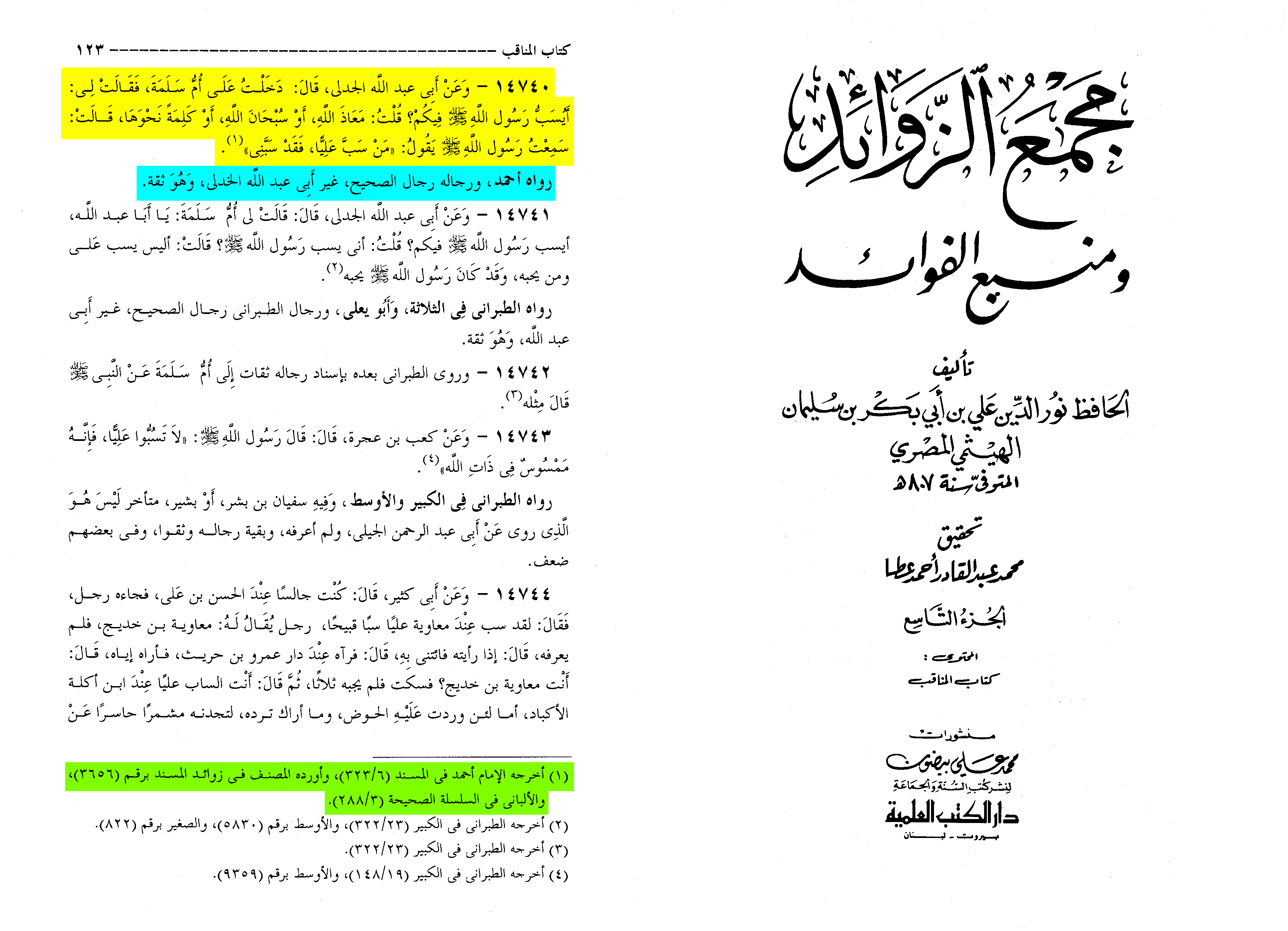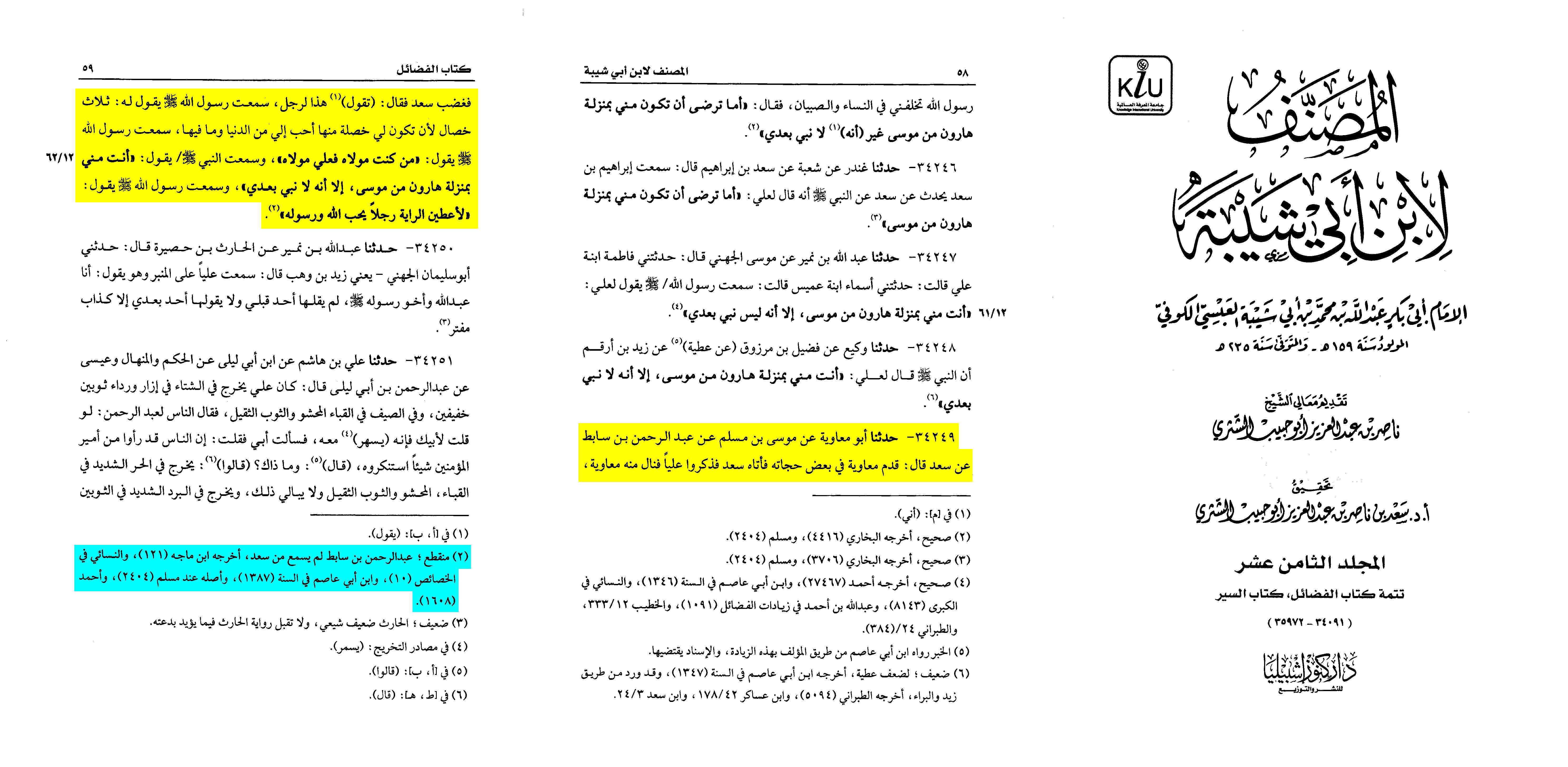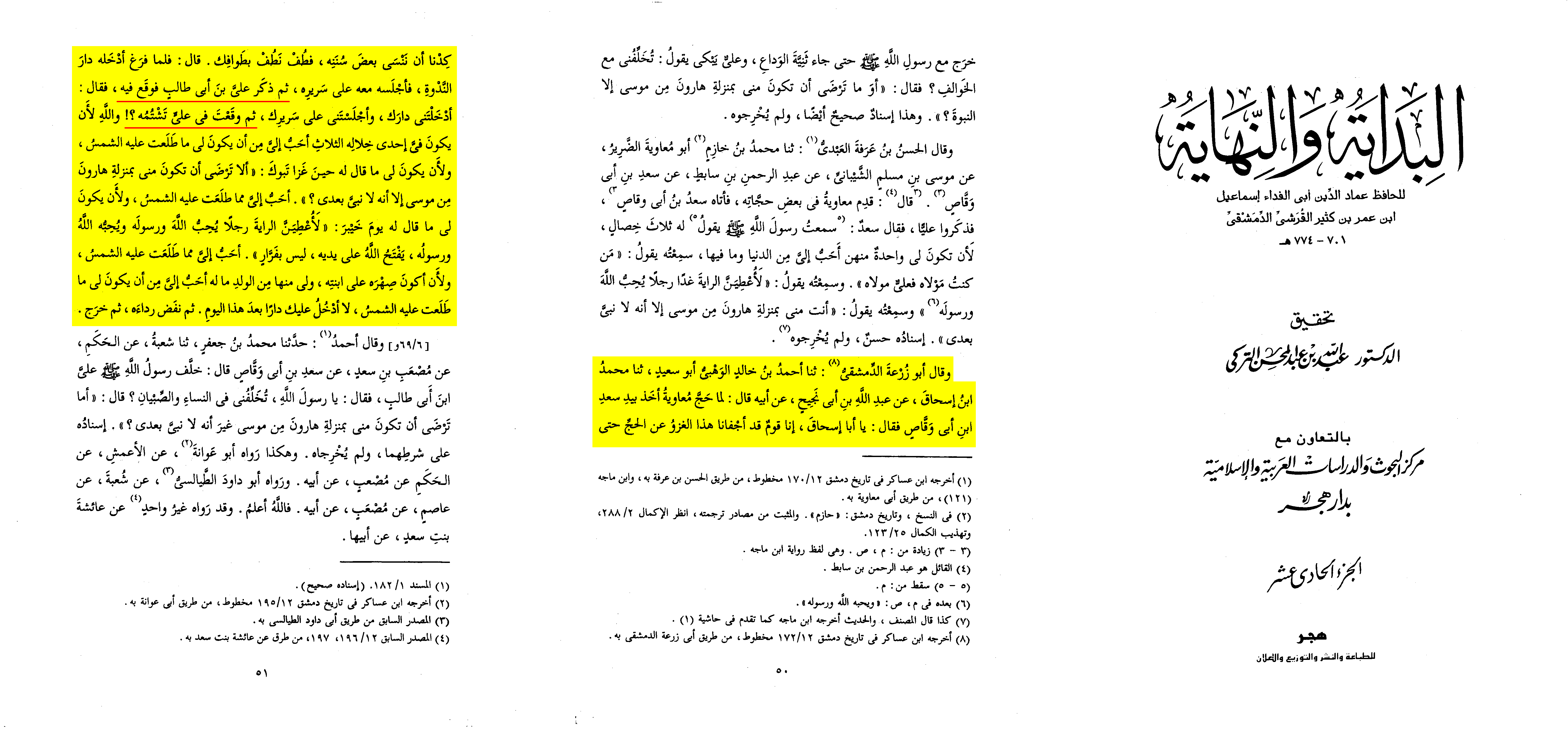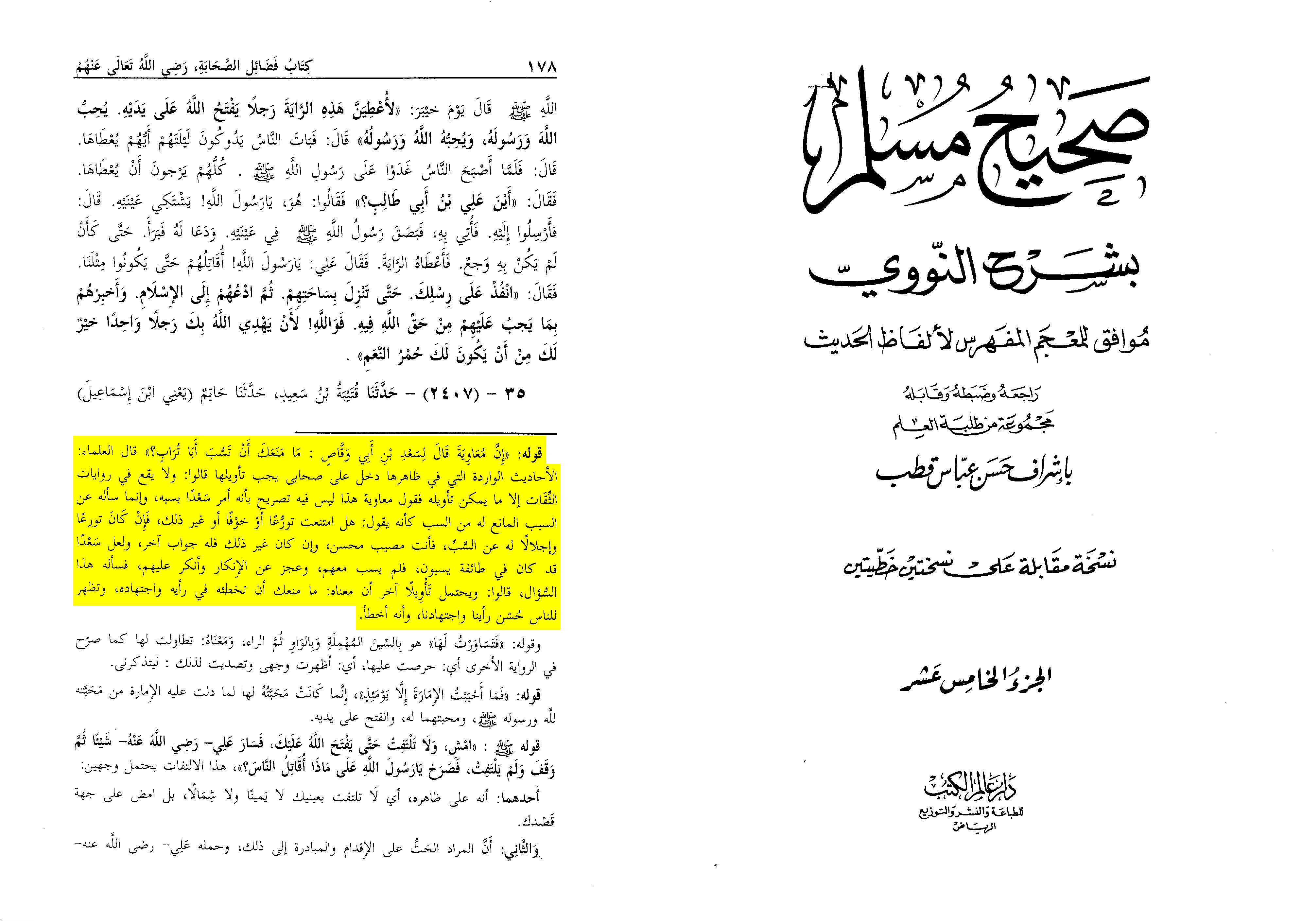 “As for the hadith of Sa‘d, when Mu‘awiya ordered him to insult [‘Ali] and he refused …”