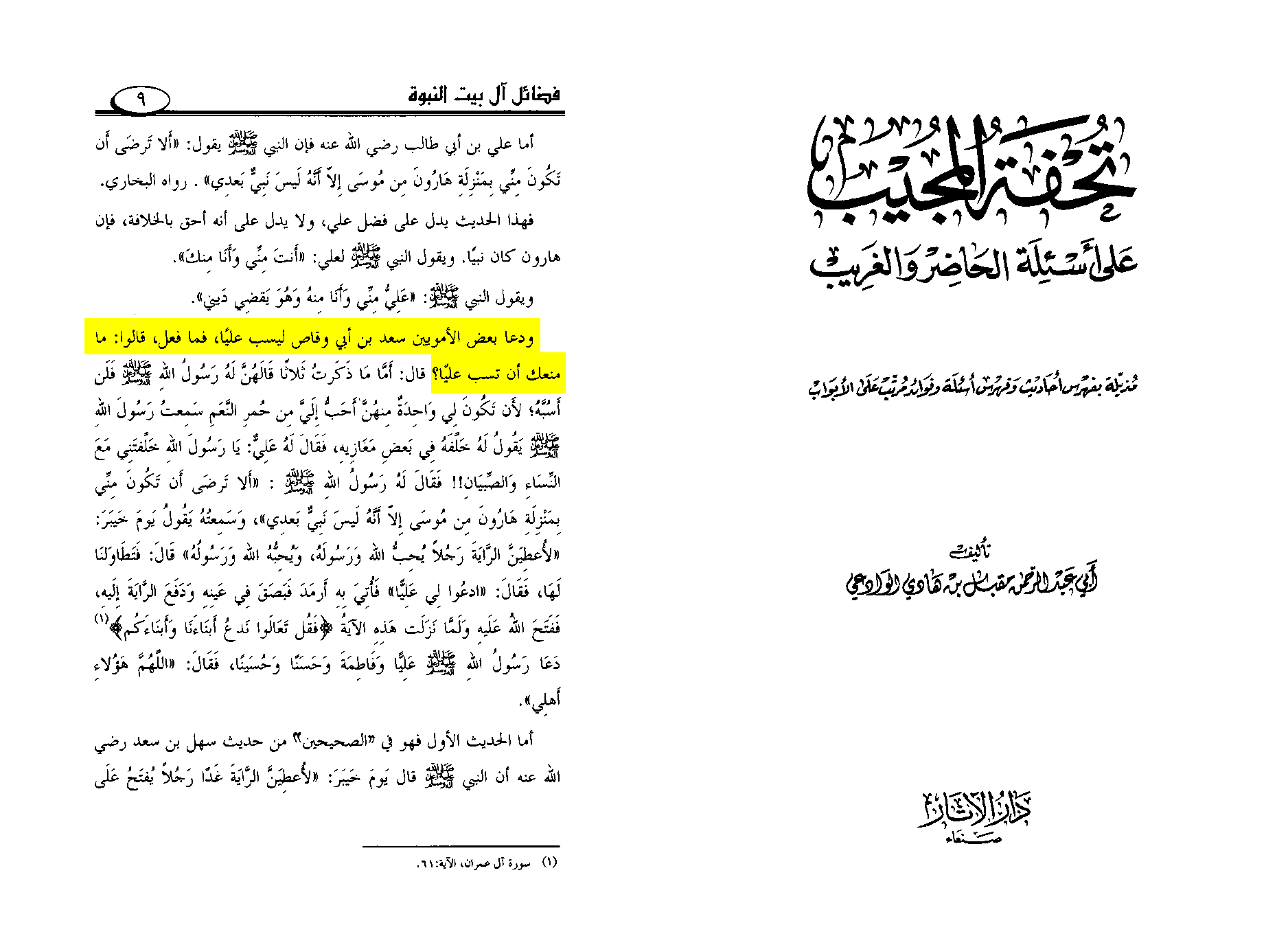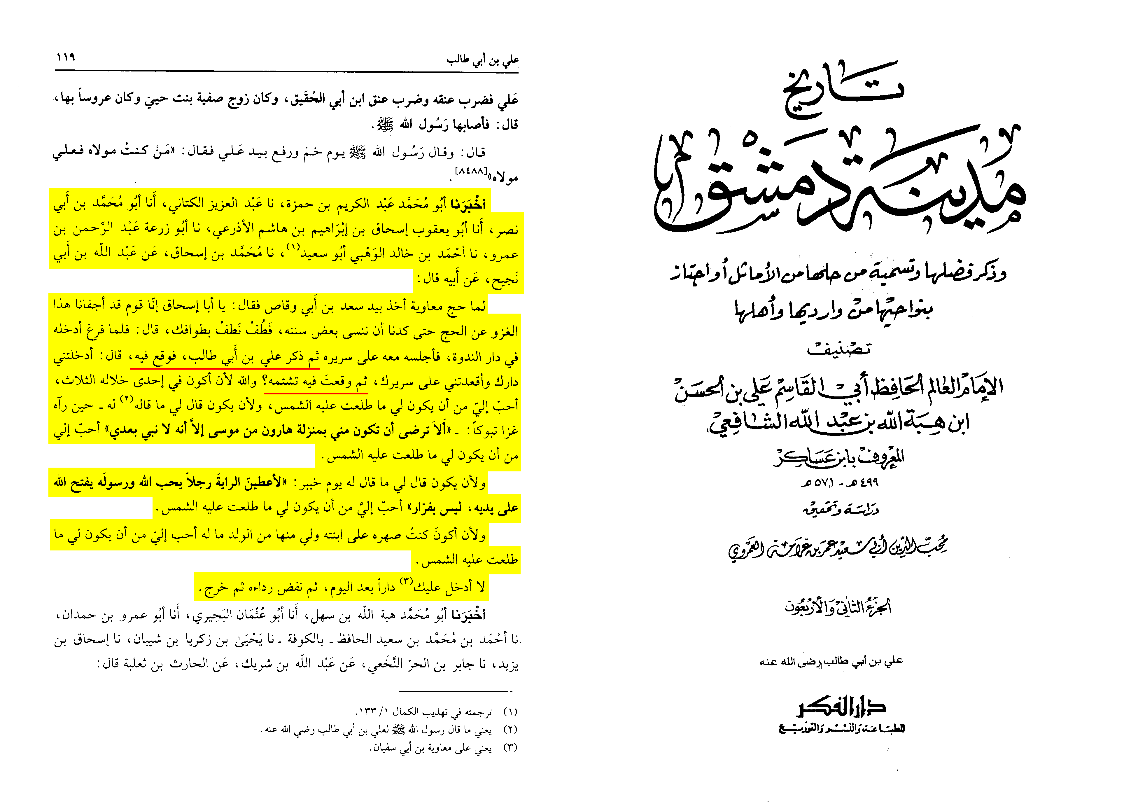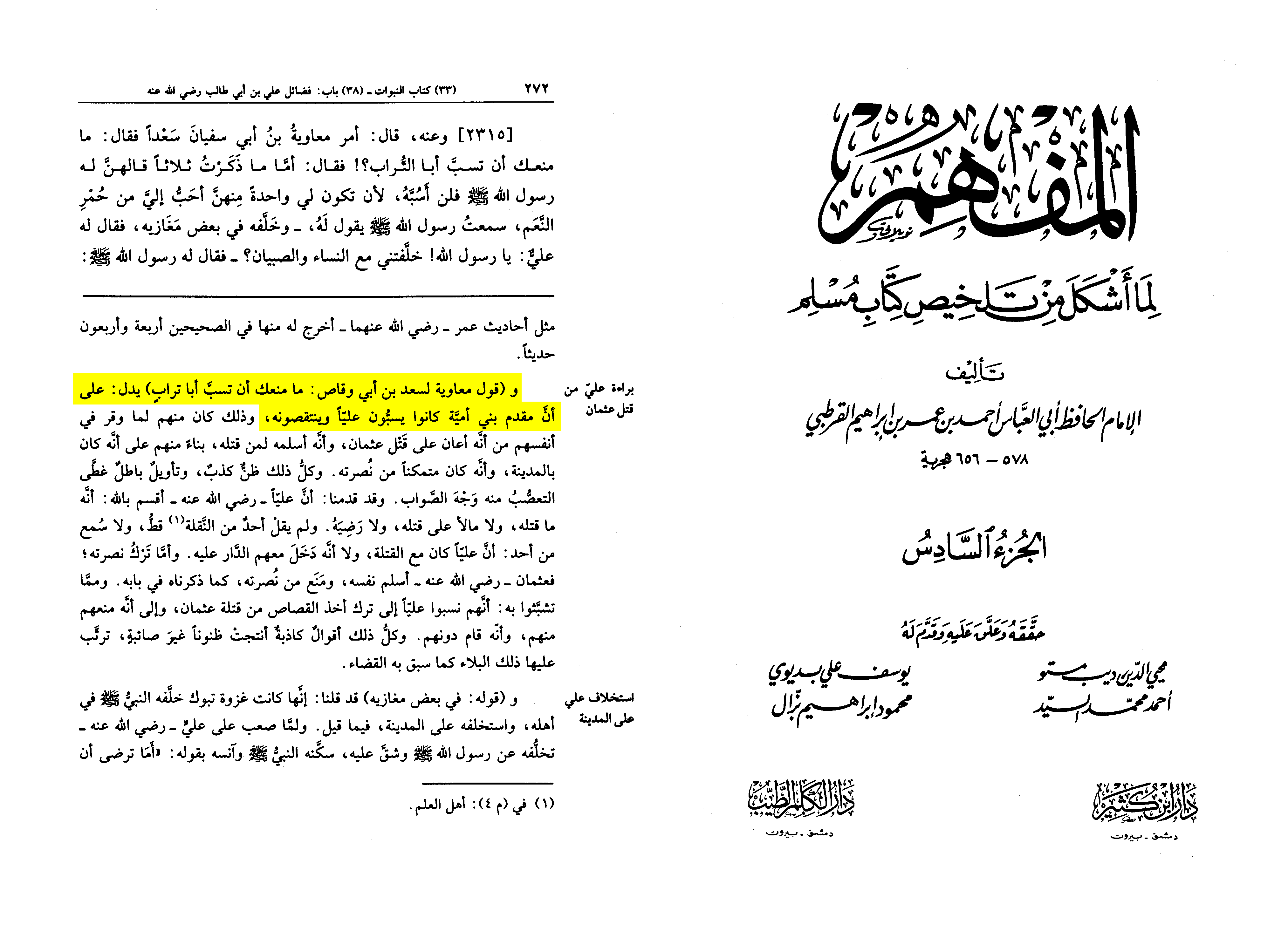 Mu‘awiya reviled ‘Ali, spoke against him, and insulted him; indeed, he even ordered Sa‘d to insult him, as is reported in Muslim and al-Tirmidhi.