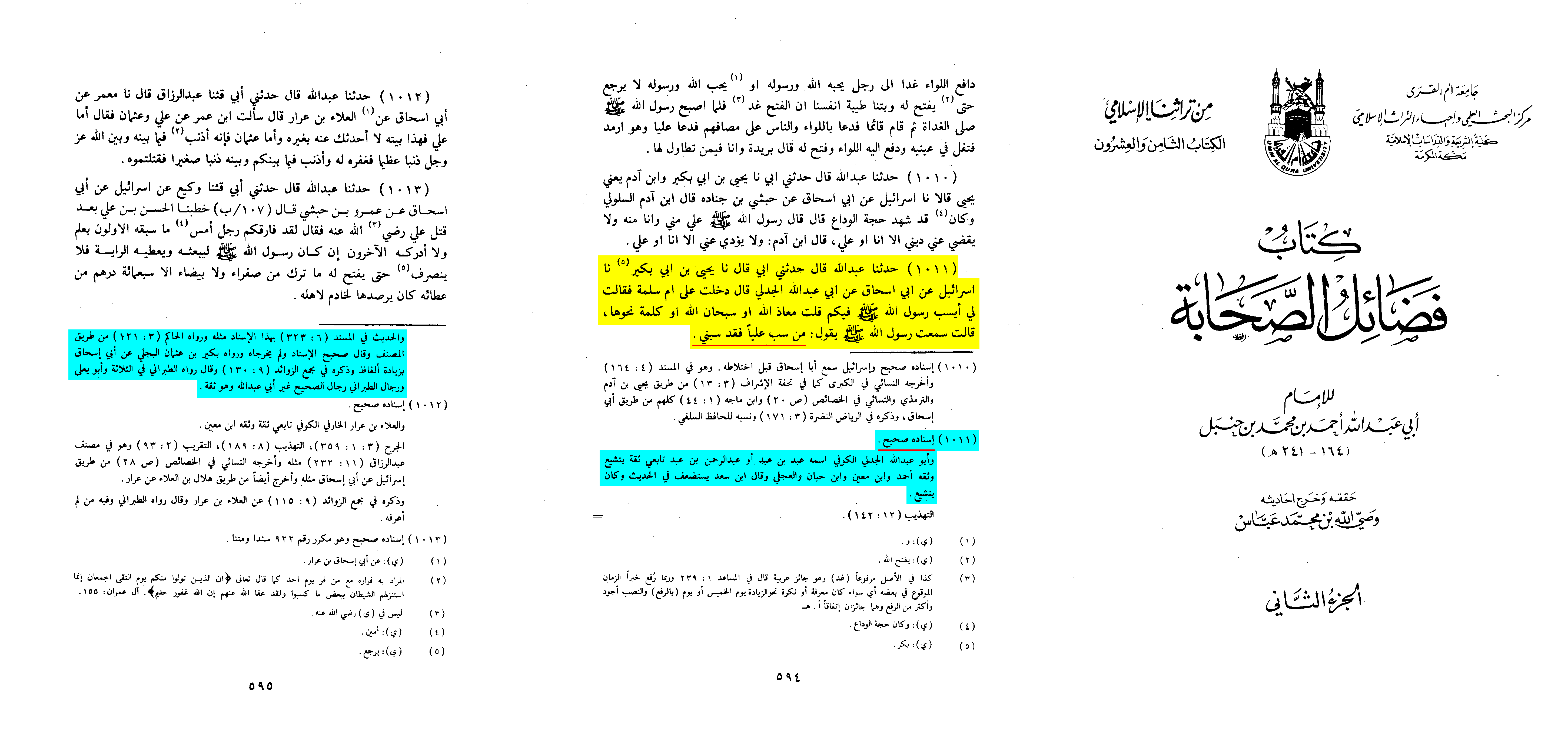 The editor of the book, Dr. Husayn Saleem, authenticated all the narrators of the report; however, he cast doubt on whether al-Suddī actually heard this narration from al-Jadali.