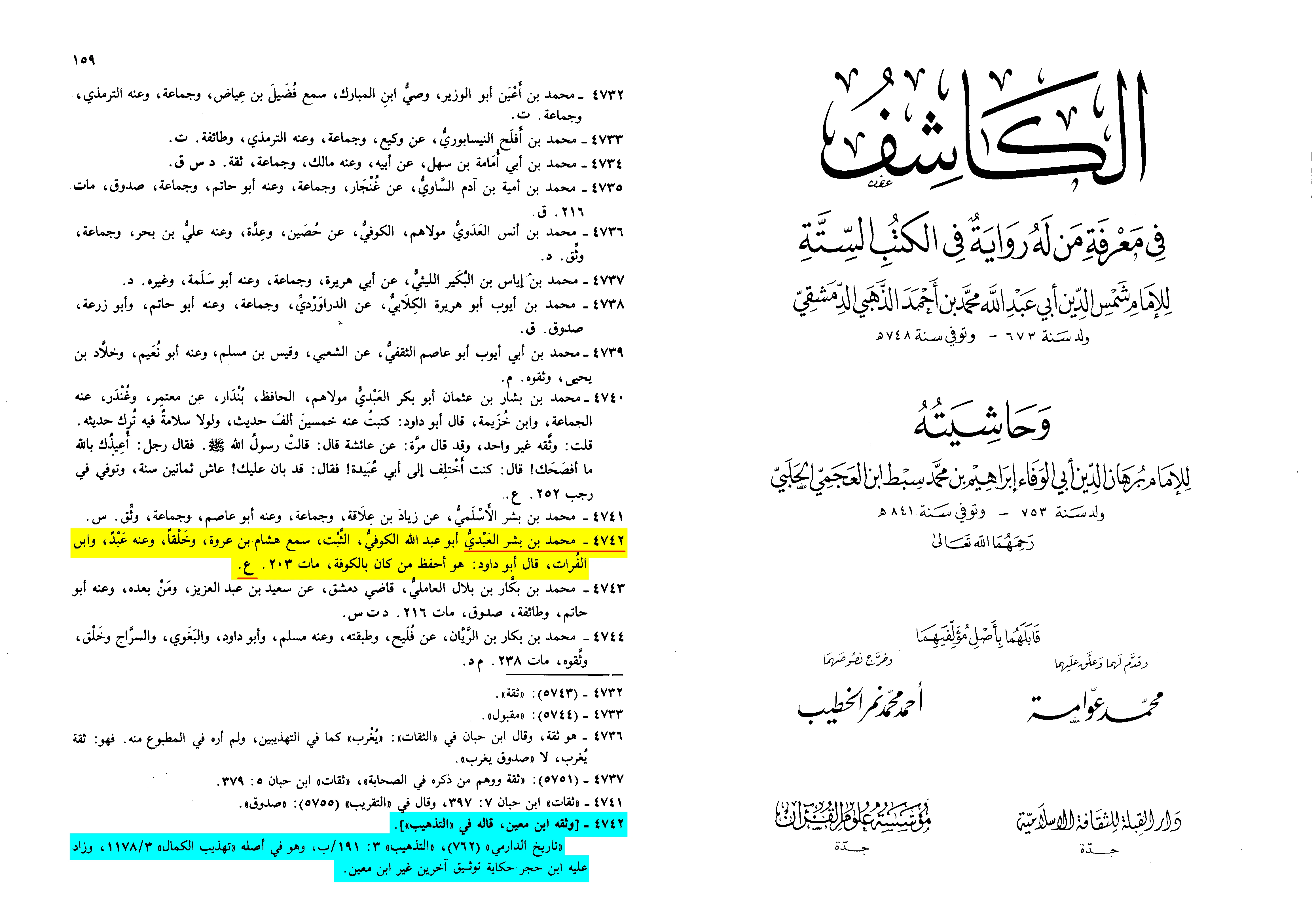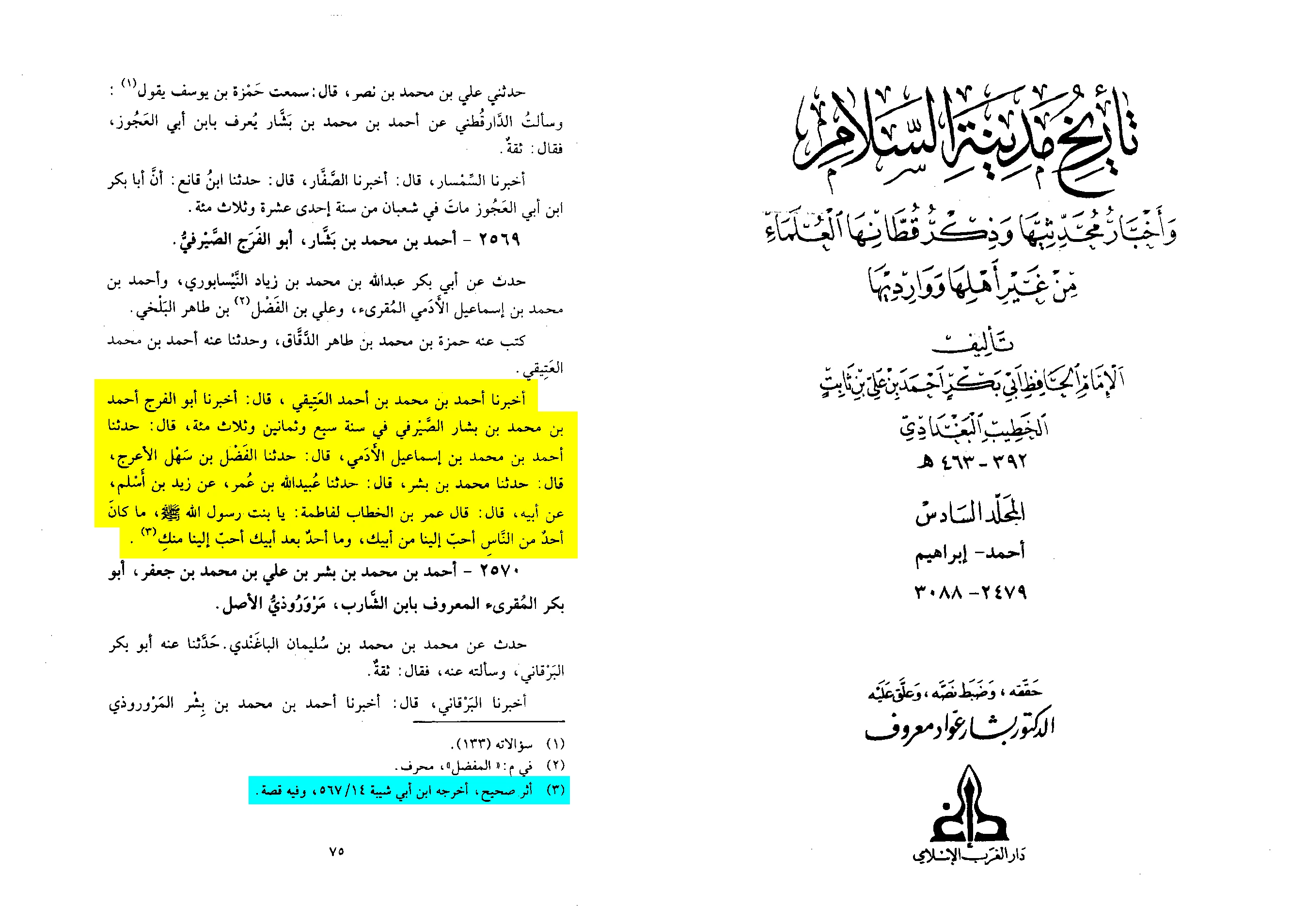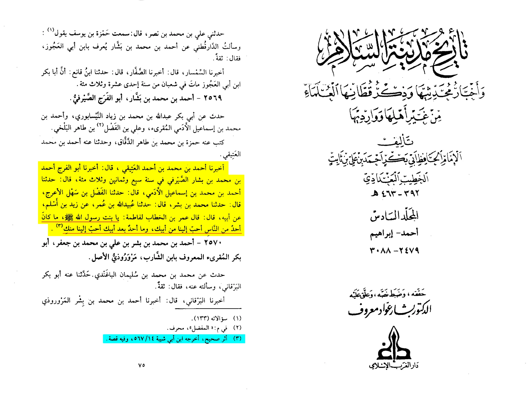 Dr. Bashar ‘Awad Ma’ruf: Muhaqiq of Tarikh Medinat as-Salam, Vol. 6, pg. 75.