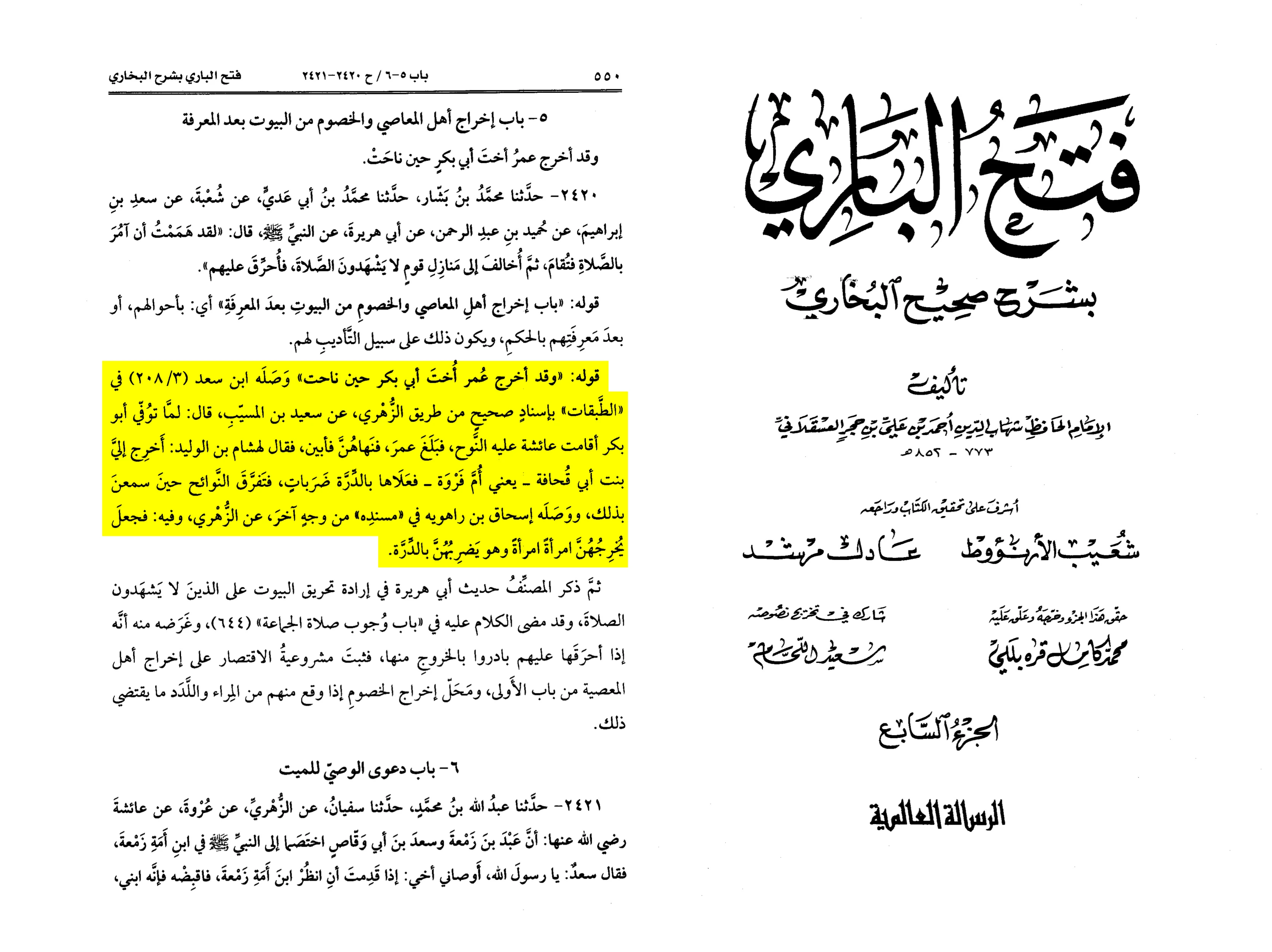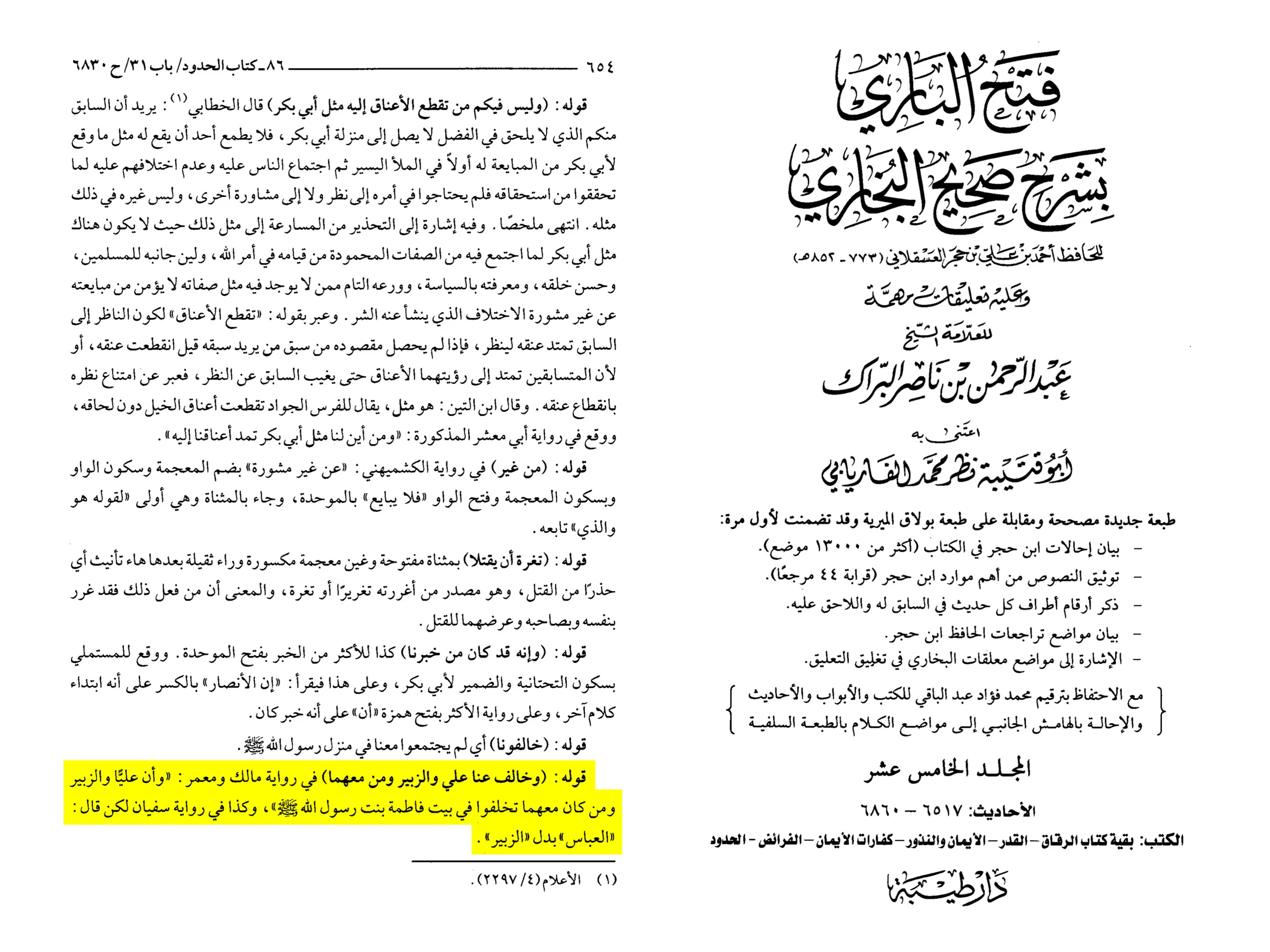 As for the saying: “And Ali (as), al-Zubayr and those who were with them refrained from us” in the narration of Malik and Ma'mar that Ali (as) and al-Zubayr and those who were with them gathered at the house of Fatima (sa), and such-and-such in the report of Sufyan said: ‘Al-Abbas’ was switched for ‘Al-Zubayr’.