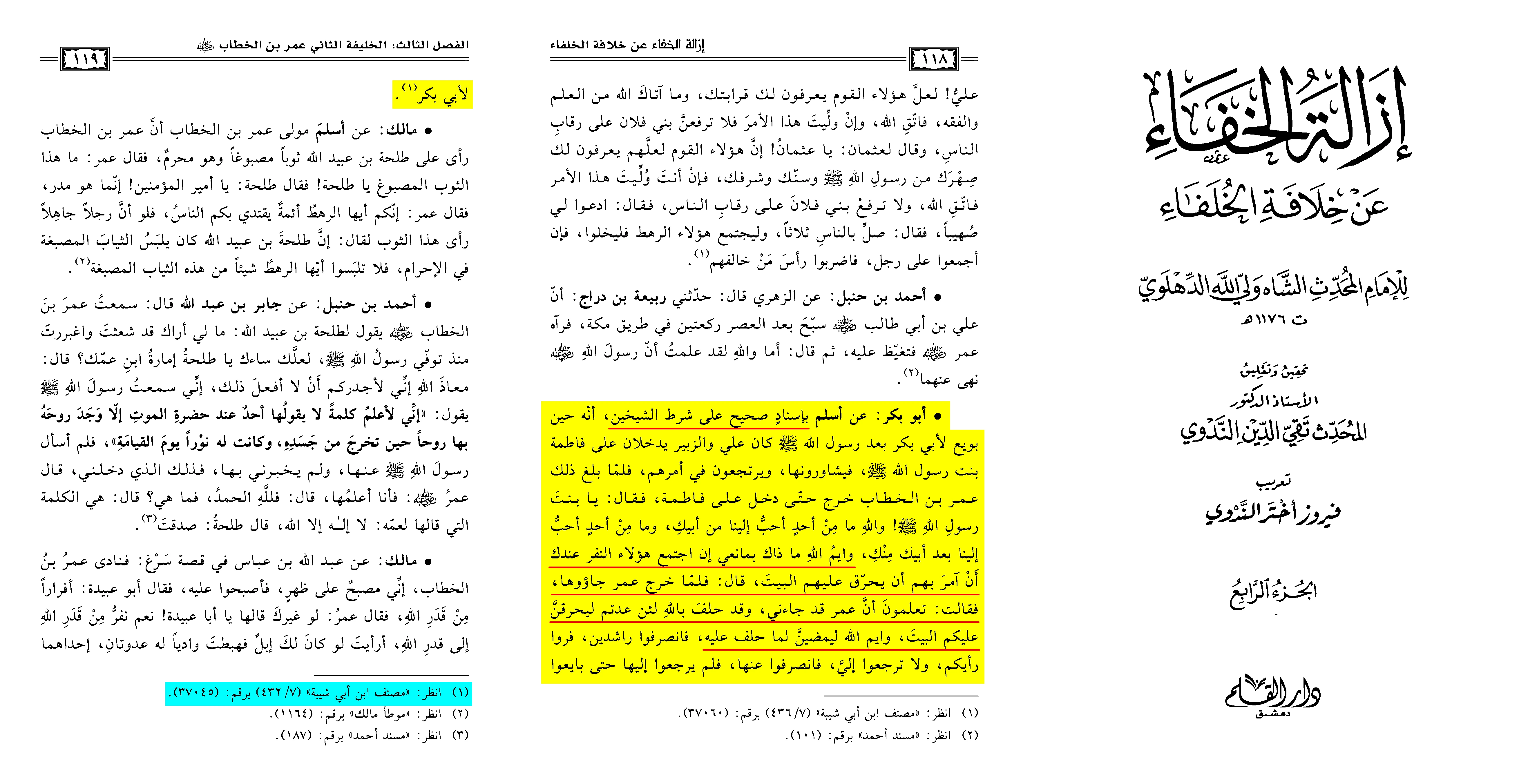 Shah Waliyullah Dehlavi in Izalat al-Khafa, Vol. 4, pg. 118 - 119.