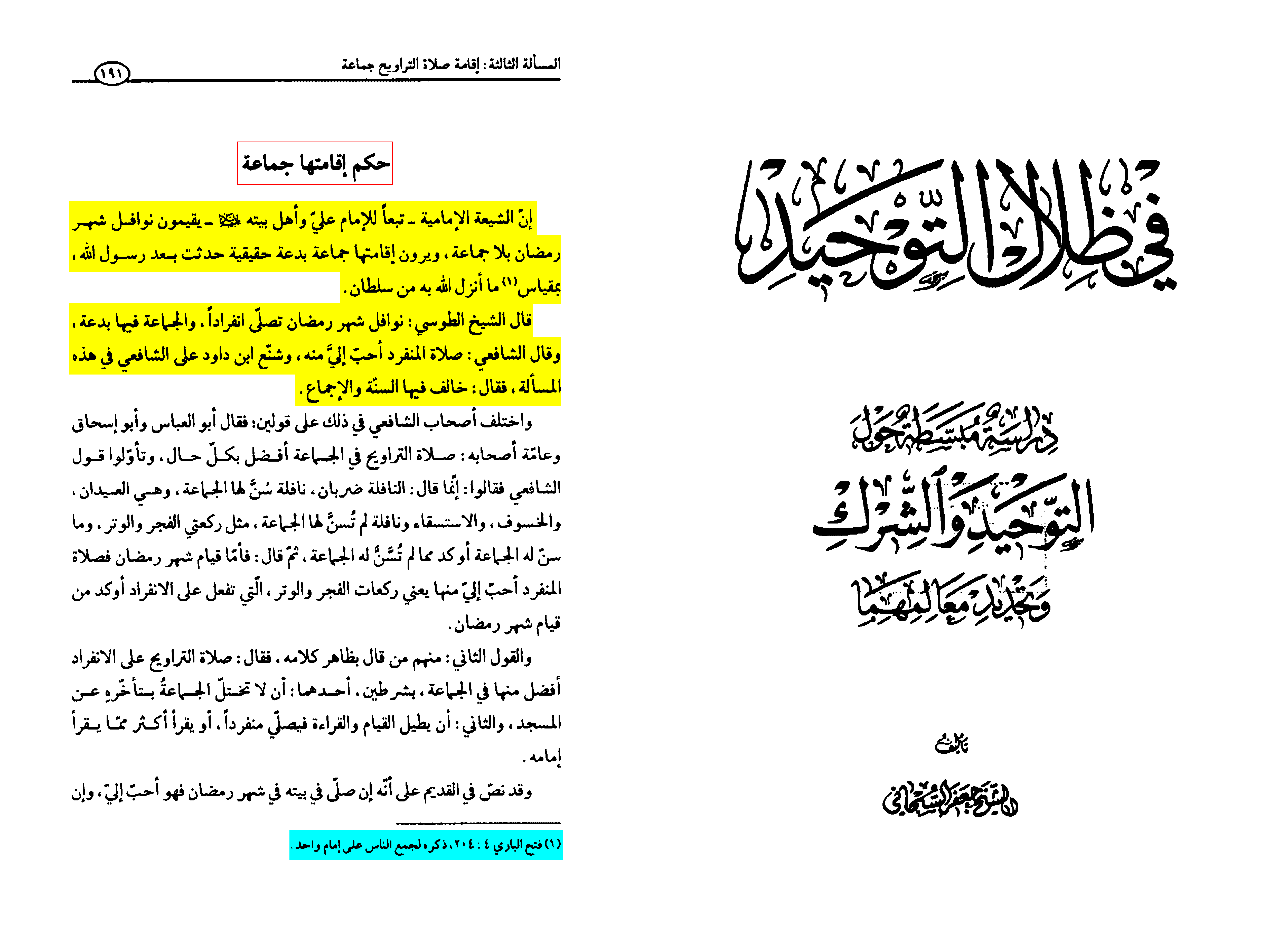 And among the matters thought to be exclusive to the Imāmiyyah is the prohibition of congregational prayer in the supererogatory prayers of Ramadān, and the dislike of doing so.