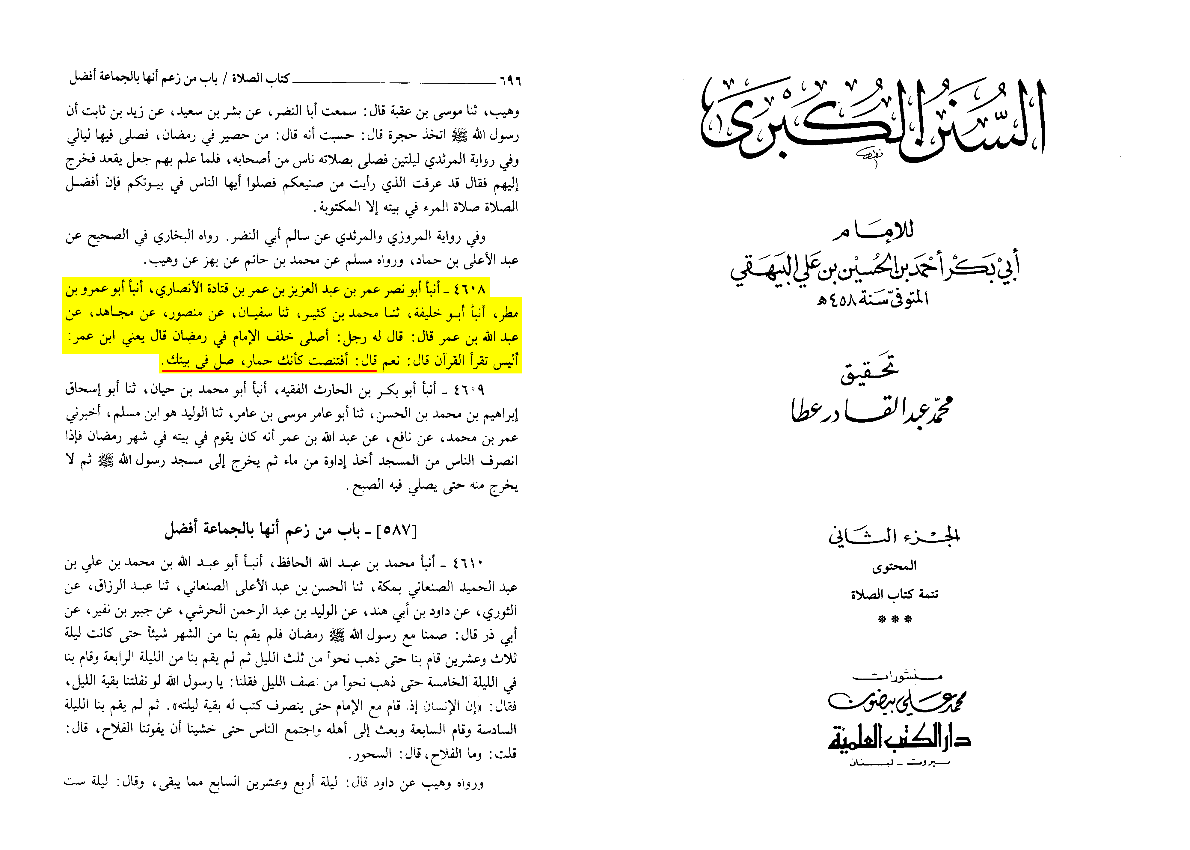 By Allah, they would disperse from me if I were to order the people not to gather in the Month of Ramadān except for the obligatory prayers and make it known to them that their gathering for the optional Prayers (nawāfil) is an innovation (i.e. tawarih). So some of the people in my army would call out to the ones who are fighting alongside me, ‘O people of Al-Islam! The Sunnah of Umar has been changed. He is preventing us from the optional Prayer in the Month of Ramadān, and I had feared that there would be a revolt in a section of my army.