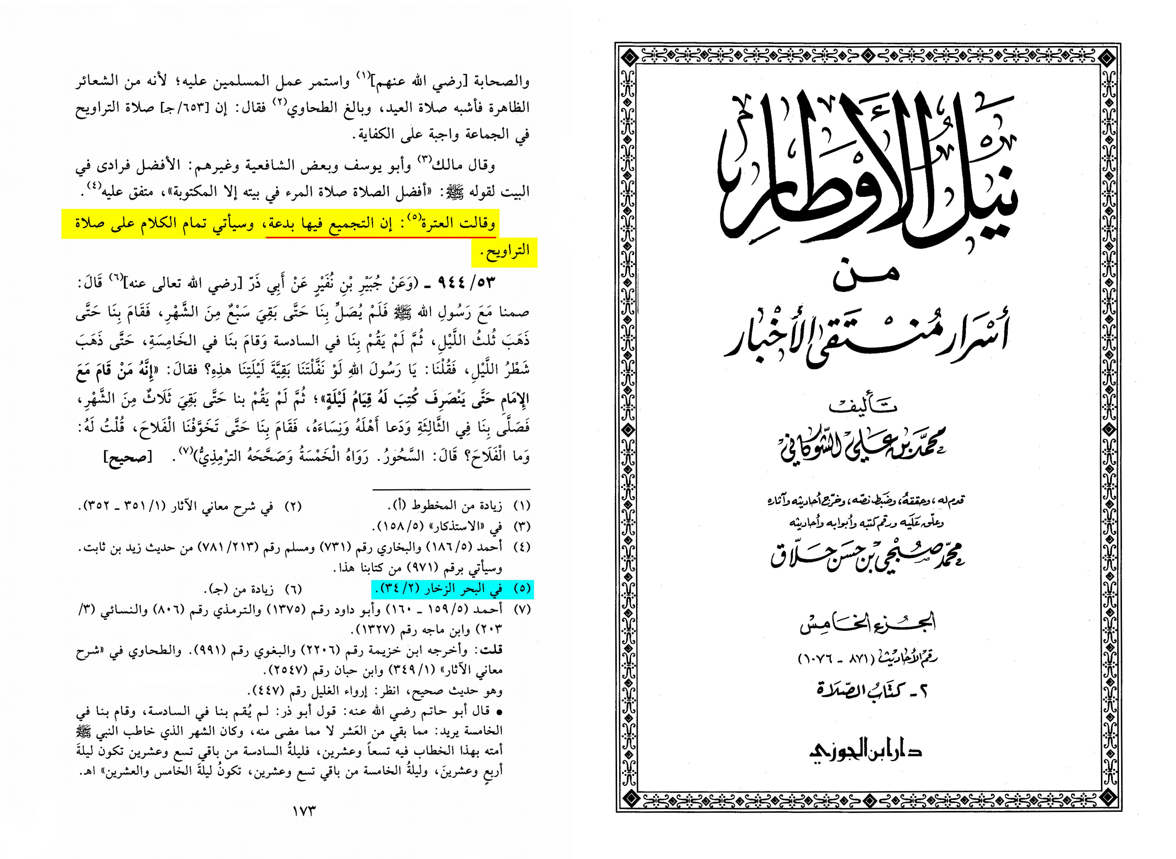 The strong opposition of the Ahl al-Bayt (AS) to the practice of Tarāwīh was even acknowledged by major Sunni scholars, such as the aforementioned al-Shawkānī who records in his Nayl al-Awtar Vol 3, pg. 173: